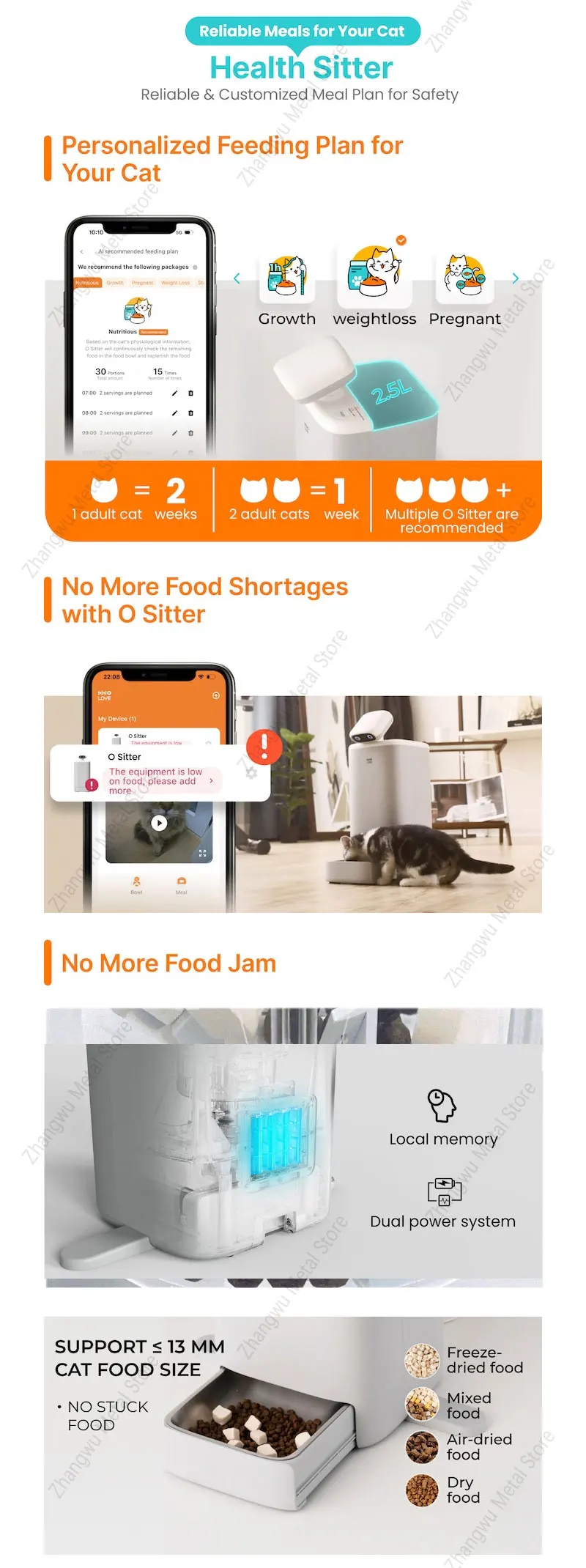 【Индивидуальное питание】 O Sitter создаст Индивидуальный график ежедневного кормления для вашего питомца на основе информации о питомце и выбранной Вами упаковки для кормления, обеспечивая удовлетворение потребностей вашего питомца в питании.