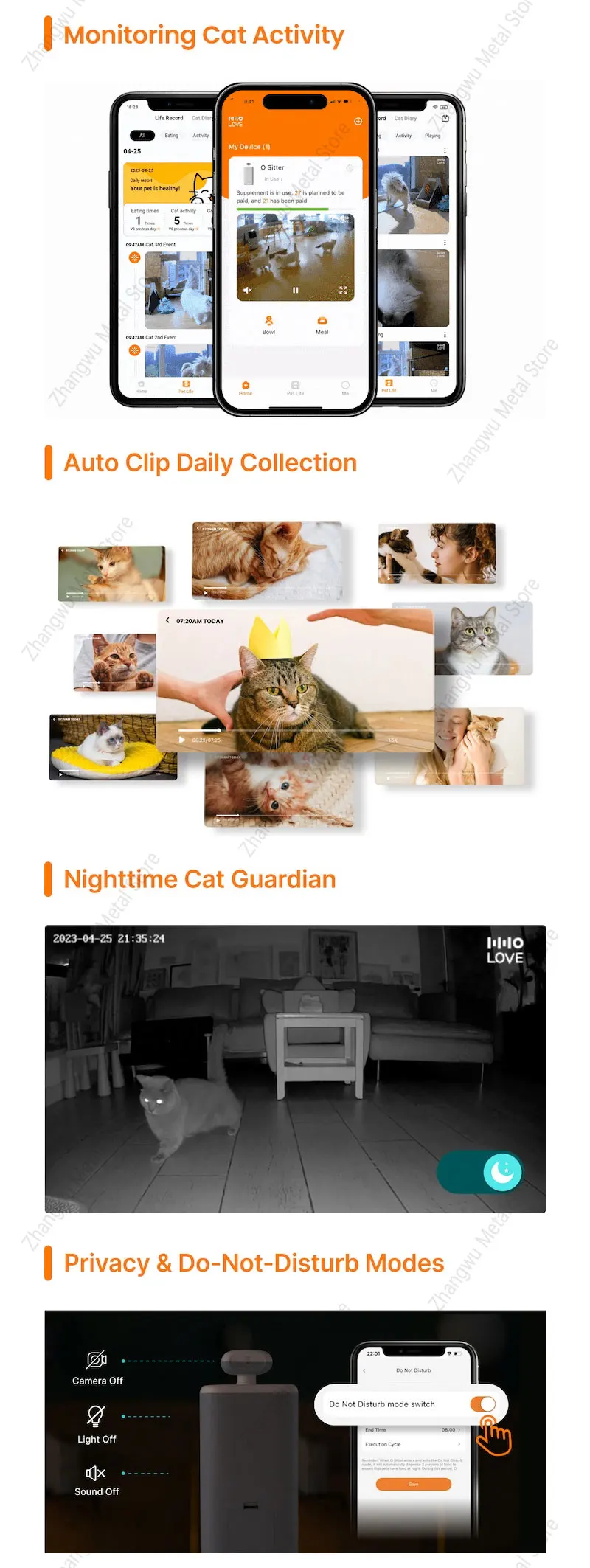 【Сопровождение вашей кошки в любое время и в любом среде】 O Sitter имеет изображение высокой четкости 300 Вт с разрешением до 2560x1440 пикселей, а также инфракрасное ночное видение, поэтому вы можете следить за своим питомцем даже после наступления темноты. Он также уведомляет вас, если ваша кошка не ела или появлялась в течение длительного времени, особенно во время болезни, беременности, потери веса или старения. Кроме того, вы также можете установить режим «Не беспокоить» или «Конфиденциальность» одним щелчком мыши, чтобы обеспечить безопасность вашего дома и конфиденциальности.