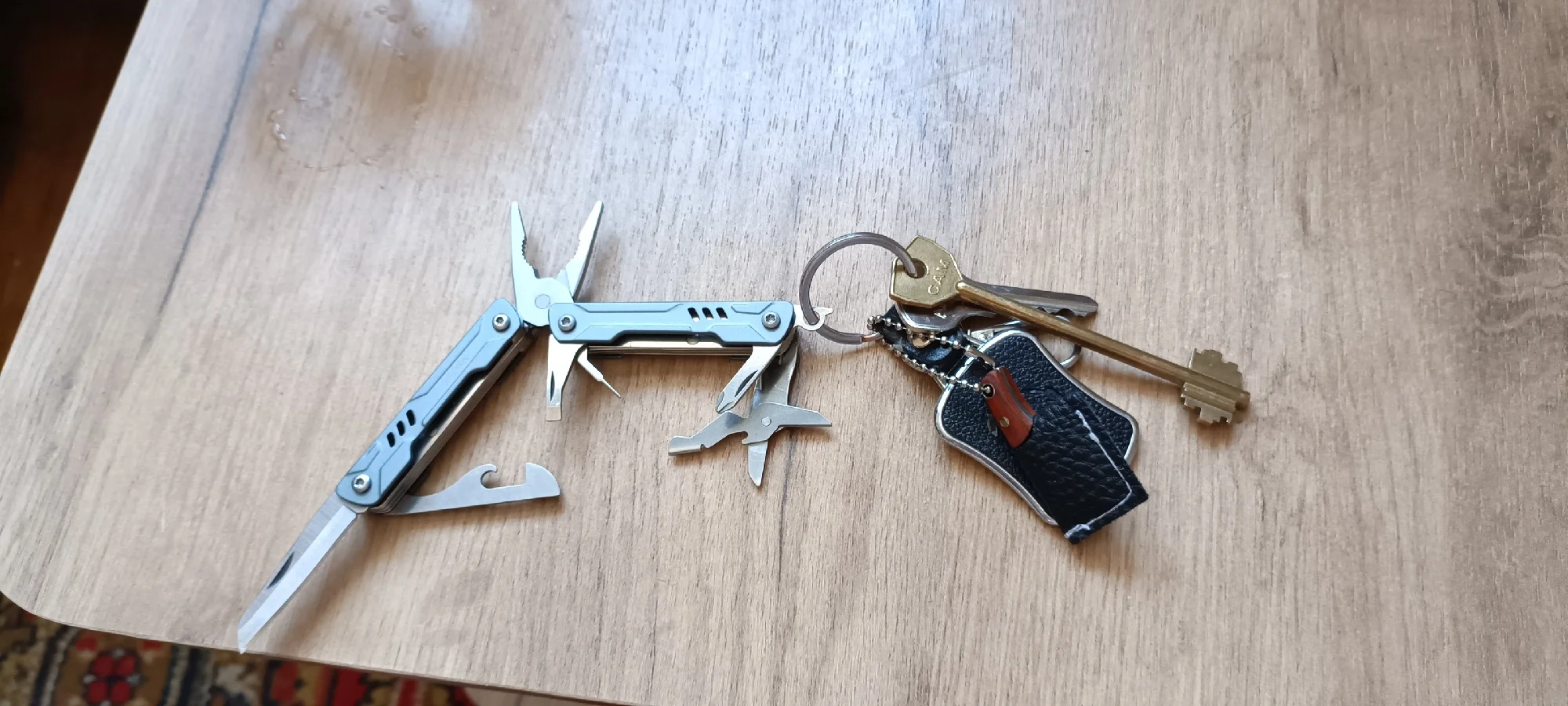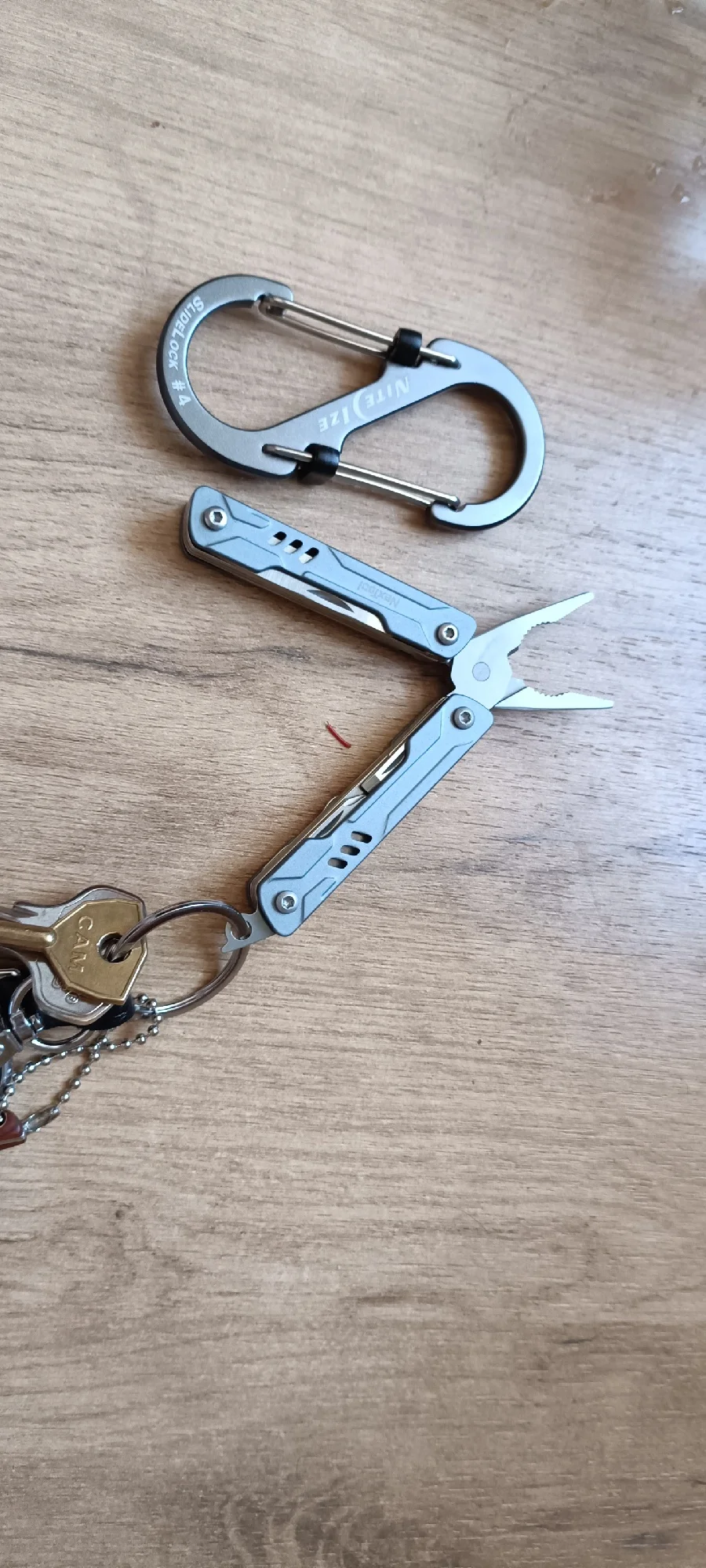 отличный мини мультитул,правда кусачки на плоскогубцах не очень хорошо работают.Продавец положил в комплект карабин