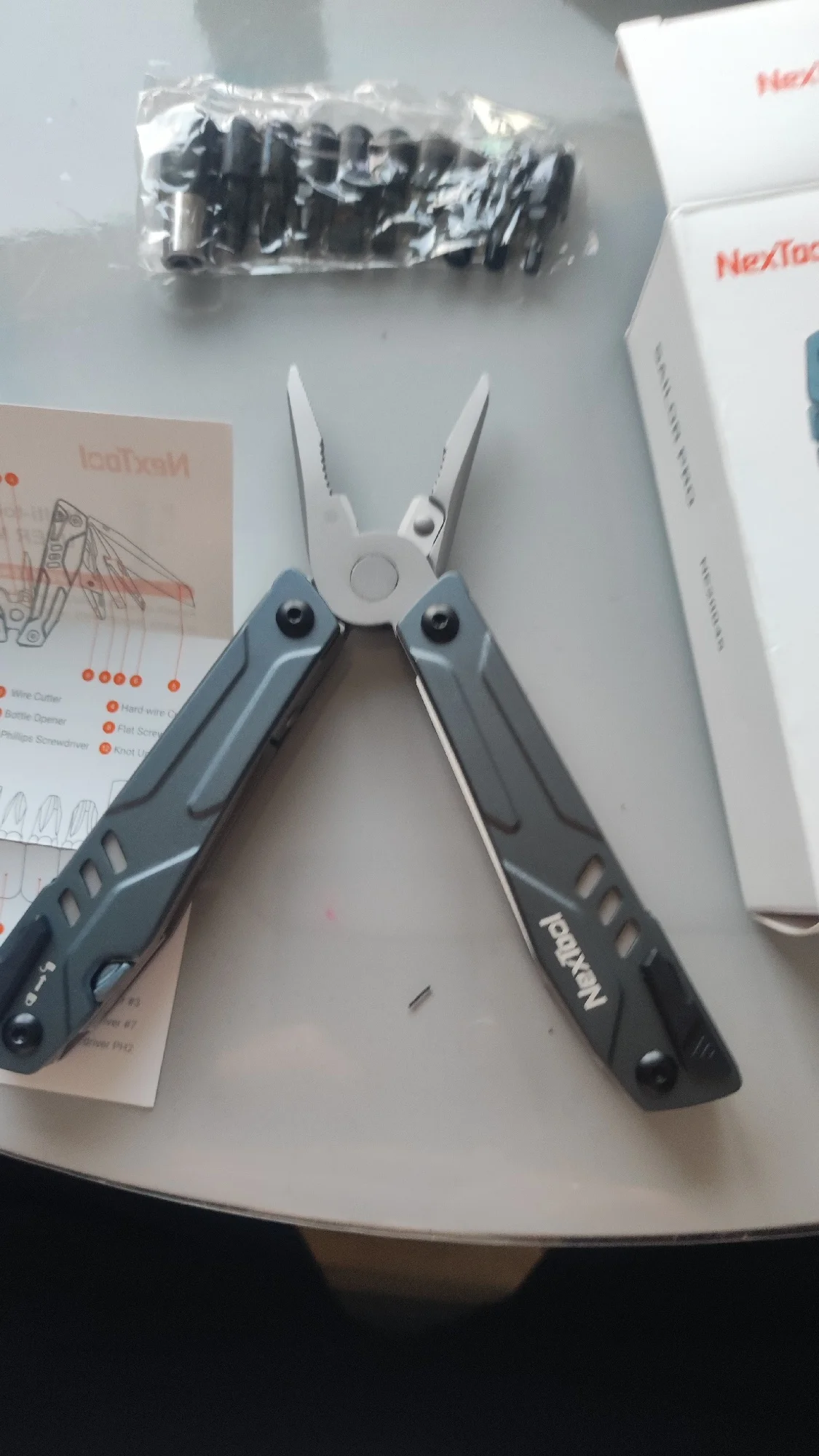 достаточно неплохой мультитул. сделан довольно неплохо, о прочности его говорить сложно, но для мелких работ точно сгодится. покупал сыну в подарок. доставка курьером до квартиры. подвожу итог: за эти деньги очень даже рекомендую!