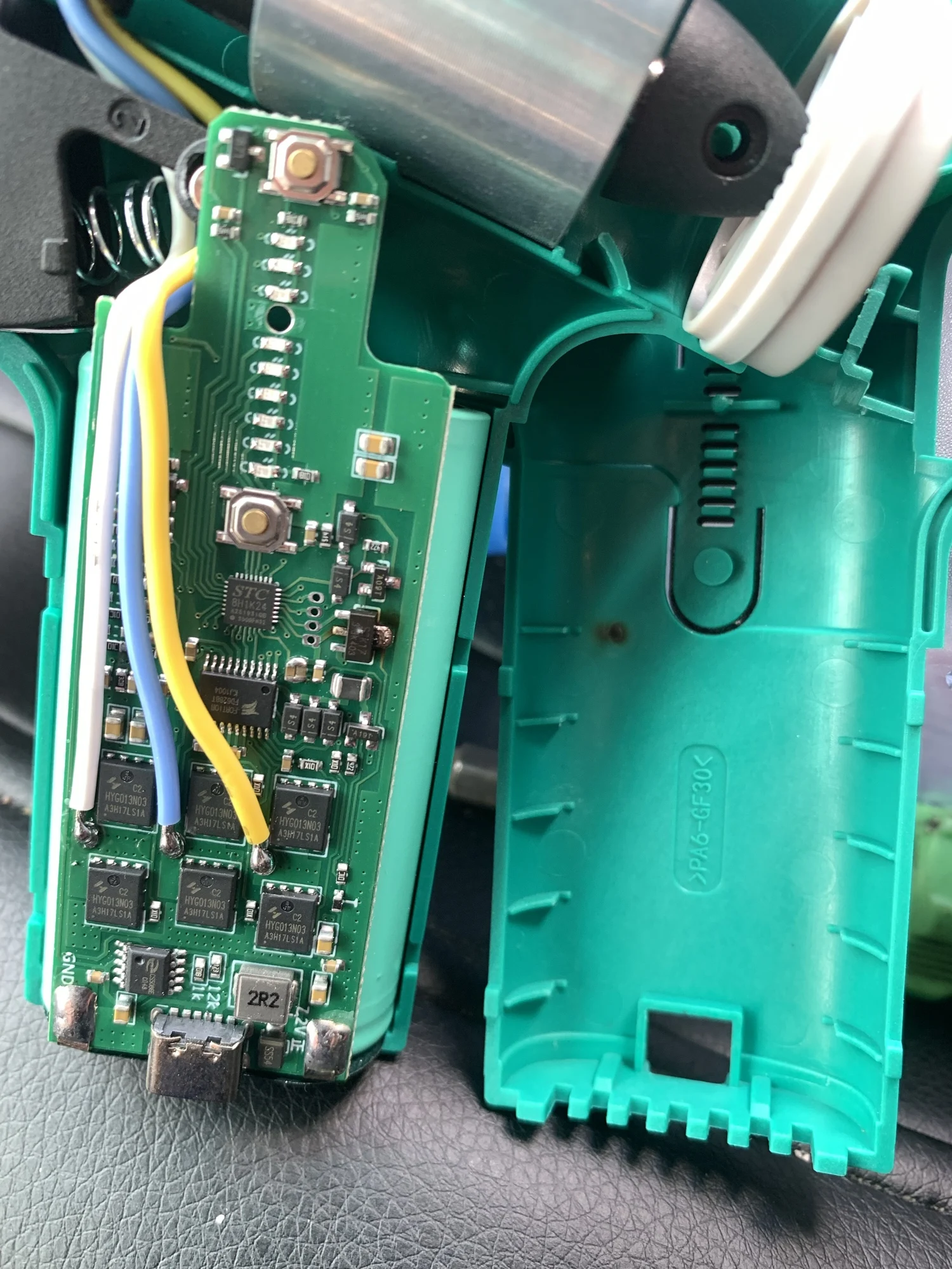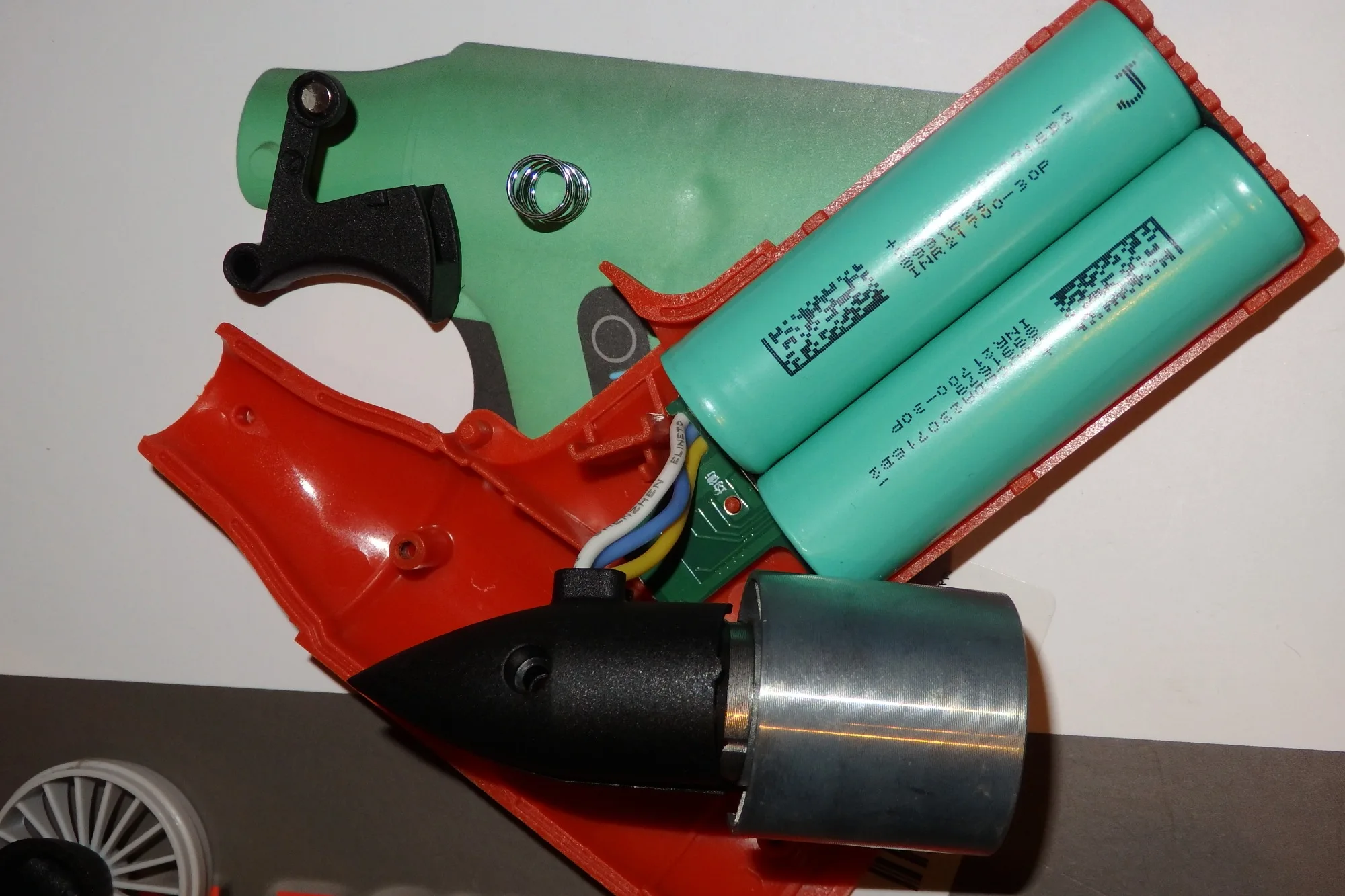 Дует отлично, оправдал все ожидания. Внутри две банки 18650, курок реализован через датчик холла с регулировкой оборотов от глубины нажатия.