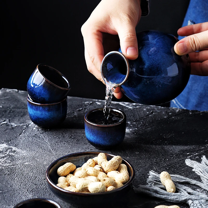 KINGLANG Бытовая японская Саке 5 шт./компл. синяя мини Керамическая фляжка декоративная мебель цветочные аксессуары фляжка
