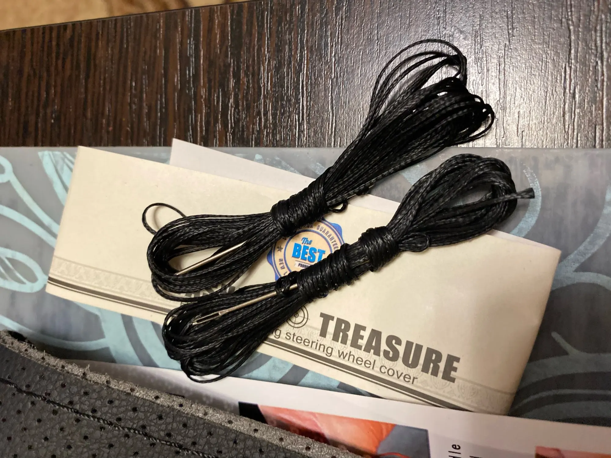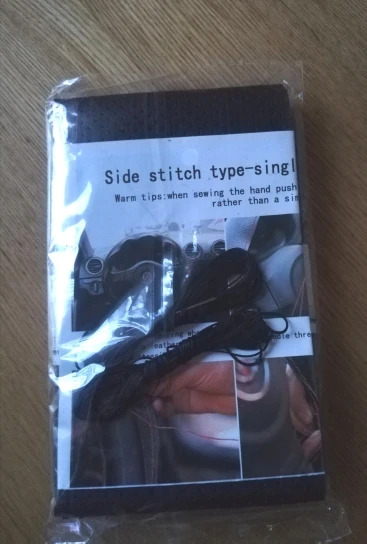 Прочная кожа. Следуя инструкциям было легко наносить и пришивать на колесе. Нить толстая и покрыта воском, как вещество, поэтому она очень хорошо удерживает крышку. Конечный результат выглядит аккуратно :)