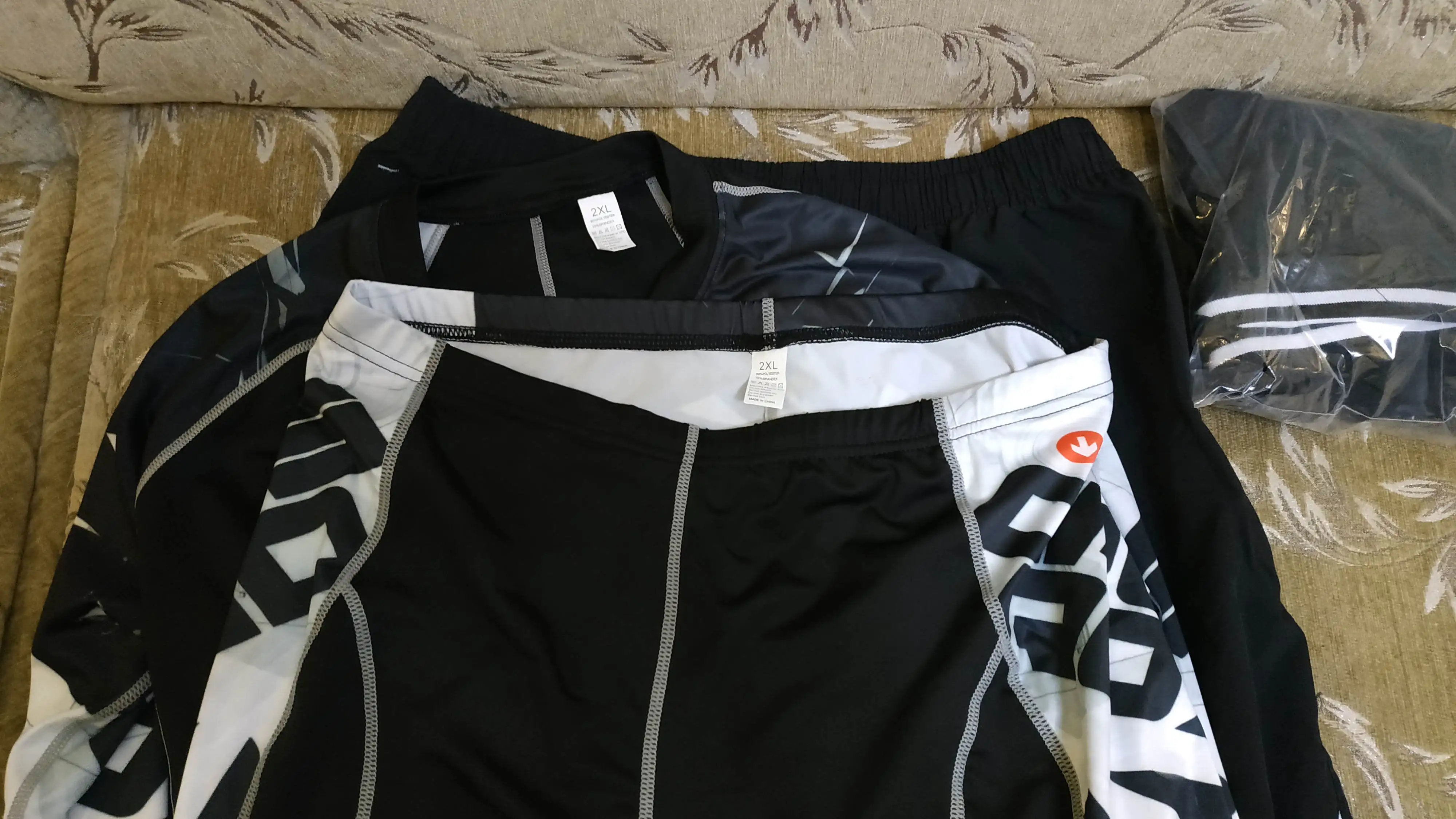 Заказала мужу 15.11 за 1405,31, 3.12 получили в постамате. Очень приличный костюм тройка. На параметры ОГ 118, ОБ 110 Рост 173 сел хорошо. При присяде не просвечивает, все швы ровные, без торчащие ниток. Ткань быстросохнущая. За такие деньги костюм просто бомба, без постороннего запаха, посмотрим как поведёт себя после интенсивной тренировки. С продавцом не общались не было необходимости. После испытания дополню отзыв :)
