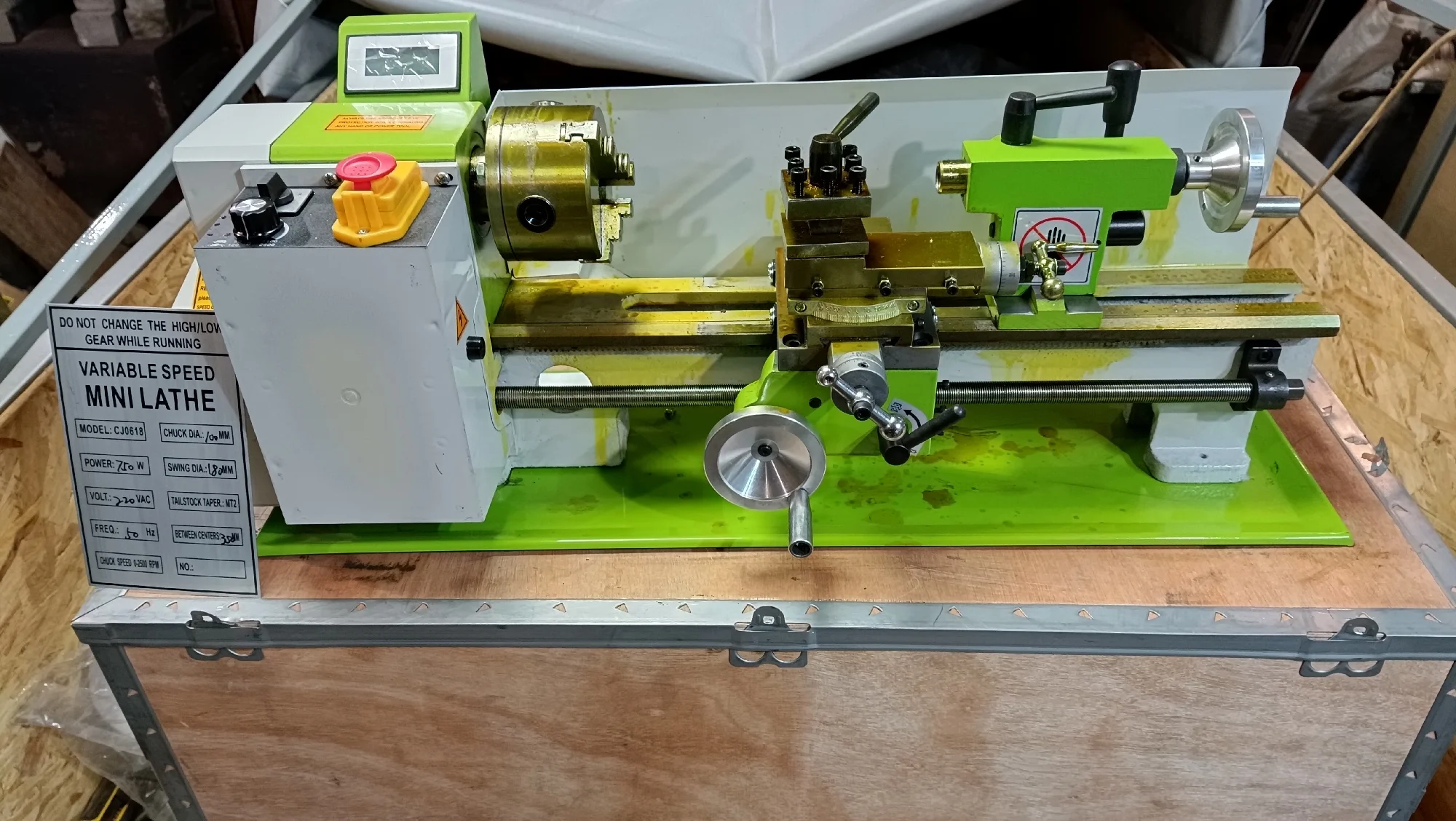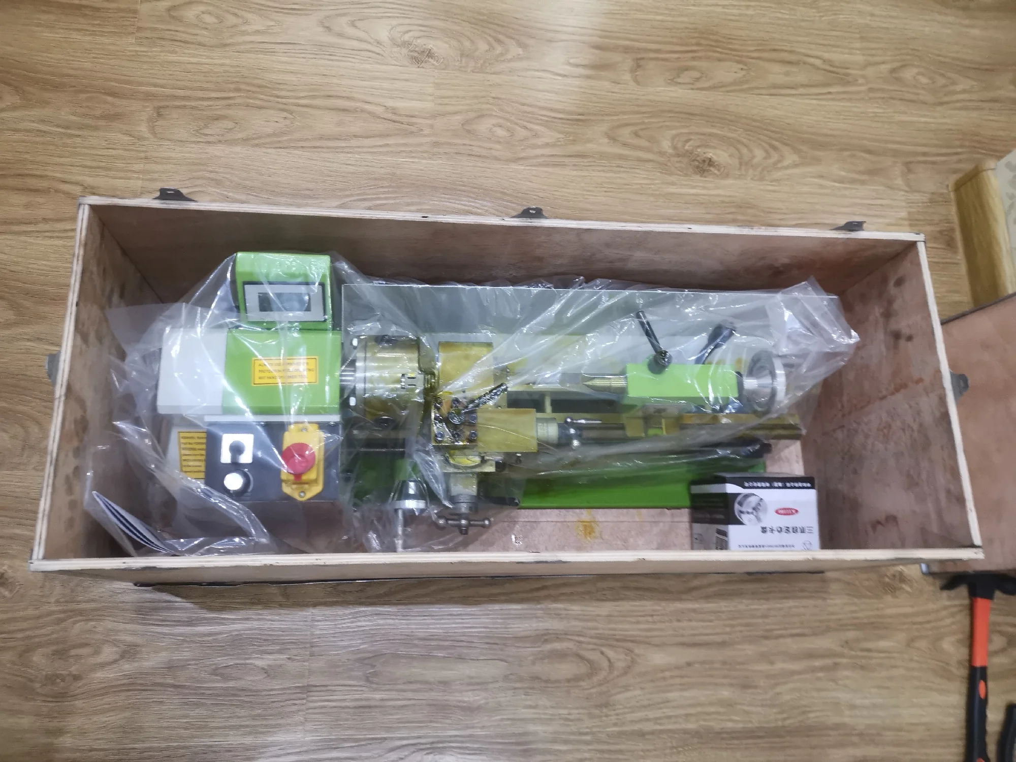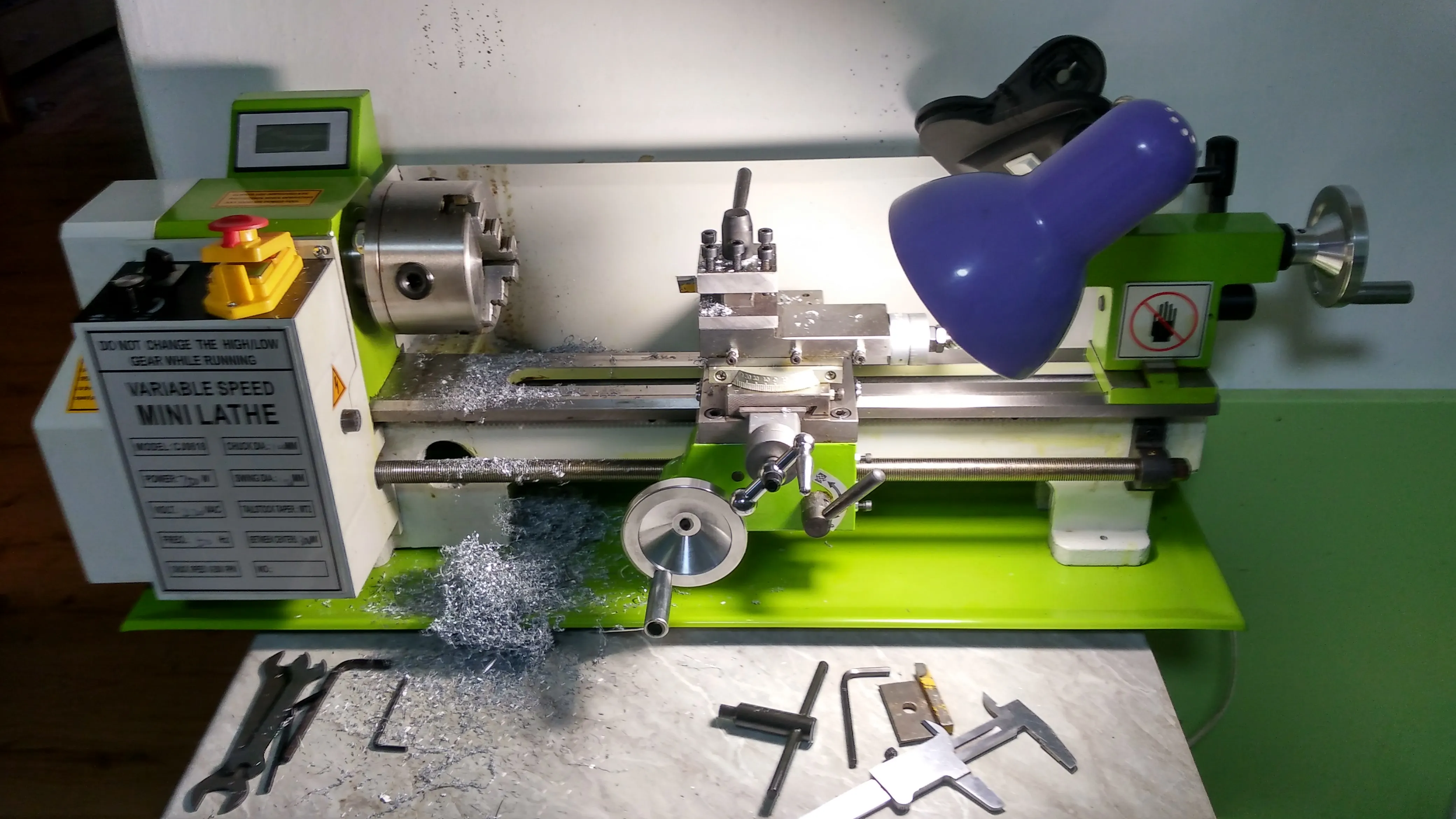 Станок доставили за месяц с копейками (хотя у продавца до самого закрытия заказа висел статус "ожидает передачи в транспортную компанию"). Фанерный ящик был практически не коцаный, НО-станок внутри закреплён не был и болтался как известная субстанция в проруби, из-за чего пострадал юзер мануал (к счастью не критично) и лист металла-типа поддон. Консервационной смазки не пожалели, отмывал бензином и это заняло немало времени. Комплектация небогатая-обратные кулачки для патрона, ключи для регулировок и обслуживания, резиновые ножки и...всё(( О самом станке-кожухи мотора и электроники очень хлипкие, не консервная жесть конечно, но металл достаточно тонкий и соединения так себе. Кожух гитары из толстого пластика, который выглядит и ощущается надёжнее металлических. Сама гитара...как бы это сказать...звучит как настоящая гитара с дисторшном. Люфты на осях шестерён чудовищные, в процессе работы (особенно при автоподаче слева направо) шум стоит такой, что даже бензопила кажется не таким уж громким инструментом. На шкале регулировки скорости вращения указаны диапазоны оборотов 50-1500 и 100-2500, но передача у станка только одна, и порог от 134 об/мин. Ну да ладно. В каретке люфты подвыбрал (кроме штурвала перемещения всей каретки, там люфт градусов в 15), но жёсткости у неё всё равно маловато. Резюмирую: для небольших и не очень точных работ в условиях гаража вполне пойдёт, есть ощущение, что я изрядно переплатил за это изделие.