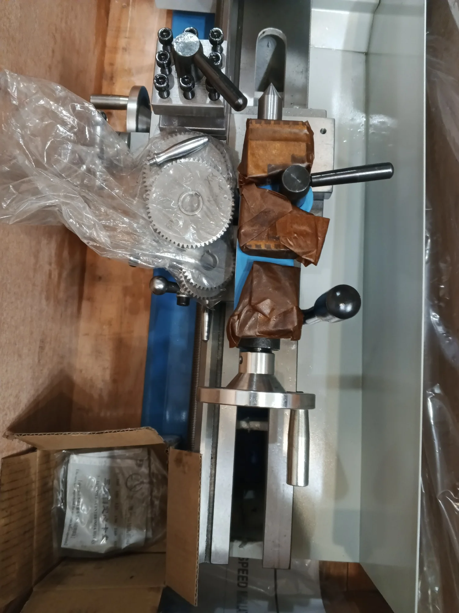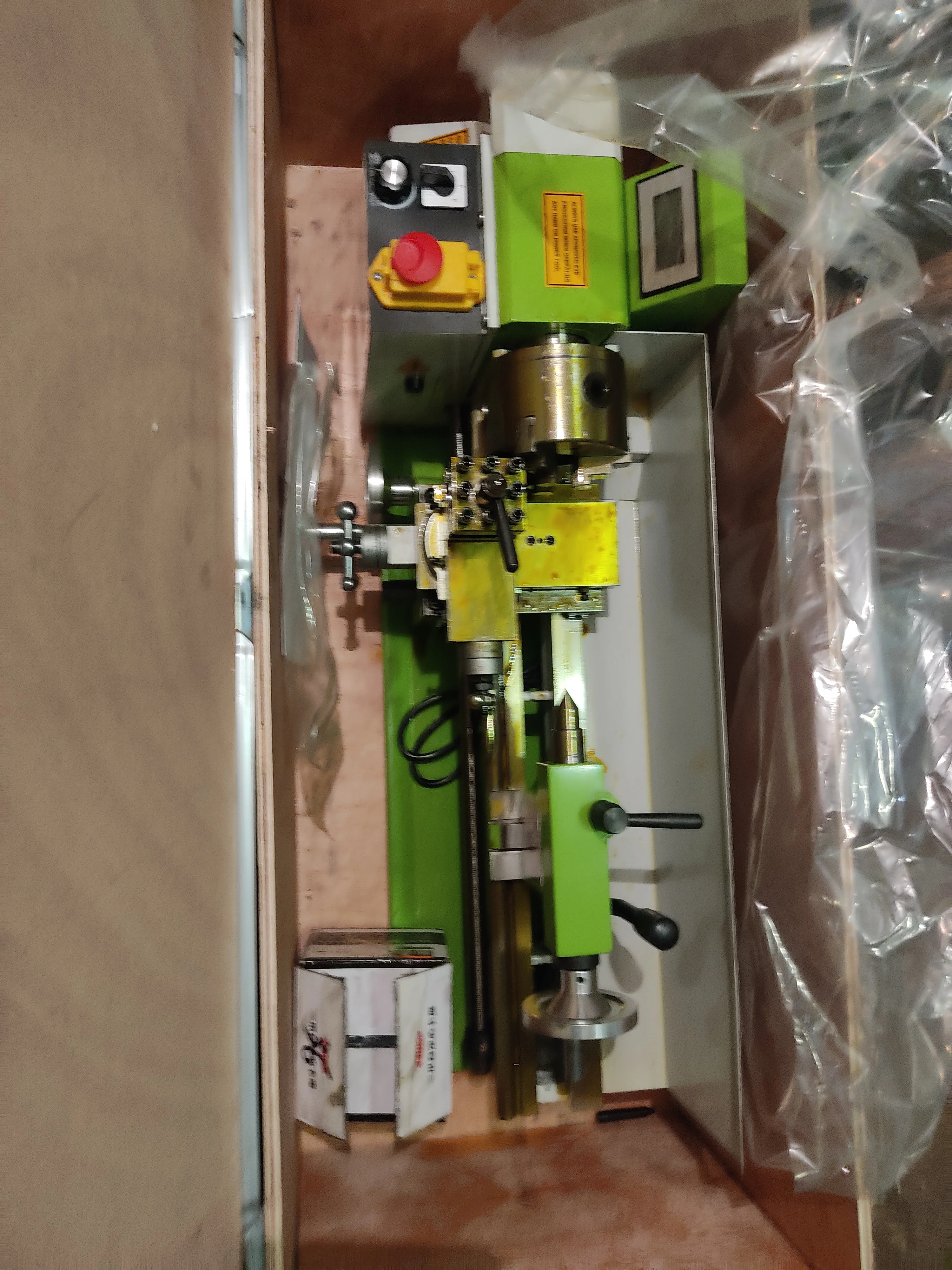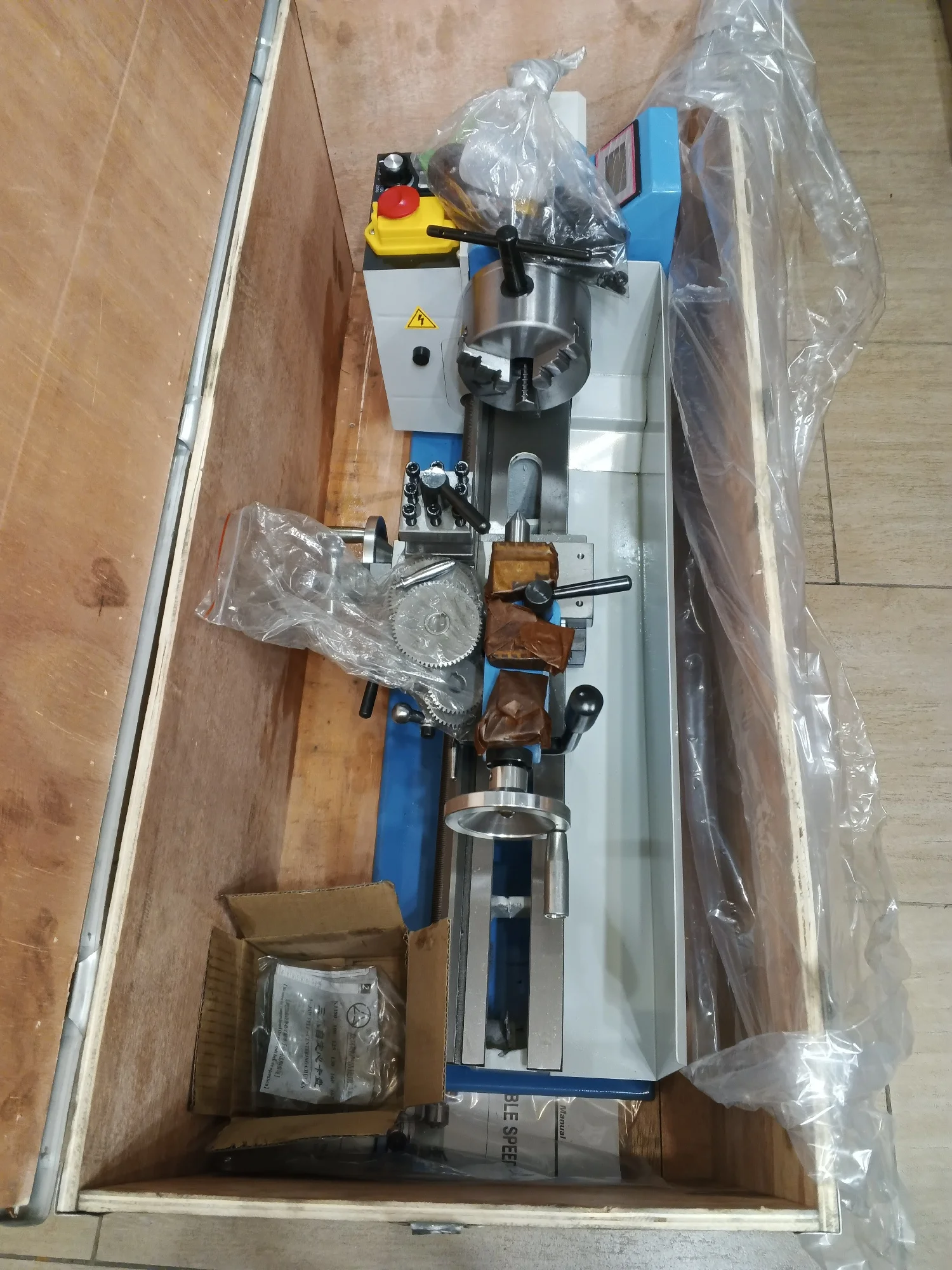 Наконец получил свой токарник. Ехал очень долго, но и купил его с приличной скидкой, с доставкой вышло 32000 росс. руб. Упаковка отличная, все цело, консервы полно. Все супер. По станку илюзий не питаю, люфты есть, но за эти деньги это поправимо.