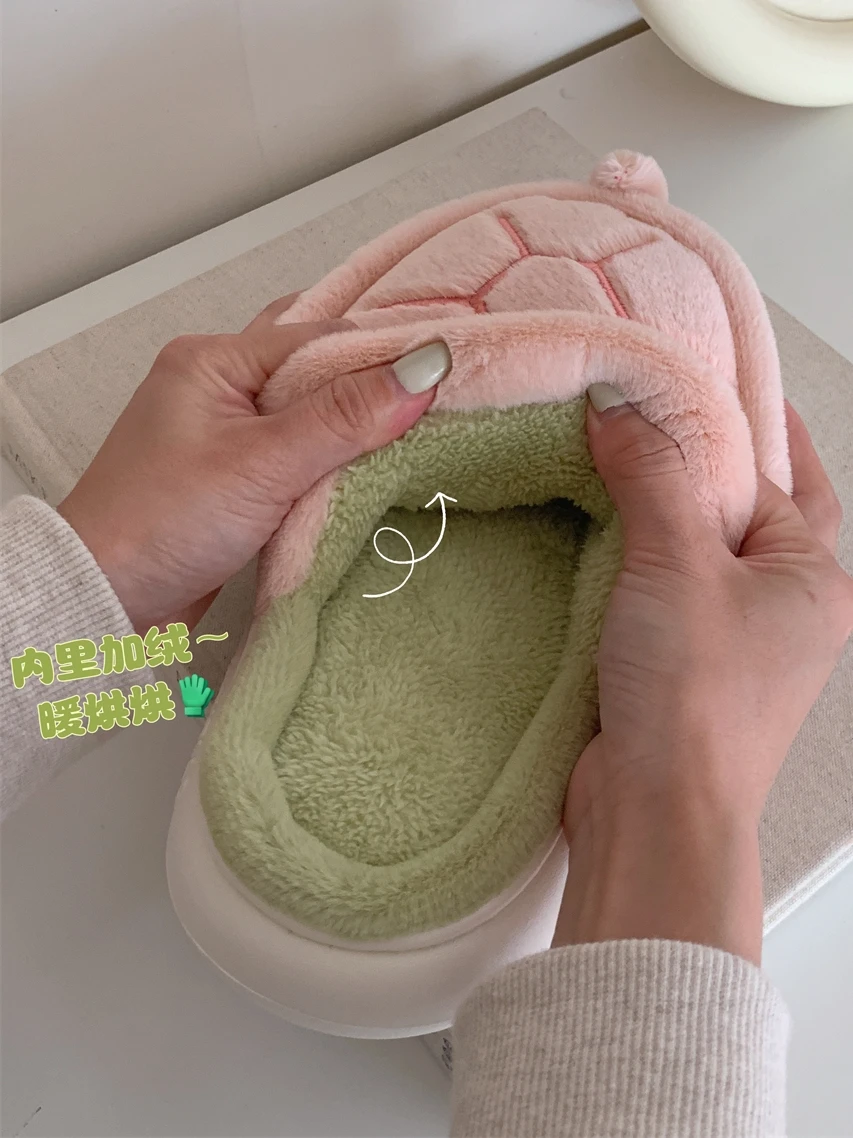 Симпатичные теплые плюшевые домашние тапочки с черепашками, мужская и женская обувь для родителей, Детские Зимние удобные детские тапочки для мальчиков и девочек