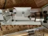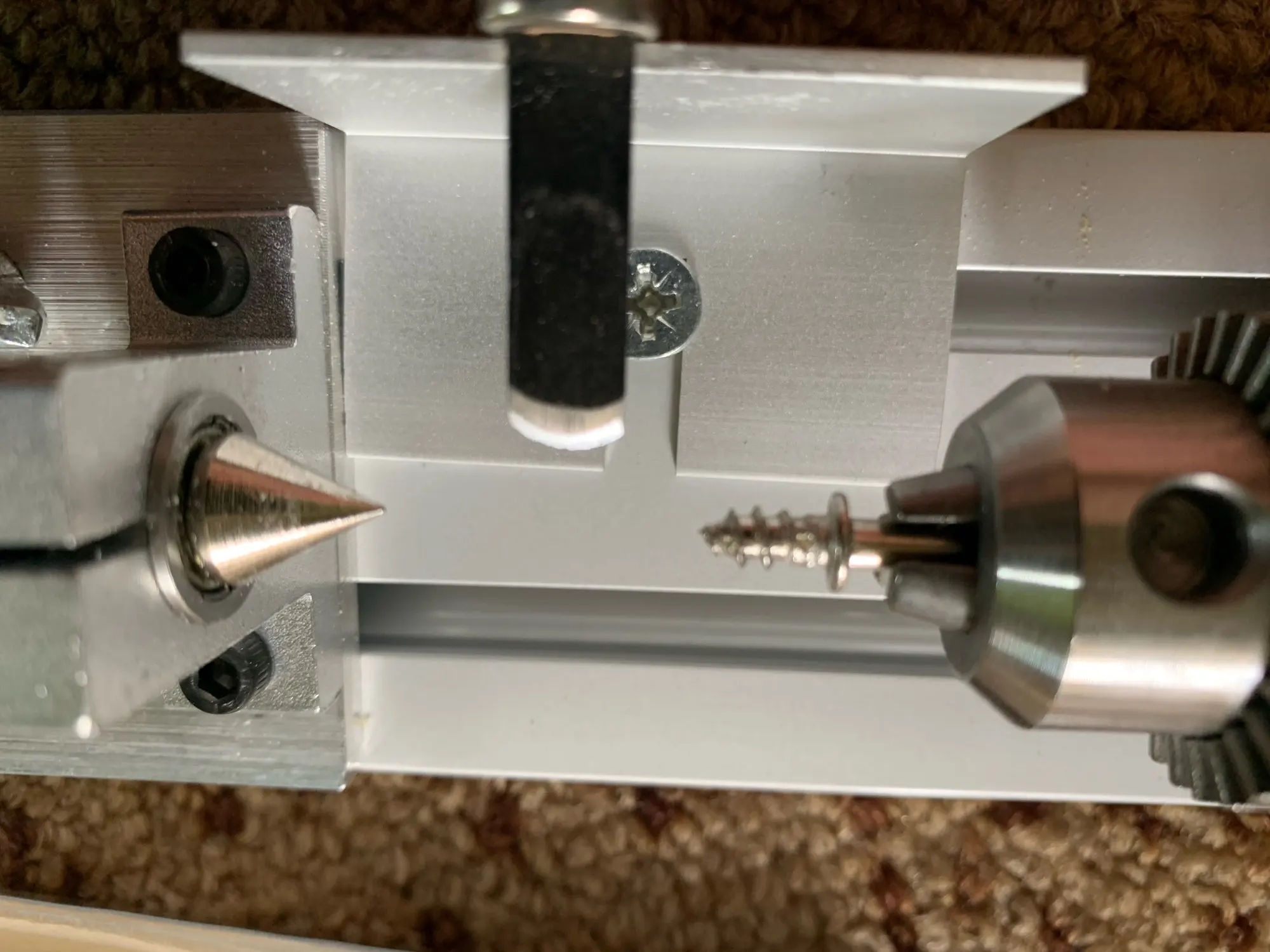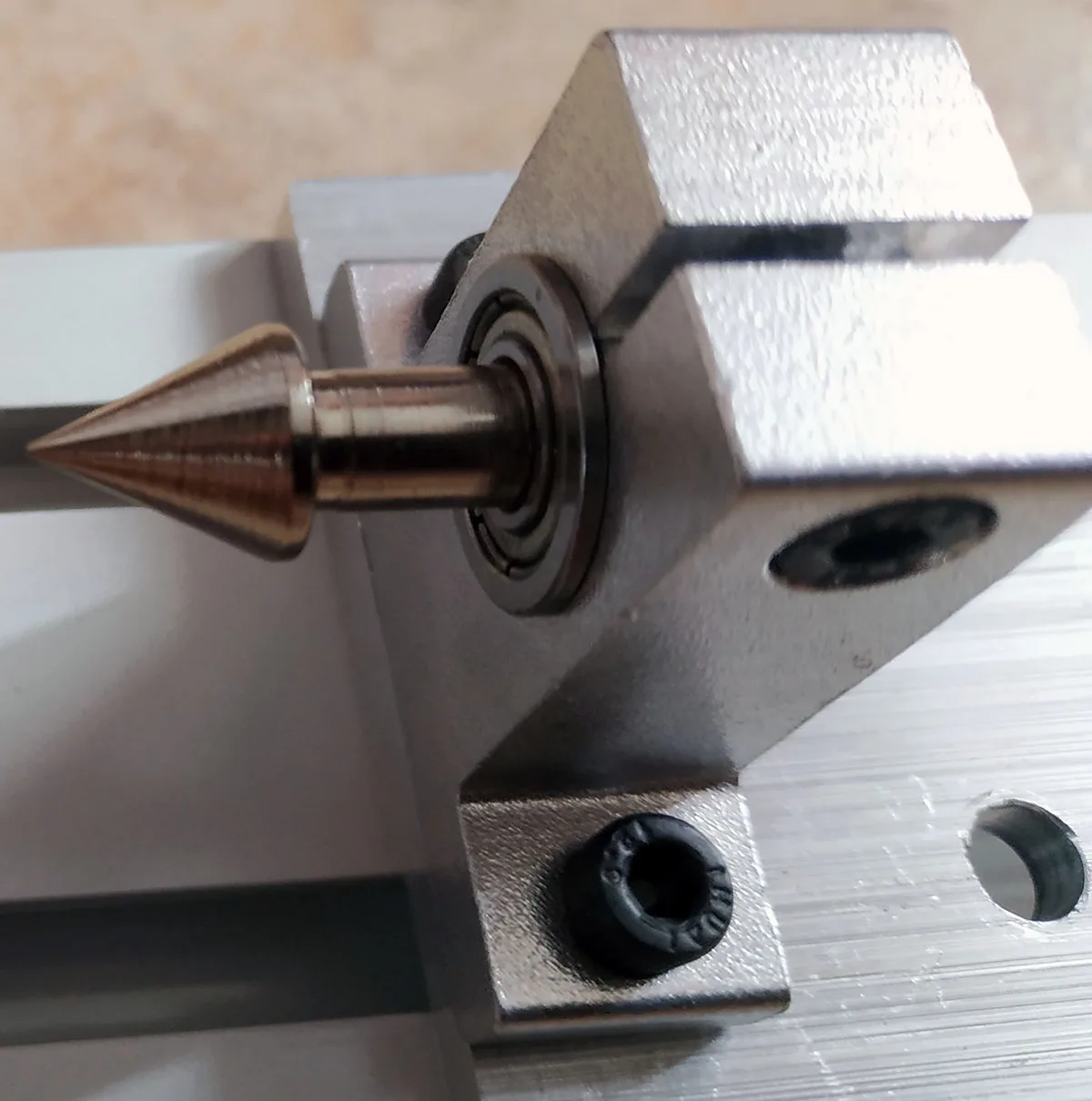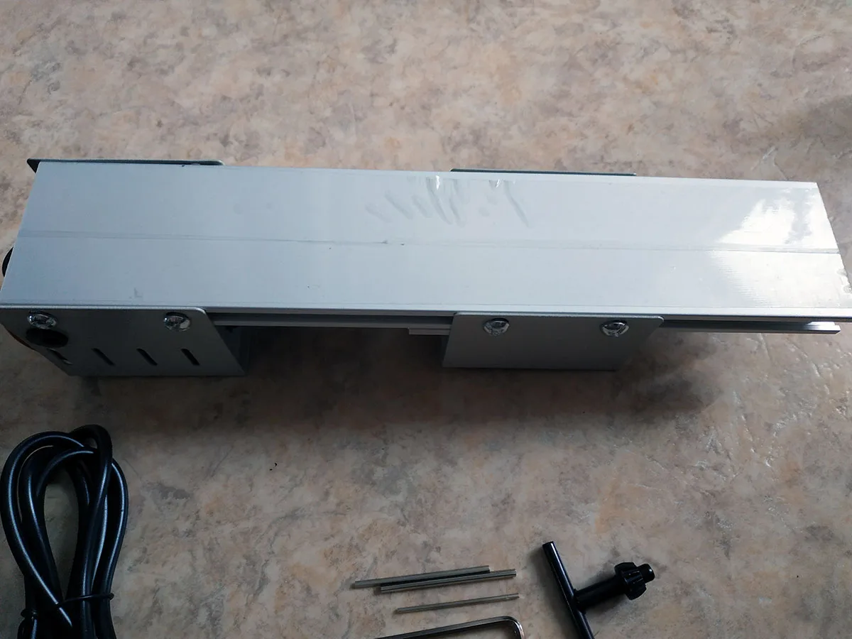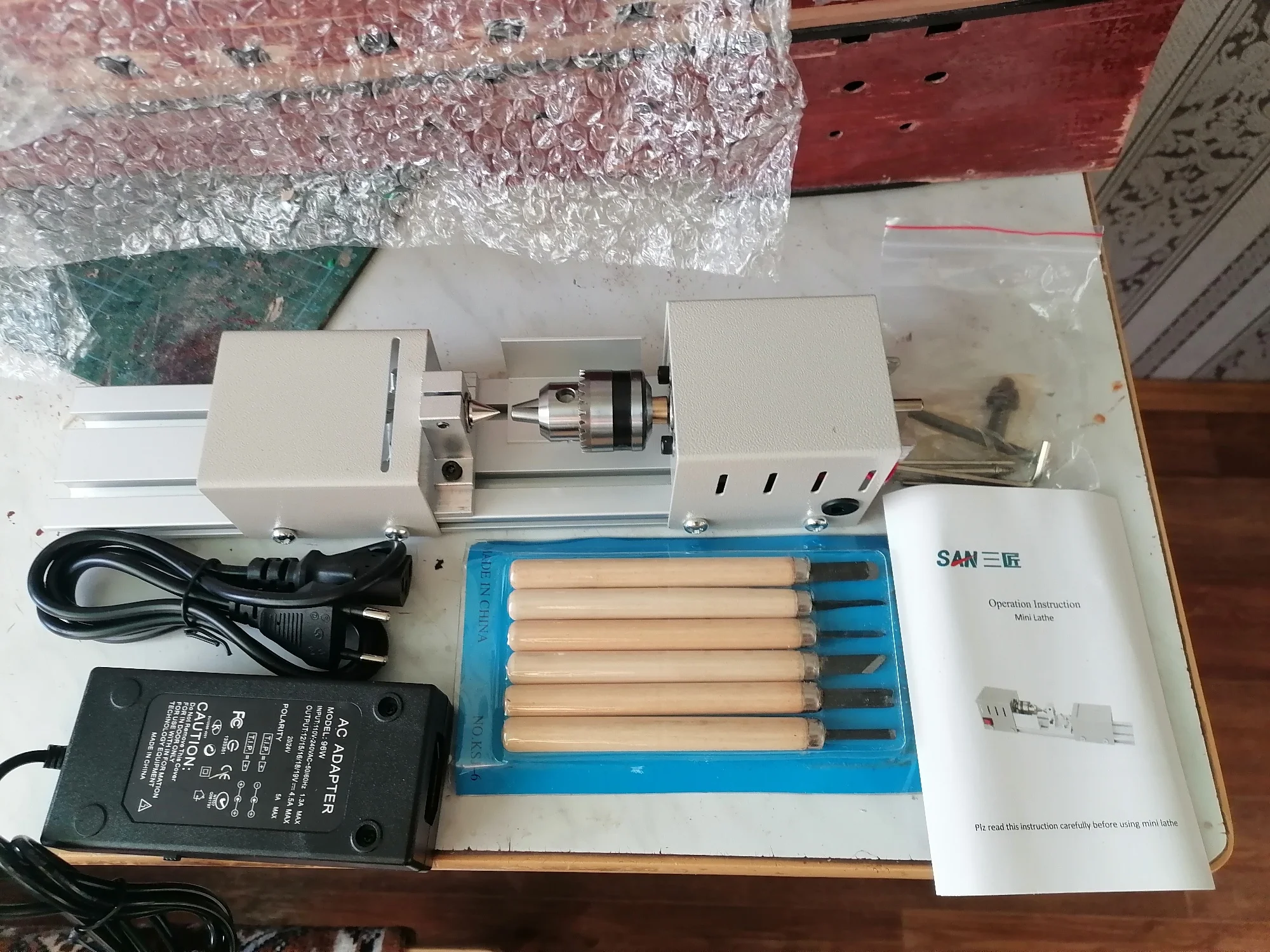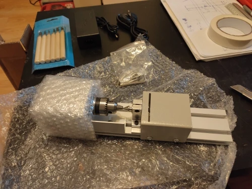 Станок получил- спасибо. Доставка из России вообще не понятно кем и не каждый сайт может отследить продвижение, но принёс домой курьер - не плохо. Сам станок является наверное лучшим вариантом, чем колхозить из дрели. Расстояние от оси до станины 28 мм, максимальное от патрона до упора задней бабки около 17 см, ширина упора для Резцов 52 мм, максимальное приближение упора к оси вращения 25 мм. Металл Резцов без фанатизма рукой не гнётся, но как что-то режущее - не алё, заточку не держит. Упор, вставляемый в патрон, винтовой, при обработке мягкого материала проворачивается в детали. Задний упор-конус просто вставлен в подшипник, легко вынимается, соосность нужно ловить перемещением бабки. В общем есть над чем поработать для улучшения станка, в целом не плохо. Моторчик крутит уверенно, скорости вращения регулируются на блоке питания - 7 режимов.