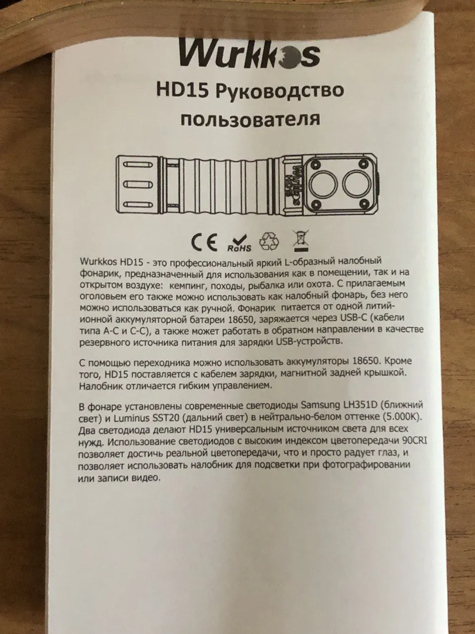 купил его ещё зимой, отзыв пишу спустя пол года. итого фонарь wurkkos hd15r отличный! имеет 5 режимов освещённости мун лайт, слабый, средний, высокий и турбо режим. переключение светодиодов с красного на белый простое 1ый щелчок быстрый, 2ой удержываешь. управление очень простое. имею несколько фонарей sofirn hs20, sp40a, sp40, h25l, h25s. брал так сказать к sp40 т.к. он г-образный фонарь с магнитом. sp40 меня не устраивал потому что свет на нем средней дальности или просто дальний, а тут чисто 2 ближних заливных и 2 разных света красный и белый что я очень давно хотел. hd15r или просто hd15 wurkkos по свету намного лучше чем sp40!