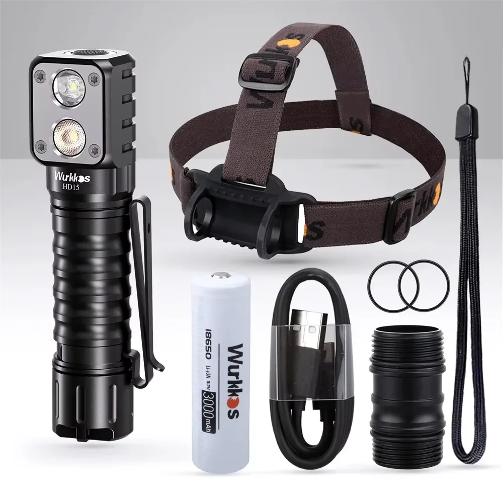 Wurkkos HD15 это профессиональный фонарик с яркой угловой головкой и инструментальный светильник, предназначенный для различных видов активного отдыха в помещении и на открытом воздухе, таких как кемпинг, походы, рыбалка или охота.Благодаря поставляемому оголовью его также можно использовать в качестве налобного фонаря, HD15 сочетается с подходящей короткой трубкой.Он питается от одной литий-ионной аккумуляторной батареи 18650, перезаряжается через USB-C (кабели типа A-C и C-C), а также может работать в обратном направлении в качестве аккумулятора для зарядки внешних USB-устройств.