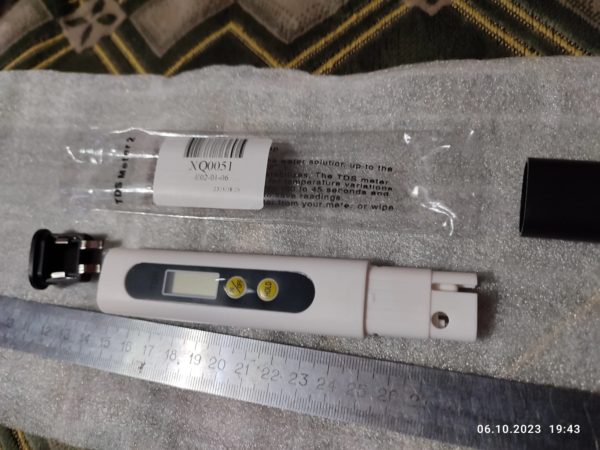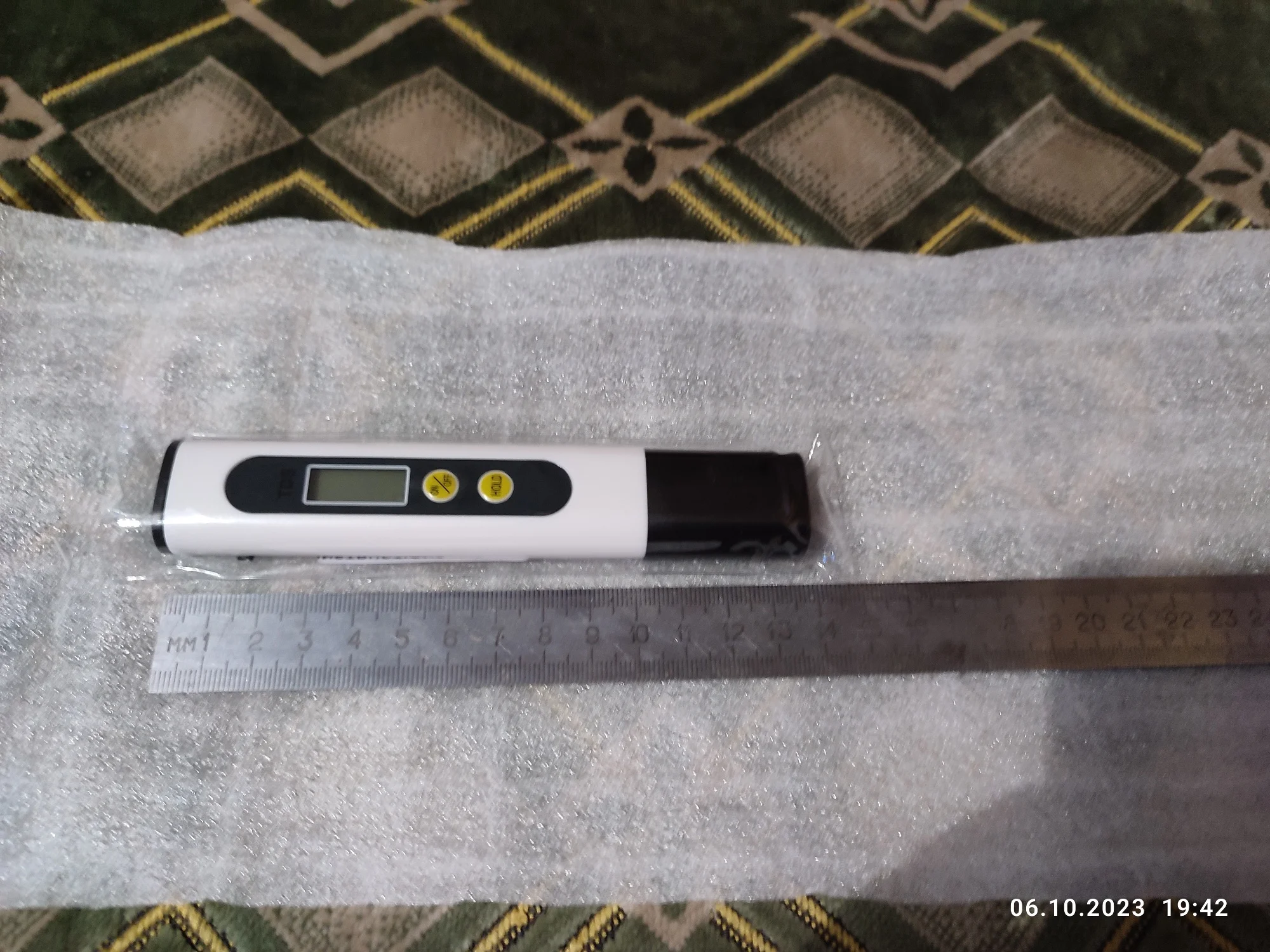 Покупал данный товар для проверки качества воды в квартире, так как пользуемся фильтром-кувшином которого хватает на месяц от замены до замены картриджа. Польстился стоимости и отзывам на товар. Вопросов к продавцу или товару никаких нет, но надо было тщательнее изучить назначение этого девайса. Это не универсальное средство, которое покажет содержание разных солей в воде, заменить оно может, разве что тестовые полоски на жёсткость воды. На самом деле прибор всего лишь измеряет электрическое сопротивление воды в зависимости от количества содержащихся примесей, но каких именно, одному только производителю известно (посмотрите видео на Ютубе). Прибор не панацея, но раз в месяц я им пользуюсь для галочки. Вода из нашего водопровода средней жёсткости по российскими стандартам, при замере у меня показатели менялись от 130 до 350 в зависимости от замены картриджа в кувшине-фильтре (чем ближе к 0, тем вода более дистиллированная). Покупал этот прибор больше для расширения кругозора, пользуюсь иногда как игрушкой, так как цифры на дисплее ничего нового не скажут, о замене фильтра я и так понимаю по накипи в чайнике. Планирую ставить проточный фильтр, поэтому и брал этот девайса (опять же для изменения жёсткости воды после установки, и всё). Работает прибор от батареек, стандарт которых есть в инструкции. Данный стандарт забивайте в интернете, аналоговые таблицы покажут, какие батарейки продаются в наших магазинах (у нас принято использовать другие стандарты). В целом, прибор имеет право на существование, сделан из добротных материалов, поэтому о покупке не жалею.