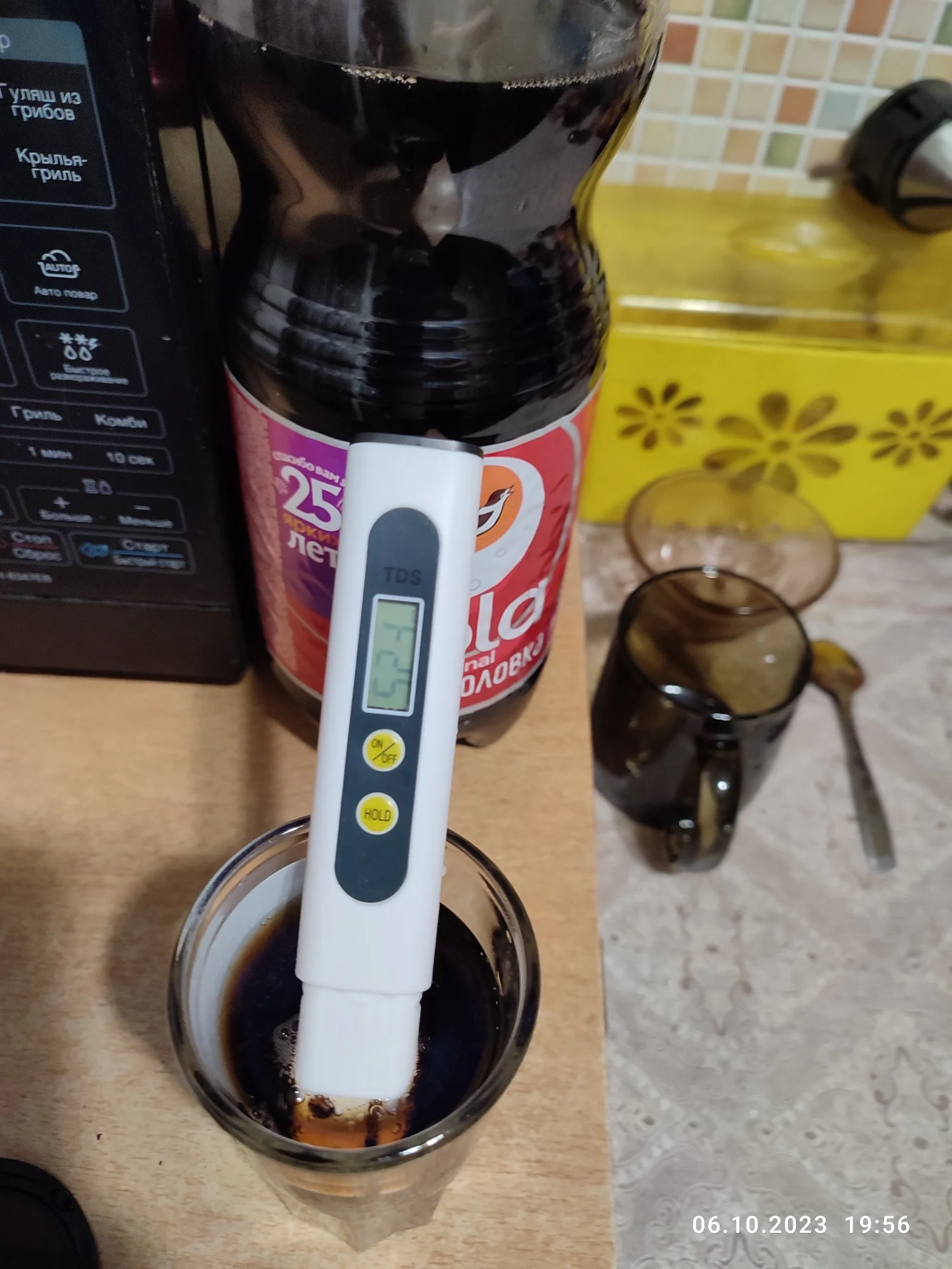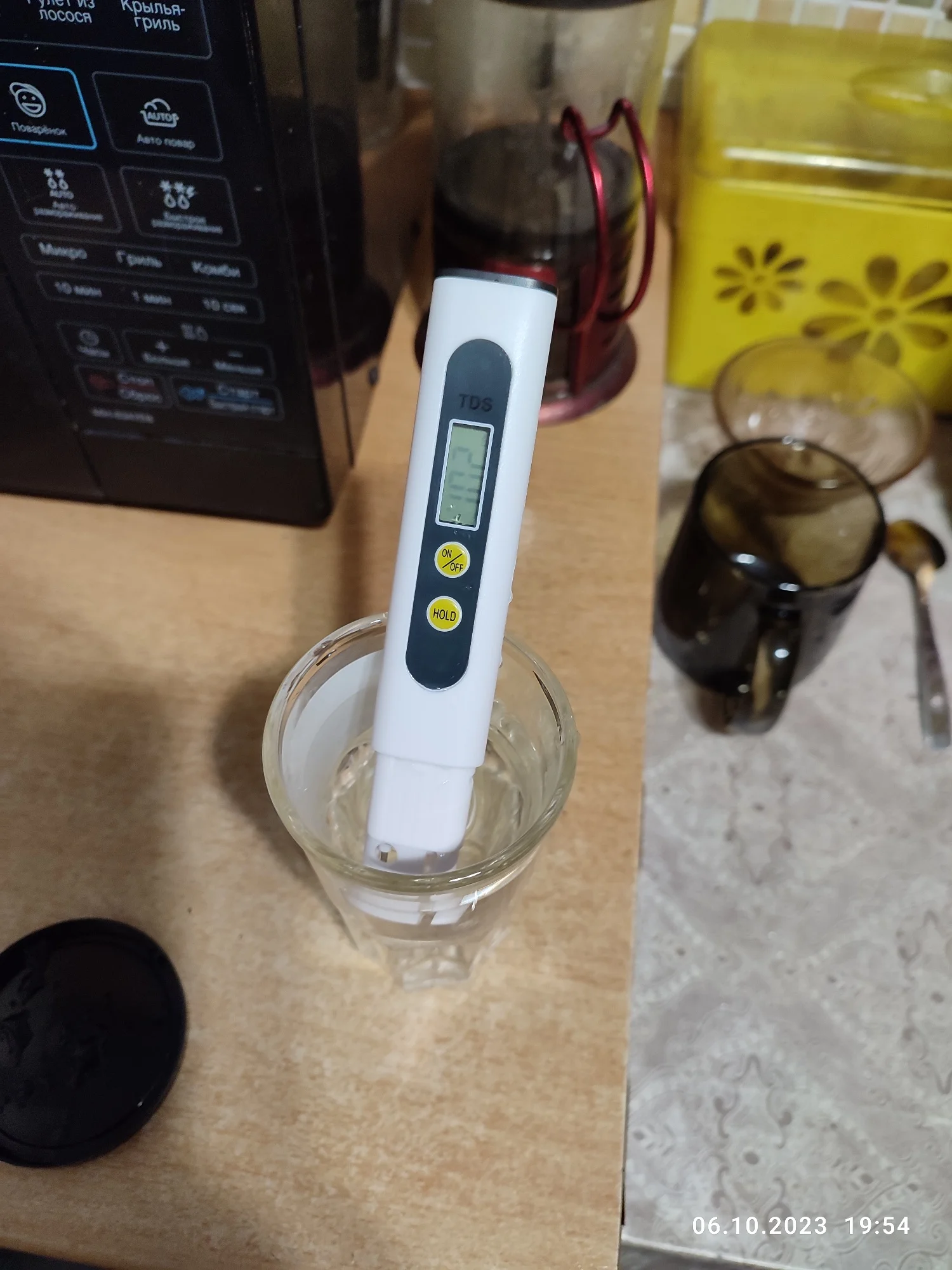 Отличный тестер. Ставишь 2 батарейки LR44 и узнаёшь чистоту питьевой воды.