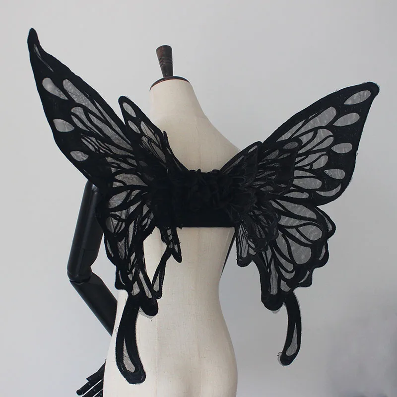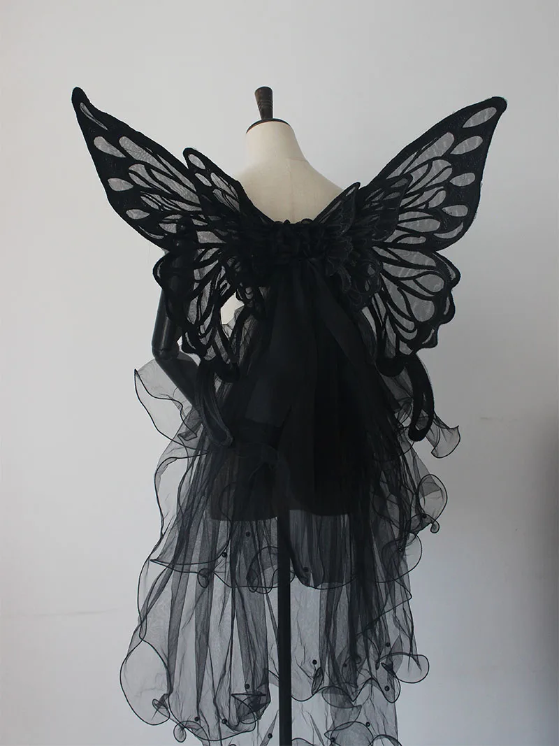 Кружевная вышивка ручной работы крылья бабочки реквизит для фотосъемки Лолита черная белая диффузная выставка косплей искусственное украшение для спины