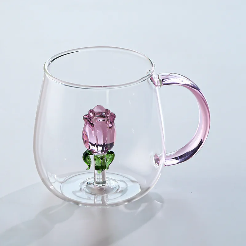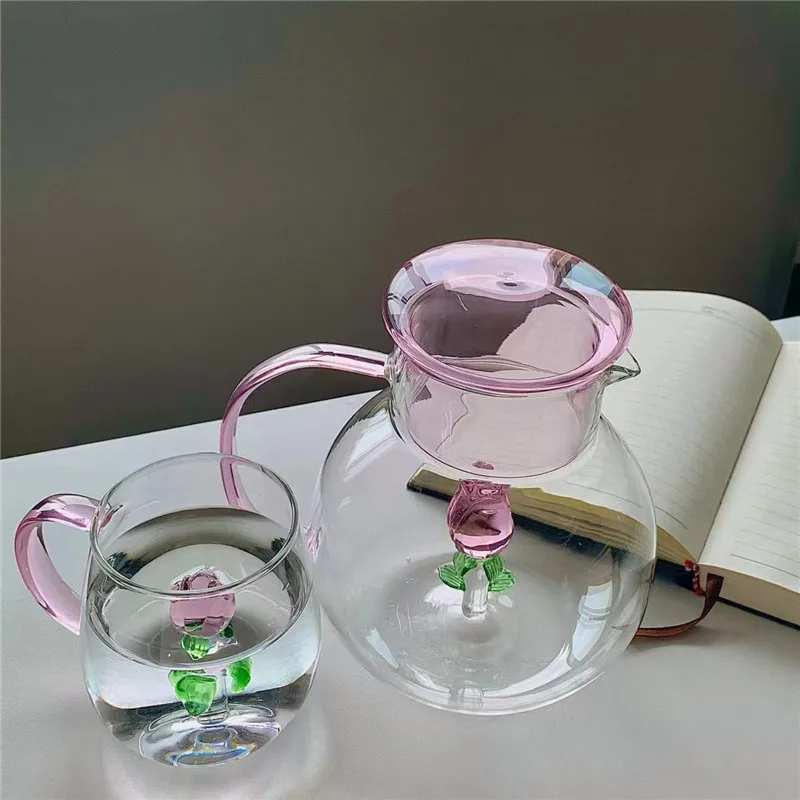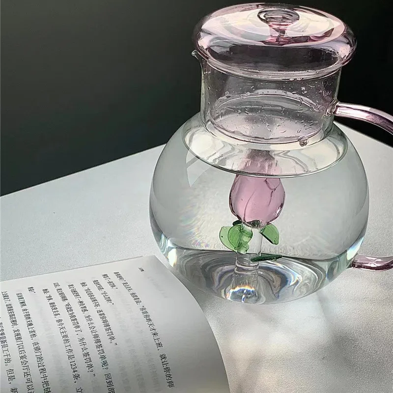 Креативный стеклянный чайник в форме розы с ручкой, прозрачный бытовой чайник для воды, чашка для молока и завтрака, чайник, стеклянный чайник