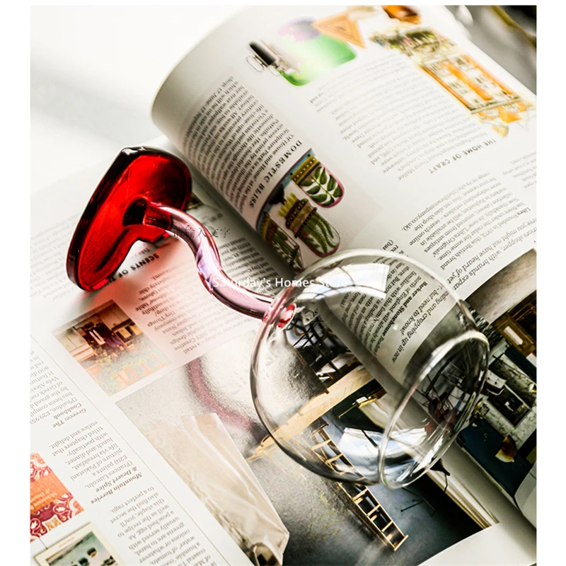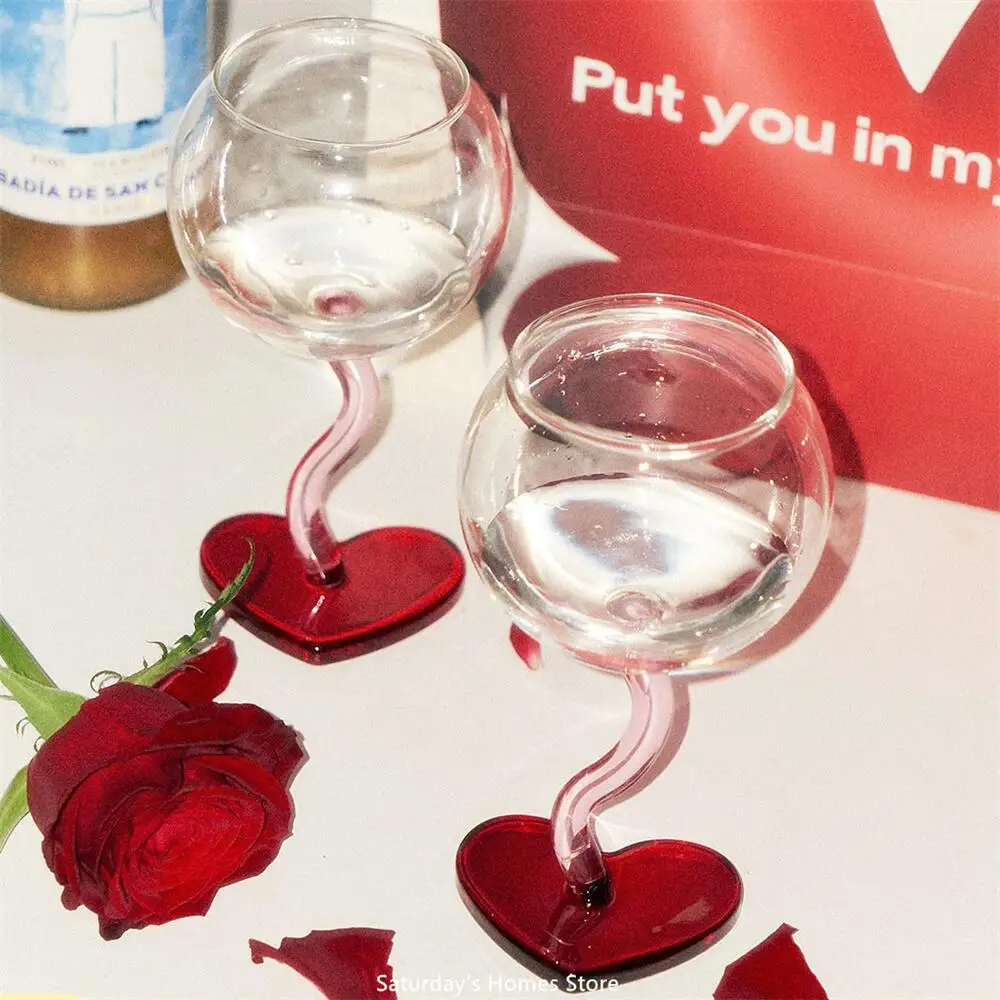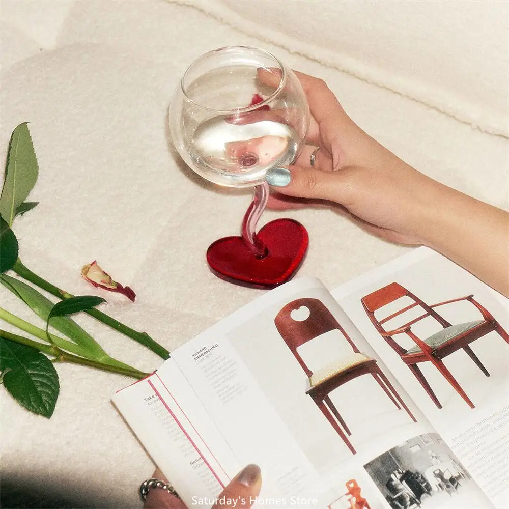 Стеклянный бокал с красным сердцем, бокал, чашка для шампанского, красного вина, стеклянная чашка, боросиликатная термостойкая стеклянная Коктейльная стеклянная кружка, бордовый винный бокал