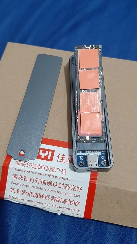 Очень доволен товаром. Корпус прочный и хорошо обработанный. Скорости соответствуют объявлениям при подключении к порту 10 Гбит/с. Мой SSD-Hynix P31 1 ТБ. Результаты тестирования прилагаются. Есть одна проблема-поставляемые термопады слишком толстые. Мне пришлось использовать другой термопад толщиной 0,5 мм. Если бы я использовал поставленные термопады, верхняя крышка согнулась бы, и был риск повредить ssd. JEYI должен добавить 4 штуки термопадов 0,5 мм и 4 штуки термопадов 1,3 мм вместо этих оранжевых.zi6oe3qx u. 16 сентября 2023