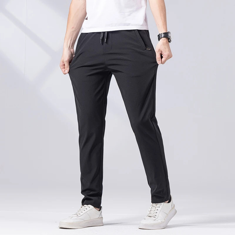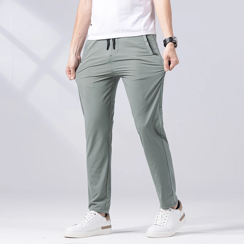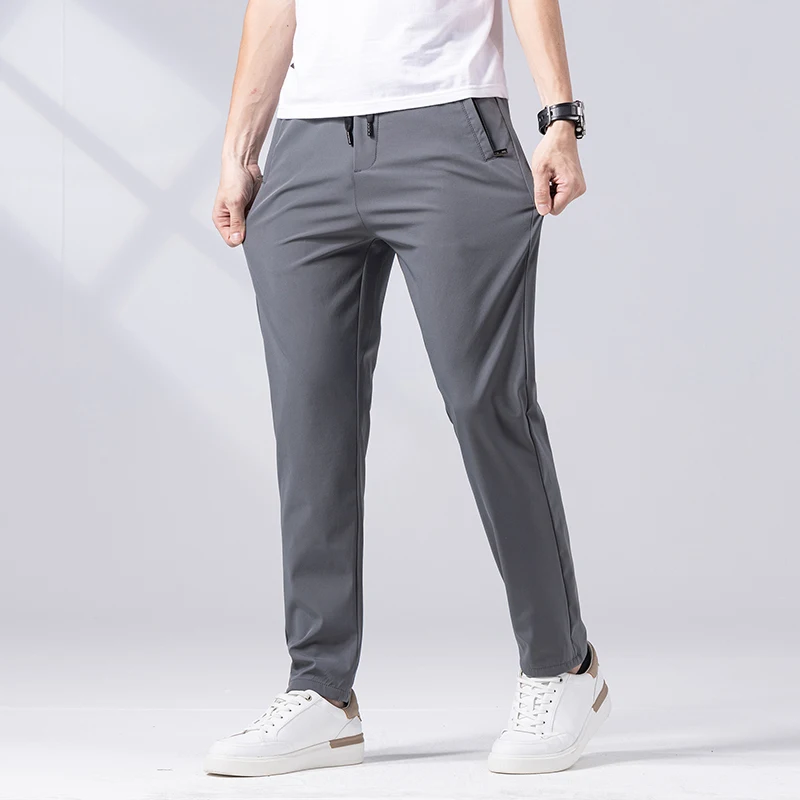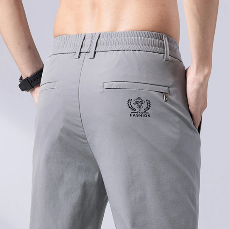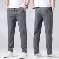 Брюки мужские прямые повседневные облегающие, модные тонкие эластичные штаны в деловом стиле, уличная одежда, черные серые зеленые, лето 2023