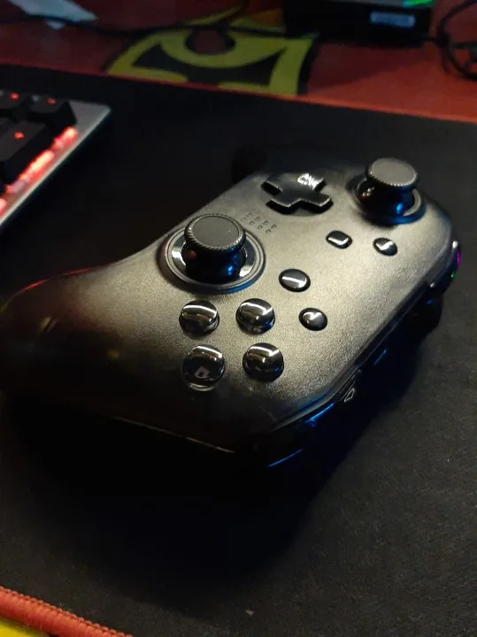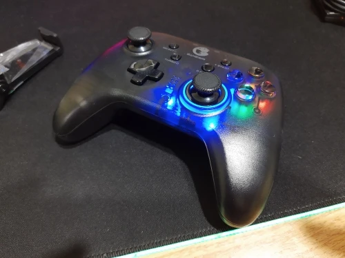 Мой любимый геймпад в моей коллекции! Купил ещё один, для игры с девушкой. Качество исполнения - отменное! Стики не имеют мертвых зон, курки - аналоговые, чувствительные. Подсветка красивая, за счёт прозрачного корпуса - выглядит футуристично. Подсветка регулируется, можно отключить как и вибрацию. Вибрация мягкая, два ассинхронных вибромотора. На ПК определяется как XBox 360 controller, все игры, которые поддерживают управление геймпадом его видят. С Android тоже работает прекрасно, в поддерживаемых играх и эмуляторах всё прекрасно. Также геймпад поддерживает подключение к Nintendo Switch и iOs. Очень удобные дополнительные лепестки, на которые можно повесить дубли кнопок или целые макросы! Основные кнопки нажимаются приятно, при тряске не дребезжат. Для игры на смартфоне в комплекте имеется держатель, который плотно вставляется в геймпад. В держателе смартфон держится плотно, за счёт прорезиненных поверхностей, при тряске не выпадает. Мои рекомендации к покупке, однозначно!