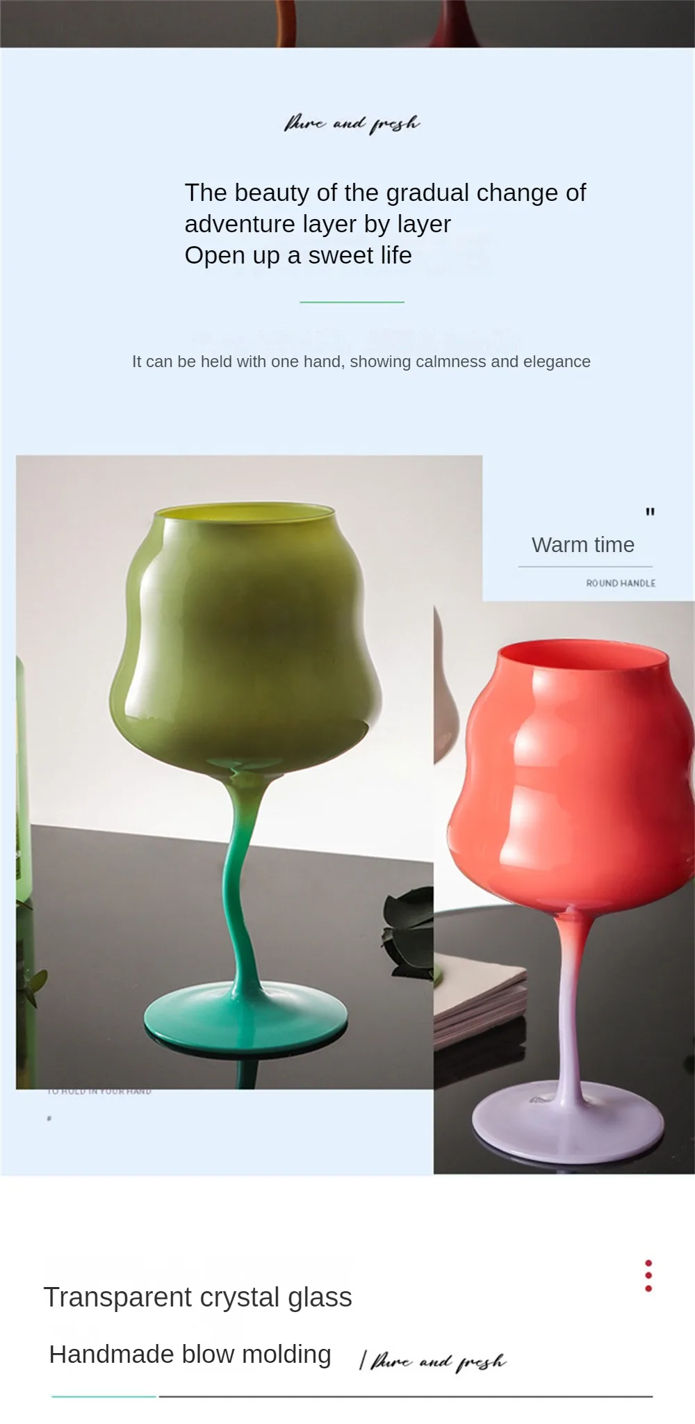 4. Прозрачное Хрустальное стекло, ручное выдувное формование: прозрачное и яркое, хорошее преломление света и тени, вход также непринужденный