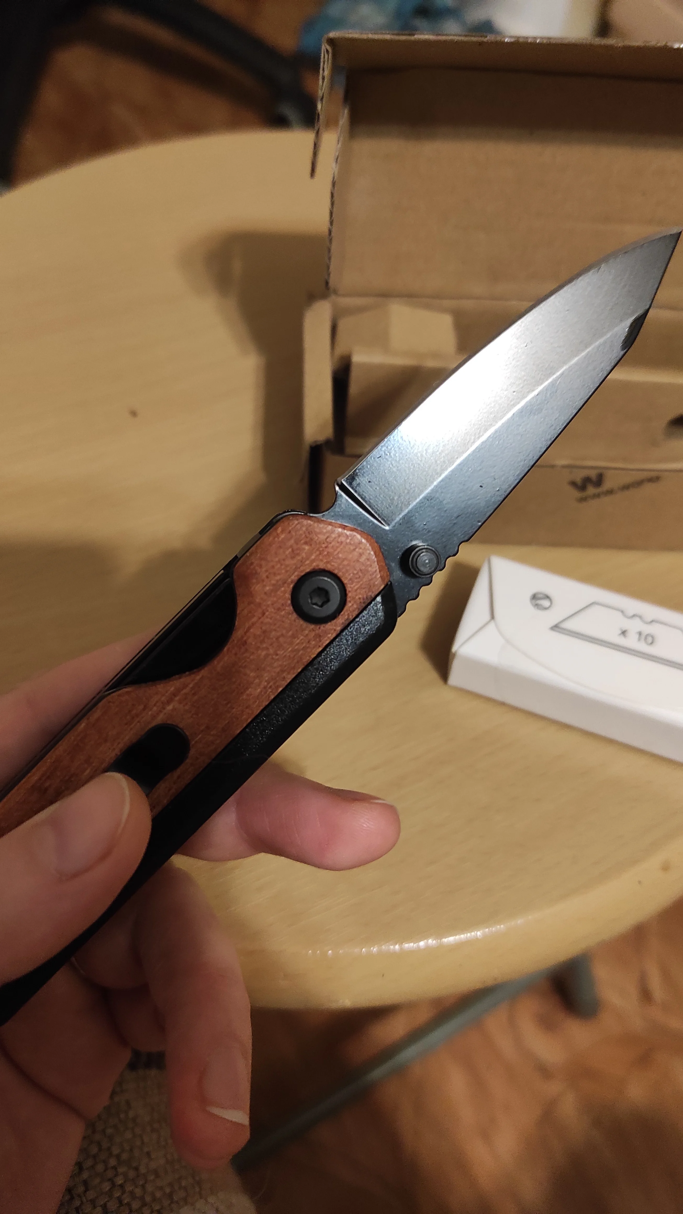 Нож - пушка! Заинтересовался ножиком, так как уже покупал товары этого бренда, понравились. Получил, офигел от скорости доставки - раз, потом от ножика. Из рук выпускать не хочется. Присматриваюсь теперь к другим товарам бренда, прям очень понравилось. Ничего не люфтит, в тоже время сделан просто без излишеств. в руке лежит очень удобно, хоть по фото казалось что будет толстоват.