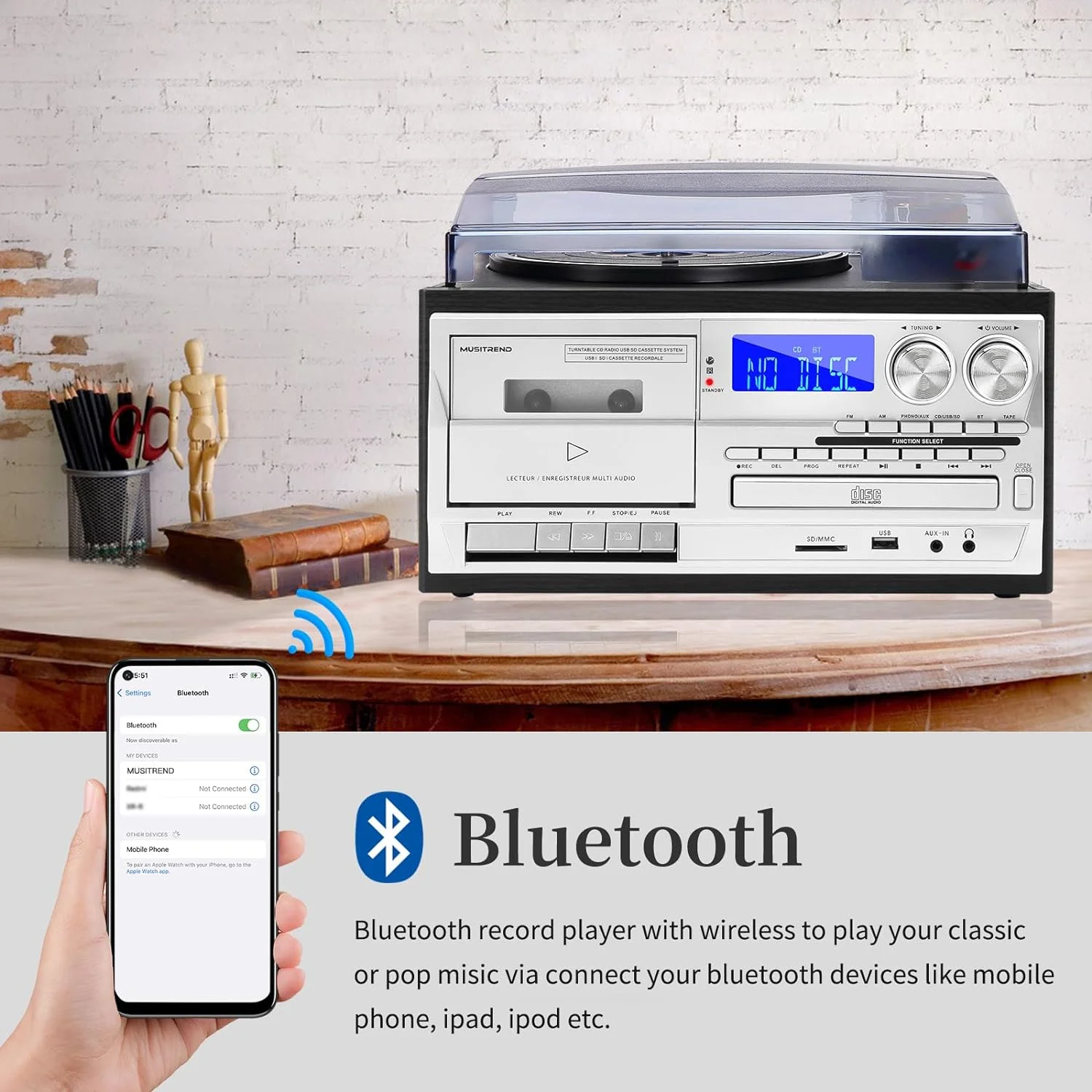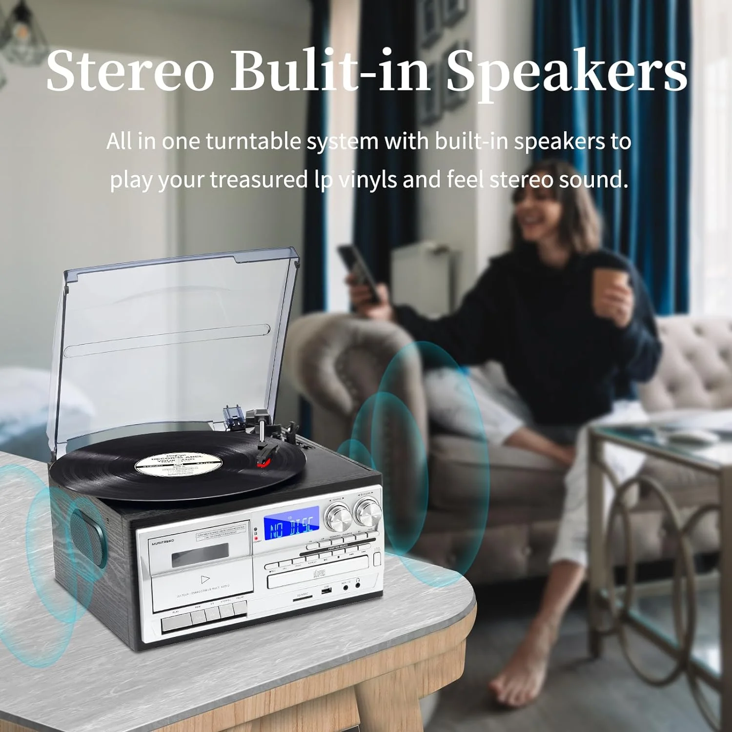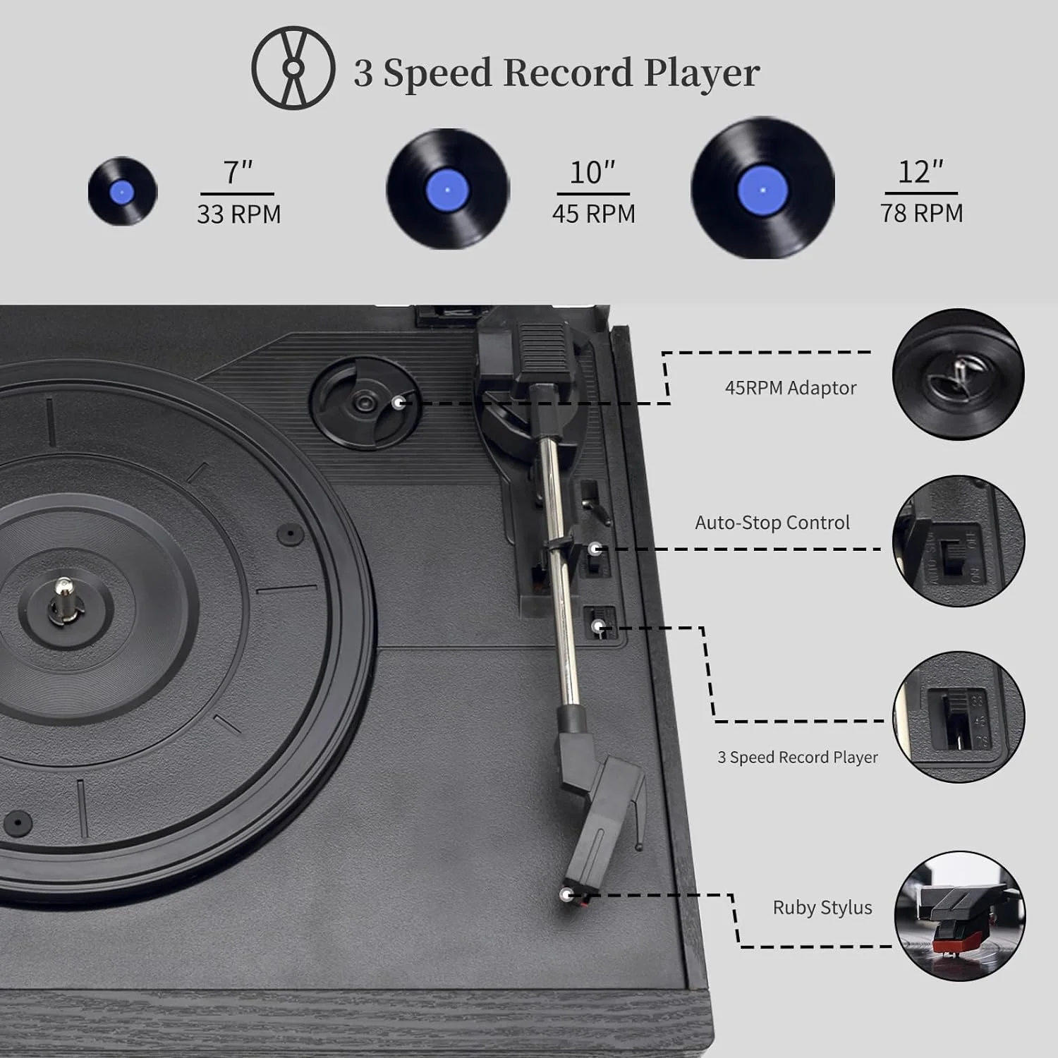 Универсальный многофункциональный винтажный фонограф, 3-скоростной регулируемый проигрыватель виниловых пластинок с проигрывателем пластинок, кассета для компакт-дисков, FM/AM радио