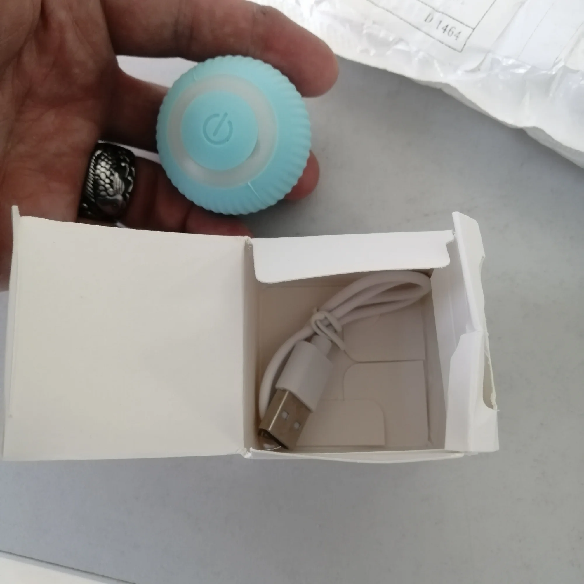 Это не перезаряжаемый аккумулятор, а 2 кнопки, как только пакет прибыл, мои Кошки были поцарапаны на мяче (очень редко). Он также принес сумку с некоторыми порошками.