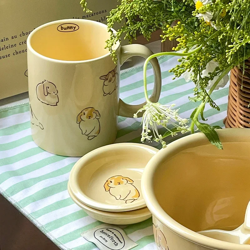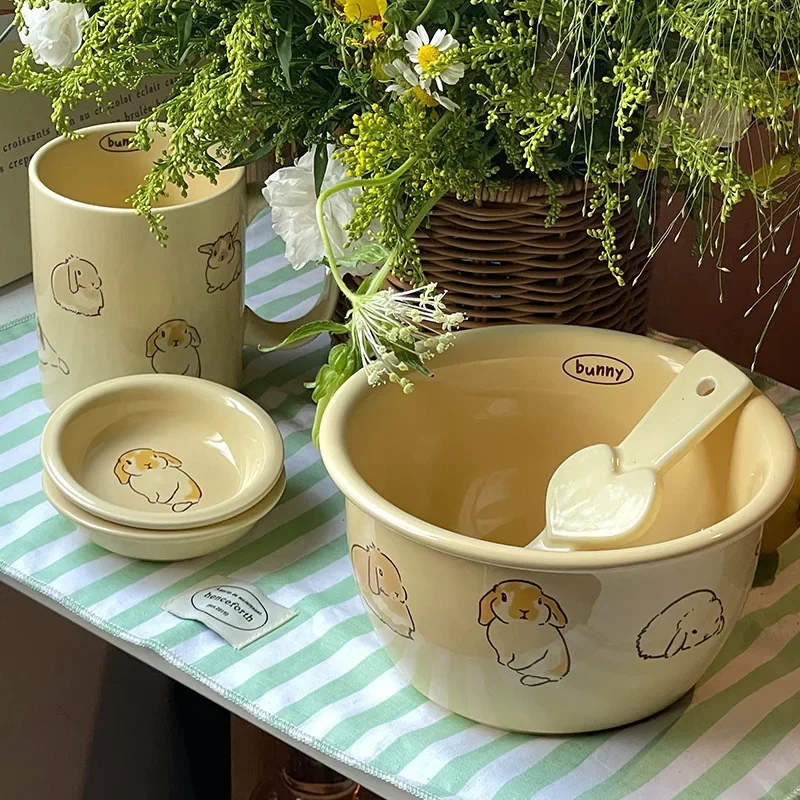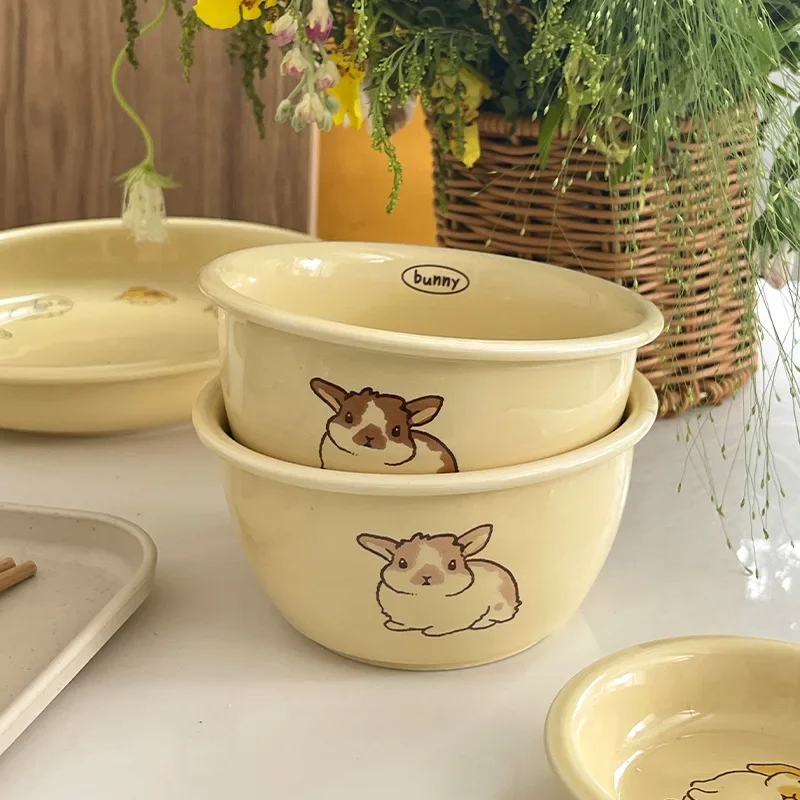 Оригинальный кролик с рисунком корейского стиля, новинка 2023, посуда, бытовая миска для лапши, керамическая миска для риса, миска для супа, тарелка, оптовая продажа