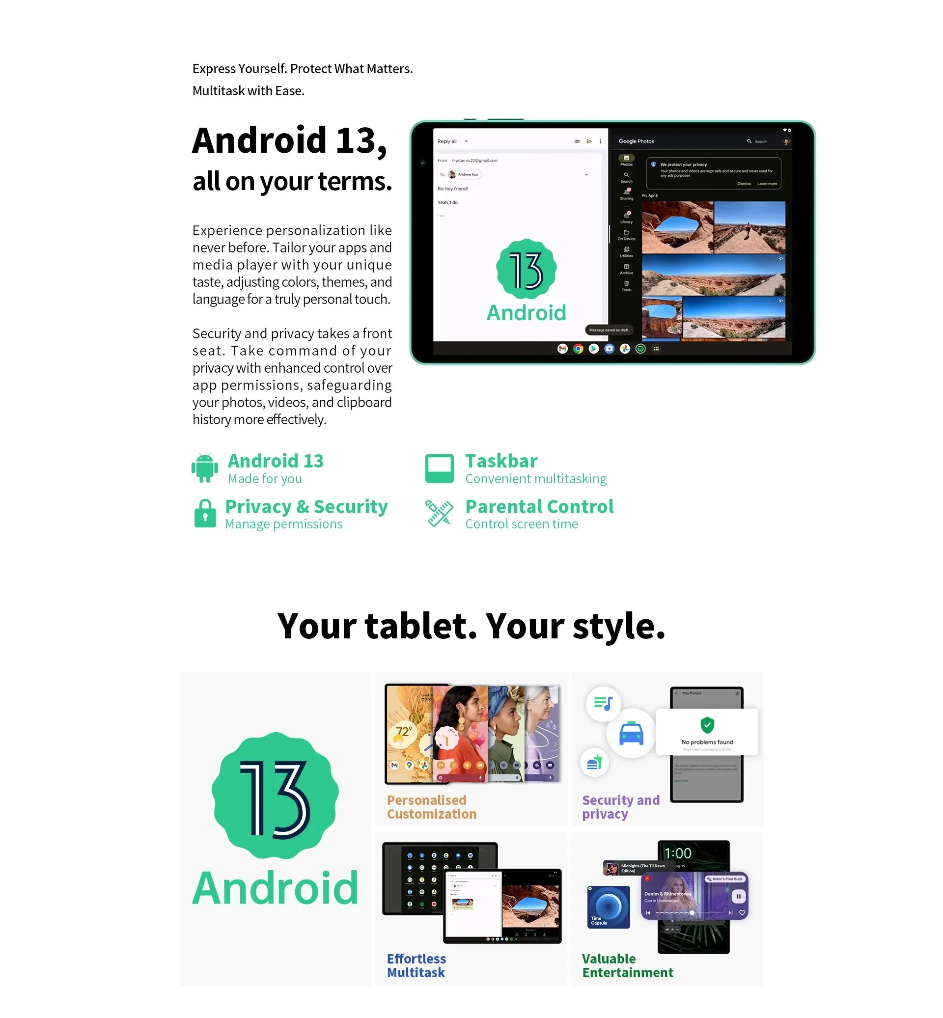 • Варианты подключения :Разработанный с WiFi 5 и BT 5,0, этот планшет обеспечивает быстрое и стабильное подключение к Интернету и бесперебойную передачу данных.