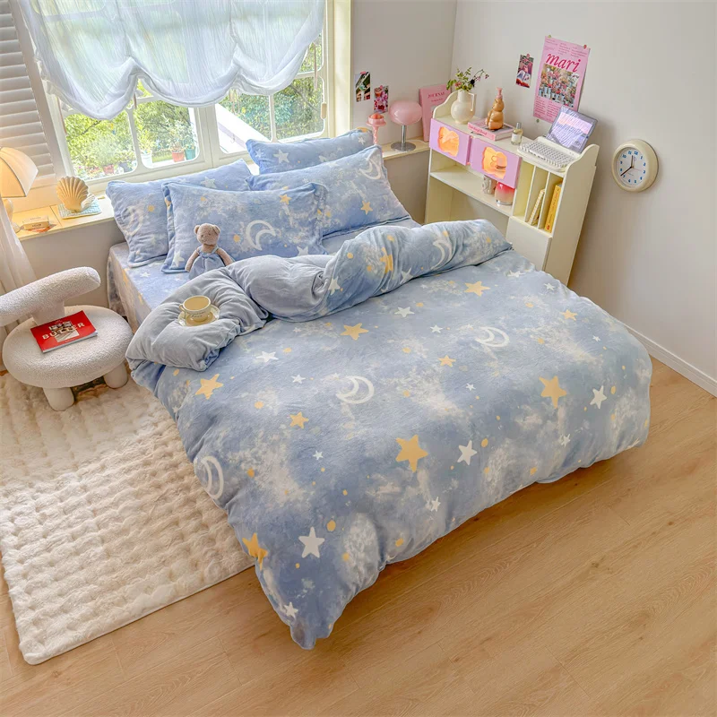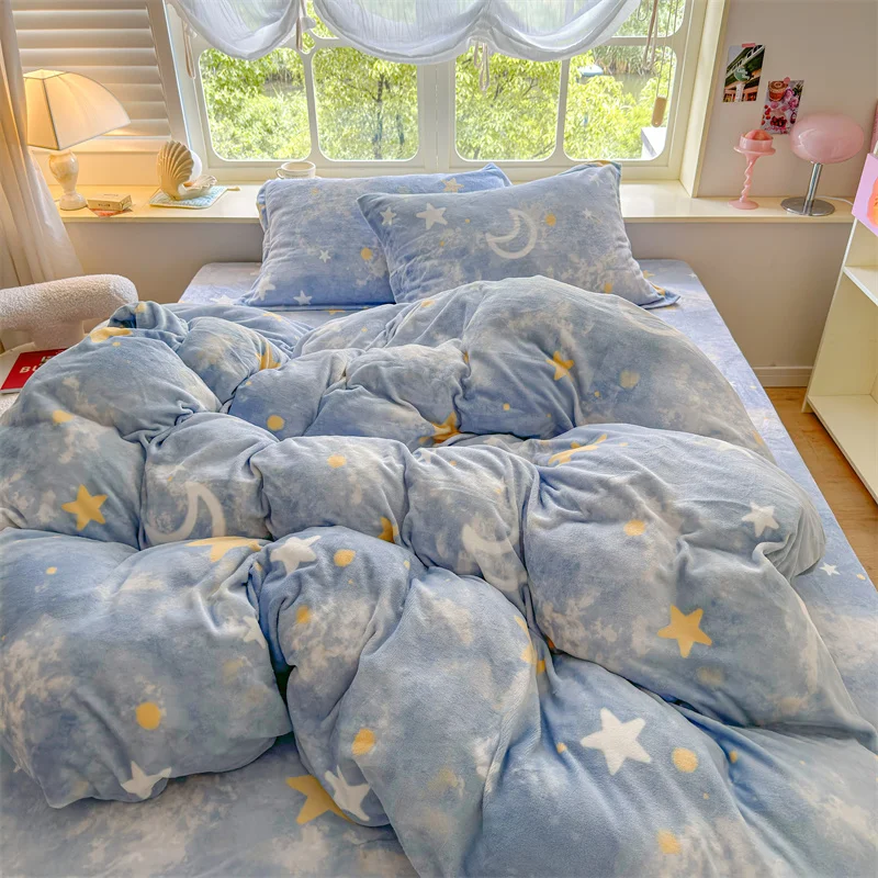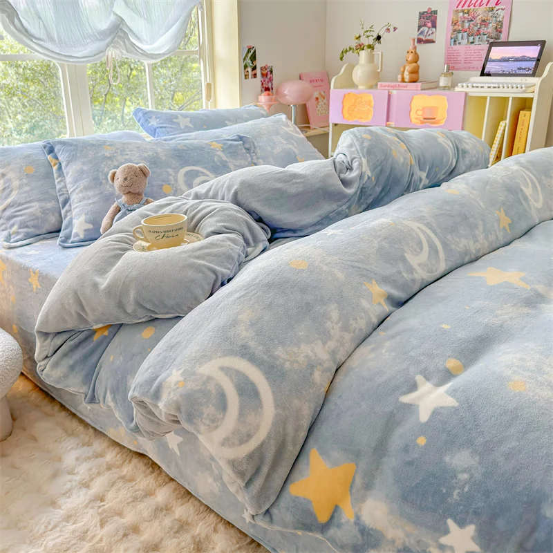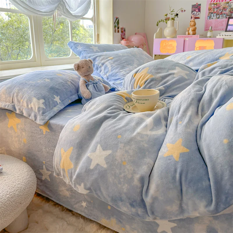 Молочный бархат, пододеяльник для спальни, звезды, утолщенное одеяло, наборы стеганых покрывал, Комплект постельного белья, пододеяльник, двуспальный, двуспальный, двуспальное постельное белье