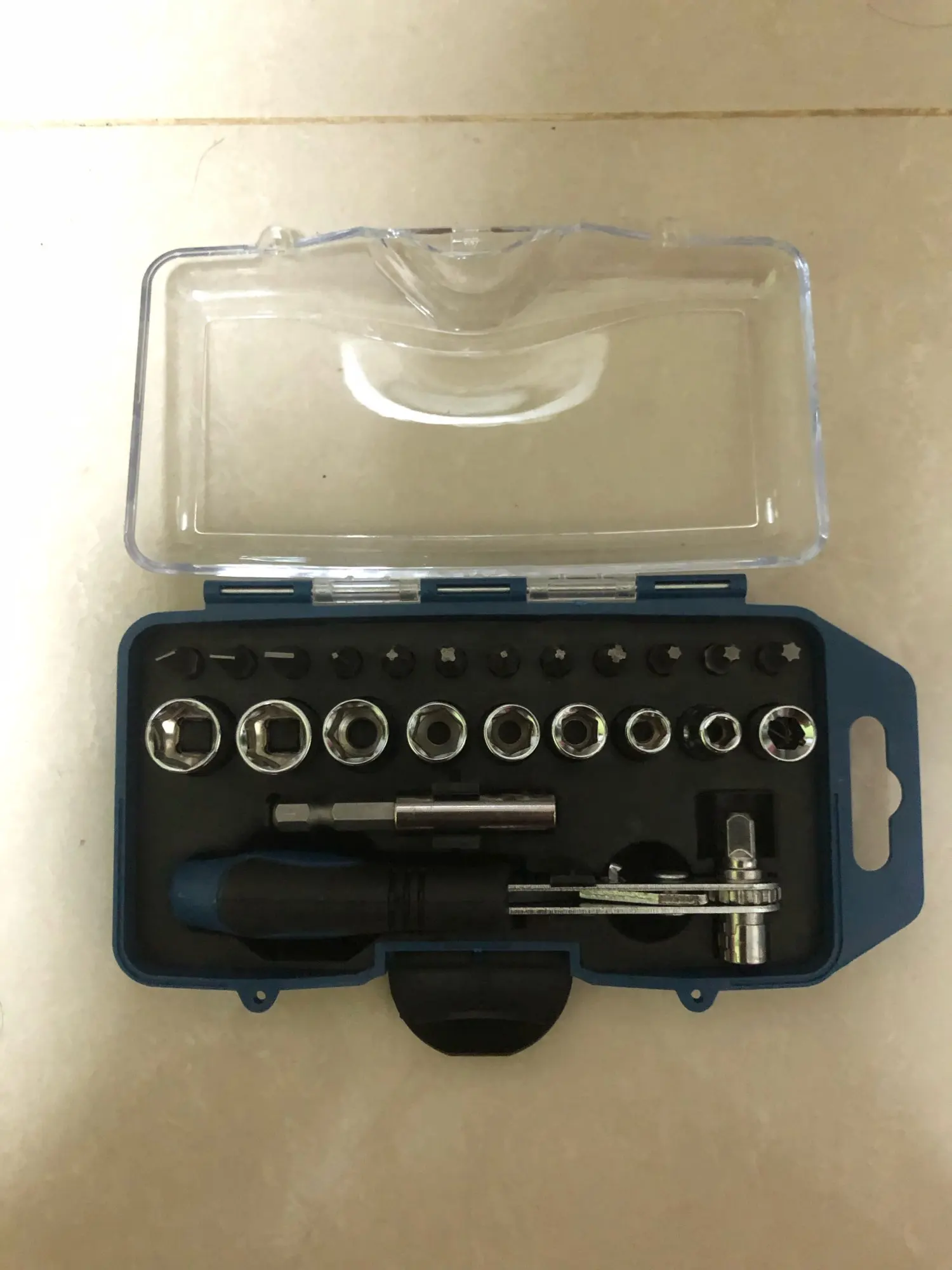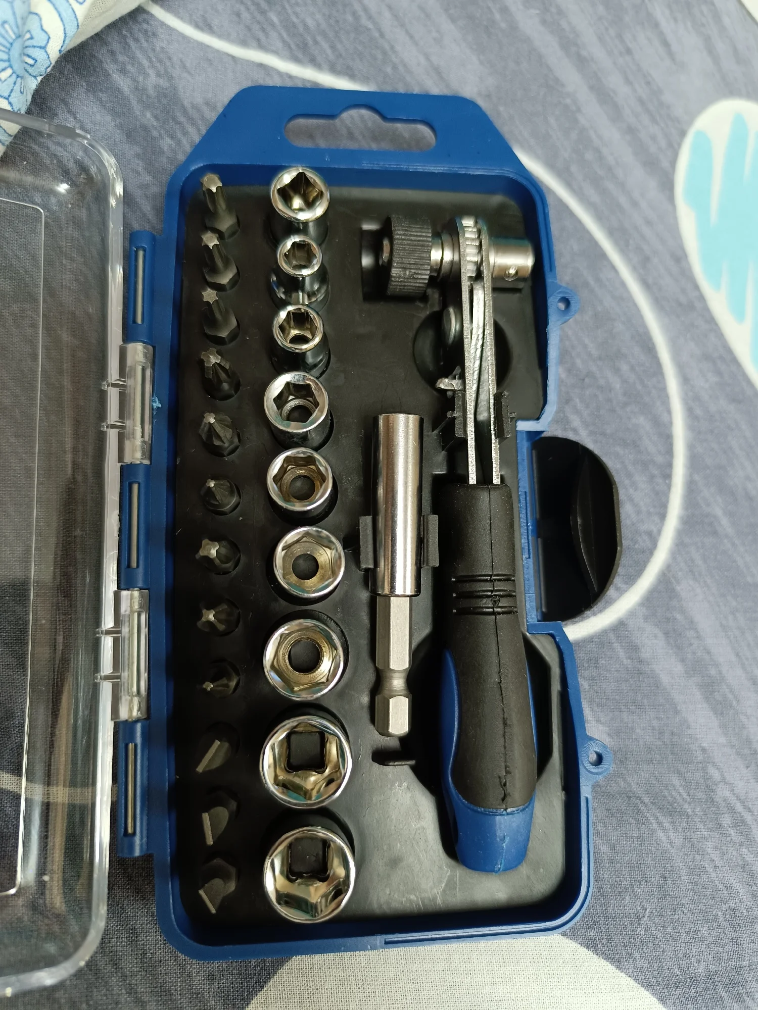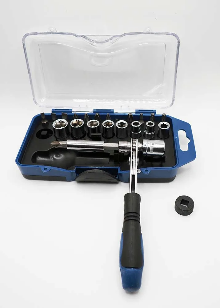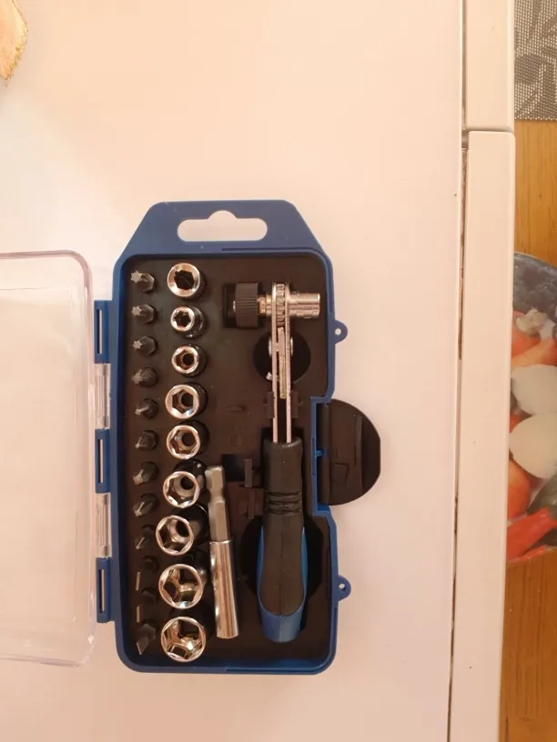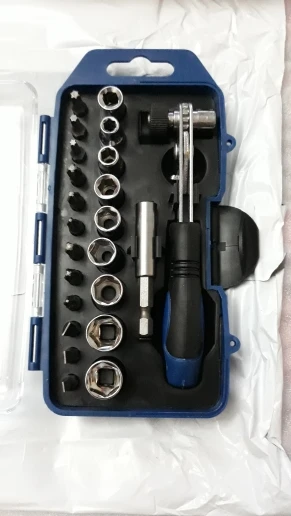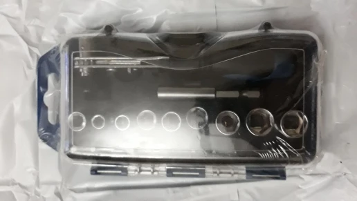 хороший набор для мелких работ, ручка прорезинена, трещётка работает, ключ небольшой. Пригодится чтобы что-то подкрутить, закрутить по-мелочи. Доставка быстрая, продавец на запрсы отвечает. Всем спасибо.
