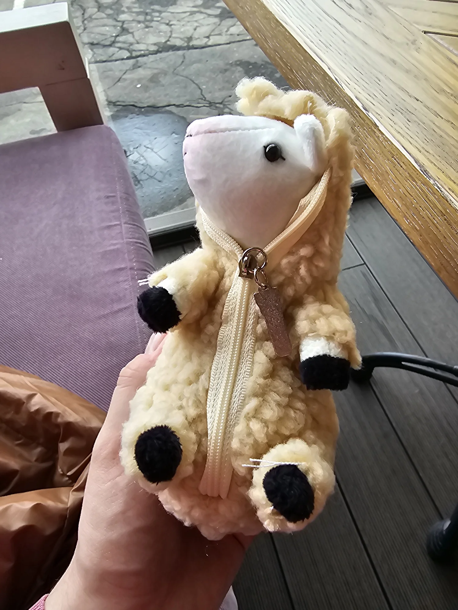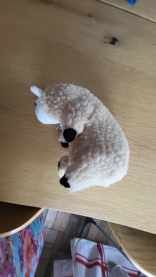овечка хорошая, думал будет больше размером)) немного небрежно сшита, торчат нитки кое где и крой