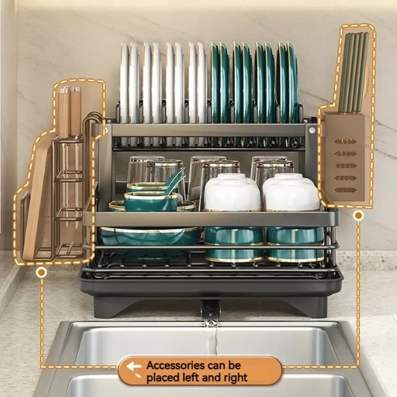 Кухонный органайзер, сушилка для посуды, чашек, ножей, вилок, кастрюль, крышек, посуды, стеллаж для хранения, кухонный счетчик, посуда, сушилка