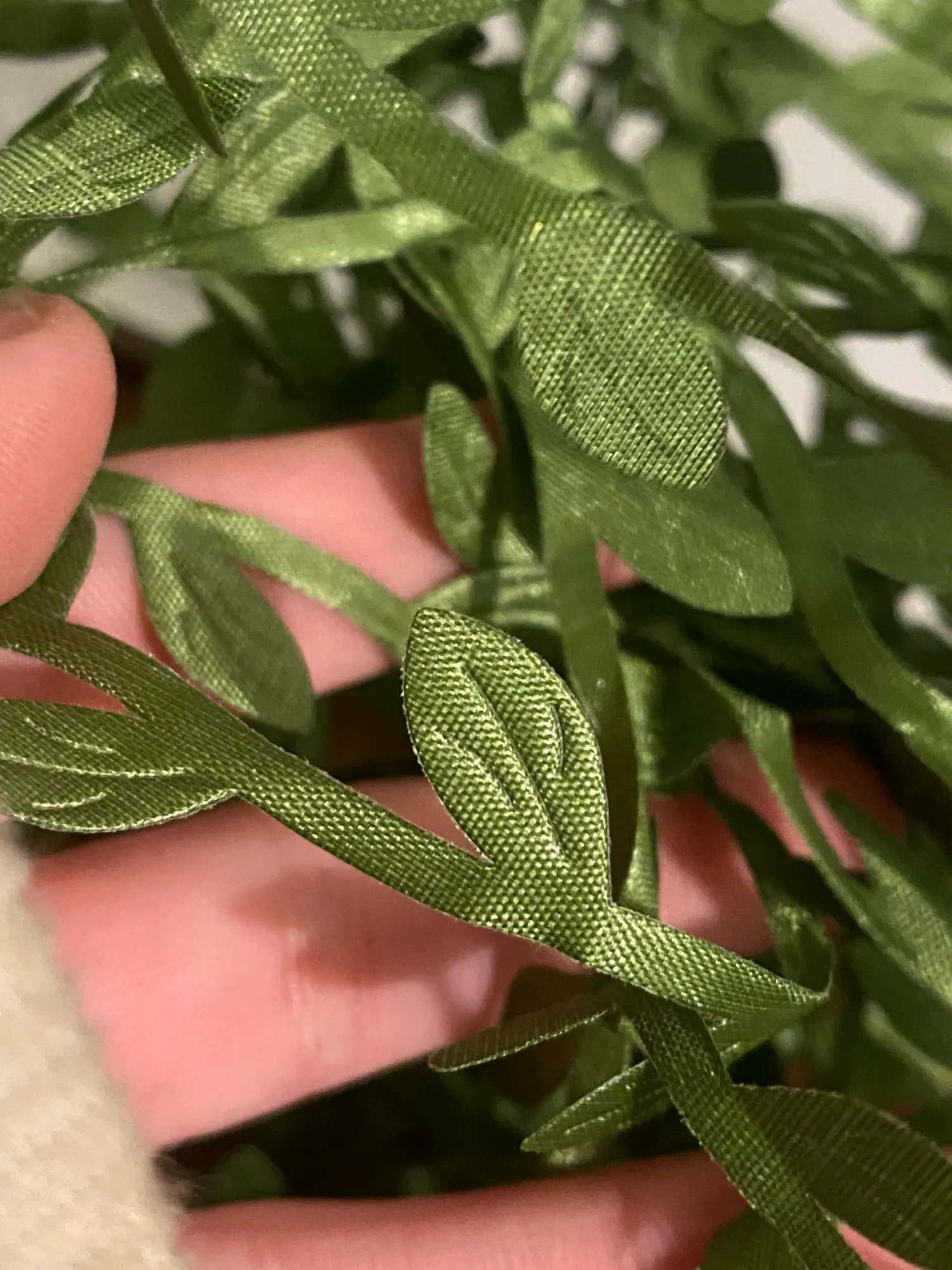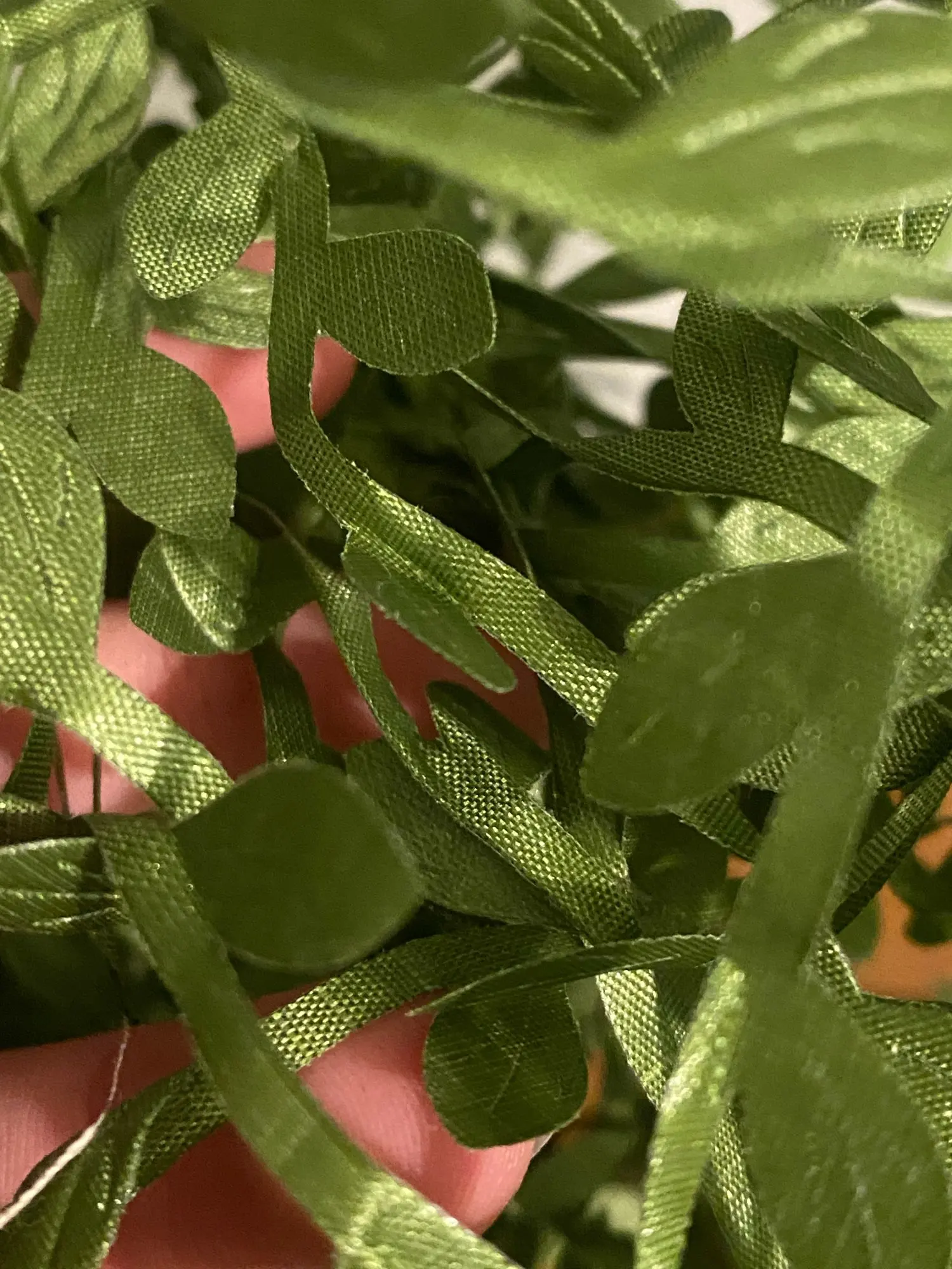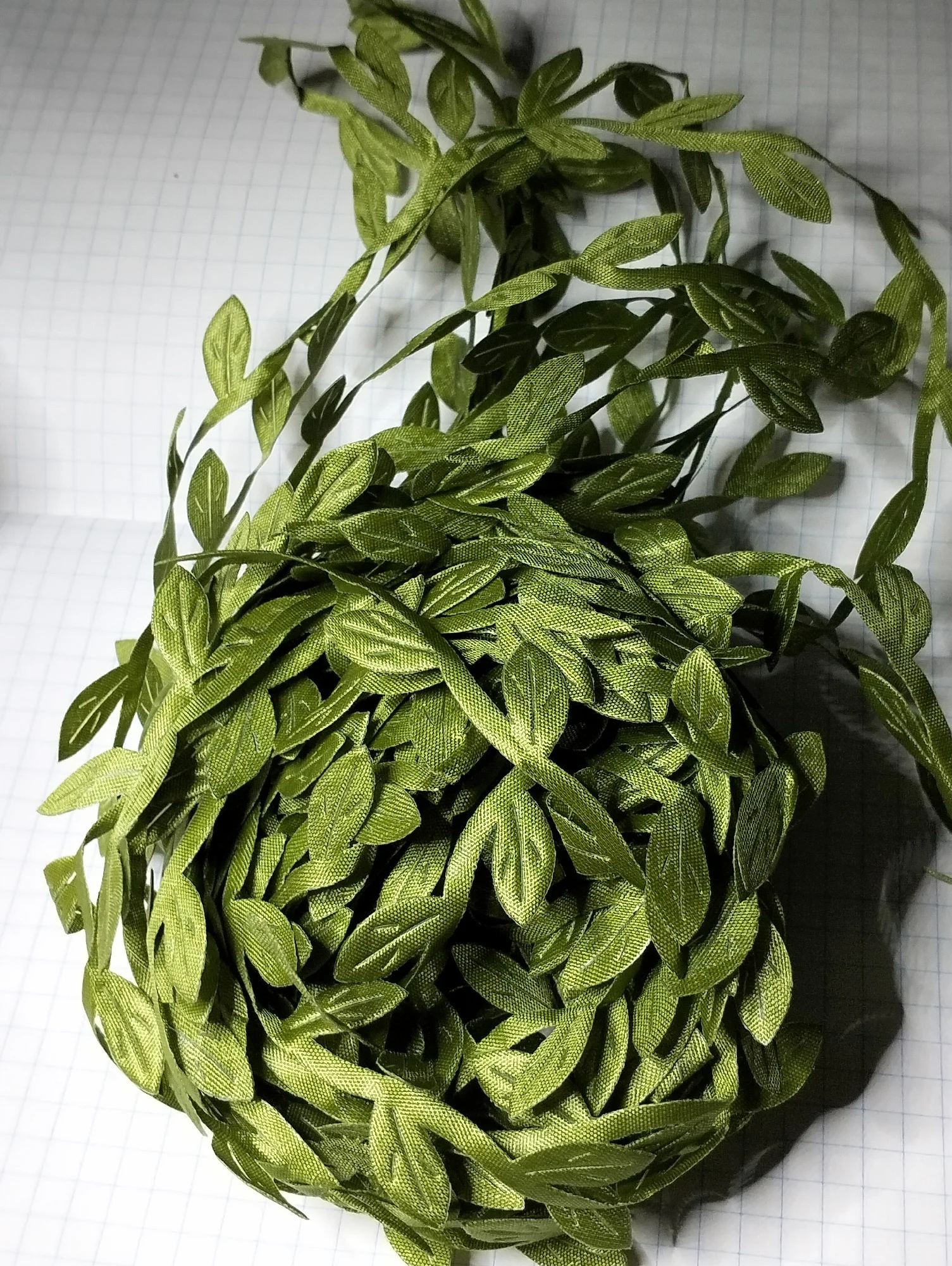 Заказала 16.12.2021, забрала 13.01.2022 (почтомат МистЭкспресс, Киев, Украина, с другими заказами). Очень неплохое качество. Мне нравится, что таки можно было найти и другую лиану по дизайну, более тонкую и с маленькими листьями. В дополнении с обычной, «классической», лианой дизайн выглядит очень гармоничным и бомбезным. Тут есть 10 метров. Также, как и было изначально задумано, её также можно использовать и в других творческих целях. Там в некоторых местах могут нитки торчать, но их легко прижечь (отрезать не вариант, ибо ткань сыпаться начнёт).