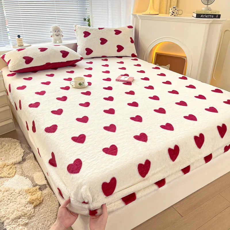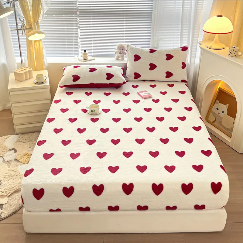 WOSTAR зимняя теплая плюшевая натяжная простыня эластичный чехол на матрас теплое флисовое постельное белье с принтом красного сердца Королевский размер