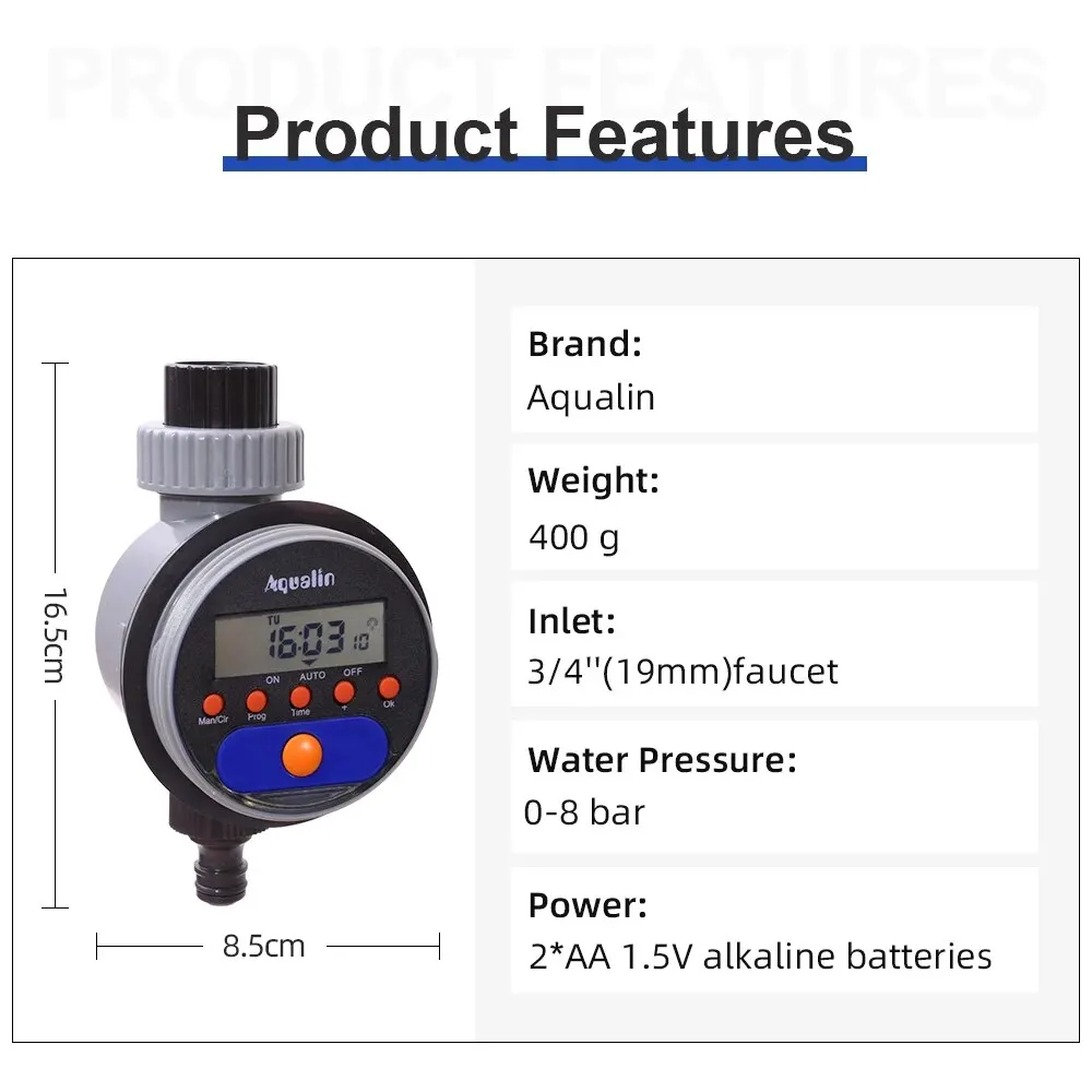 Автоматический таймер полива ЖК-дисплея Электронный домашний садовый шаровой клапан 8 программ Таймер воды для орошения сада