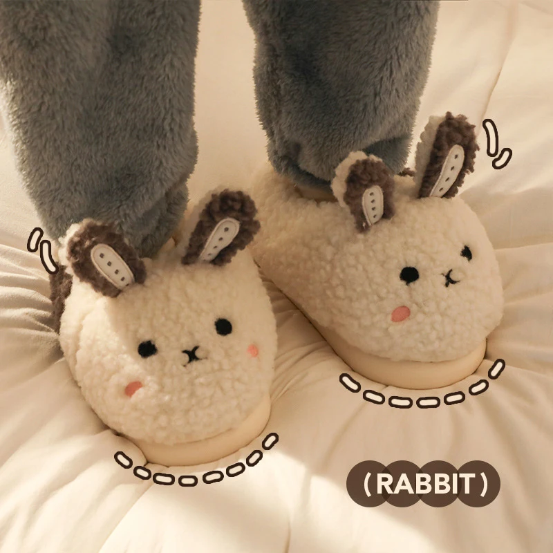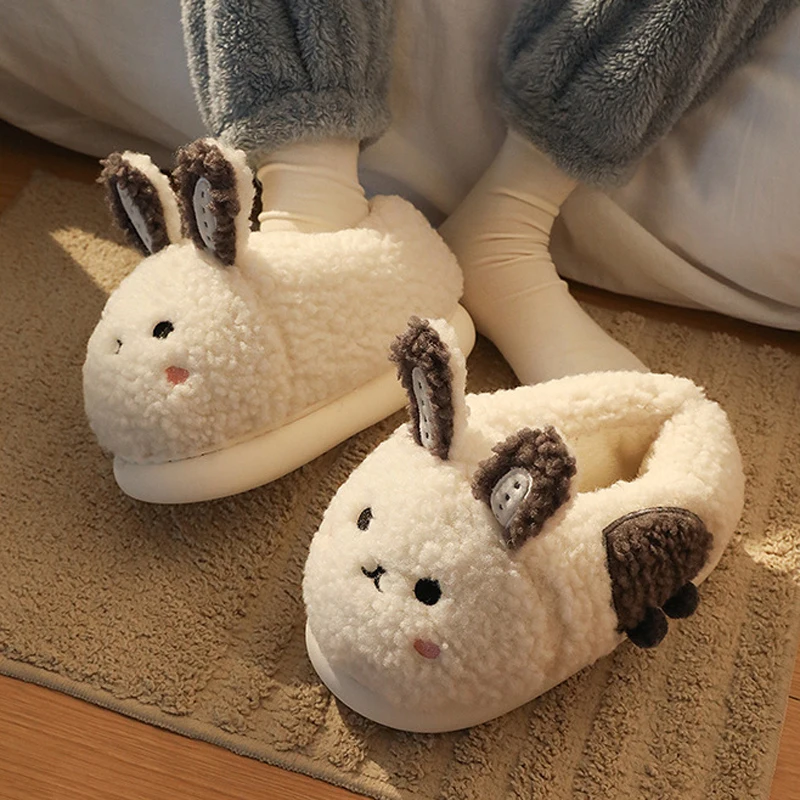 - 2023 зимние пушистые тапочки в виде кролика, женская домашняя обувь из...