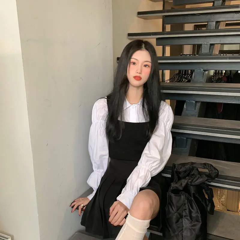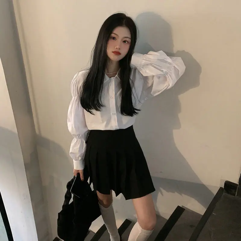 Рубашка женская с длинным рукавом и буффами, уютная модная нежная Студенческая одежда во французском ретро-стиле для свиданий, праздника, весна-осень