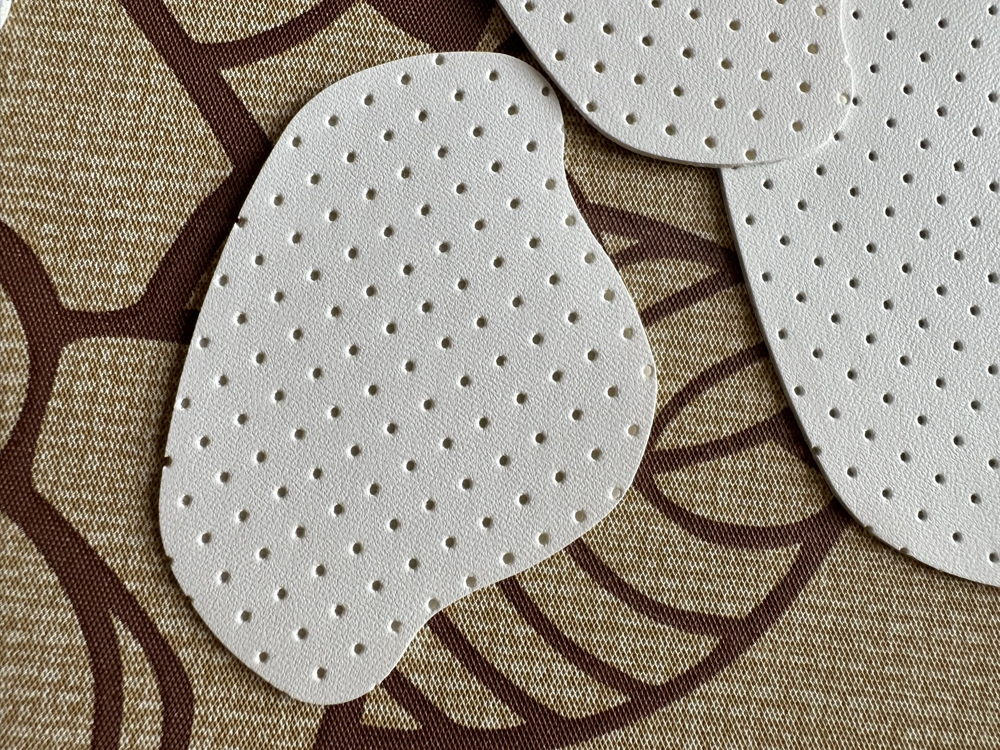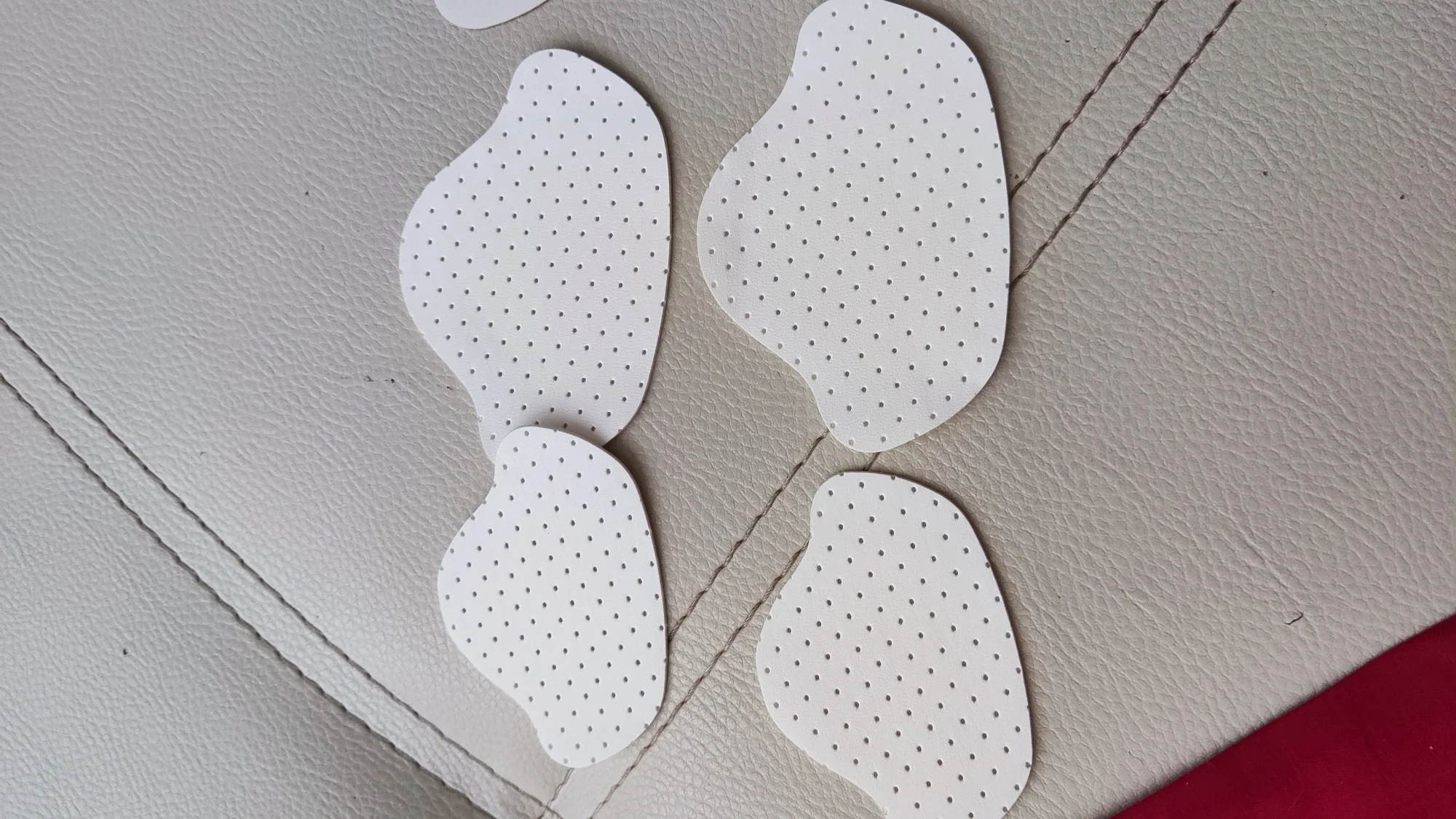 товар полностью соответствует описанию, качество изготовления на отличном уровне, поверхность выполнена под кожу с хорошей перфорацией, мягкие и эластичные, отлично клеятся, всем рекомендую отличное качество быстрая доставка в течении 30 дней и ответственный продавец