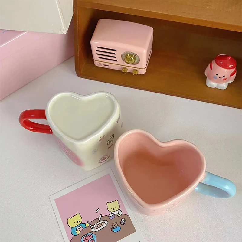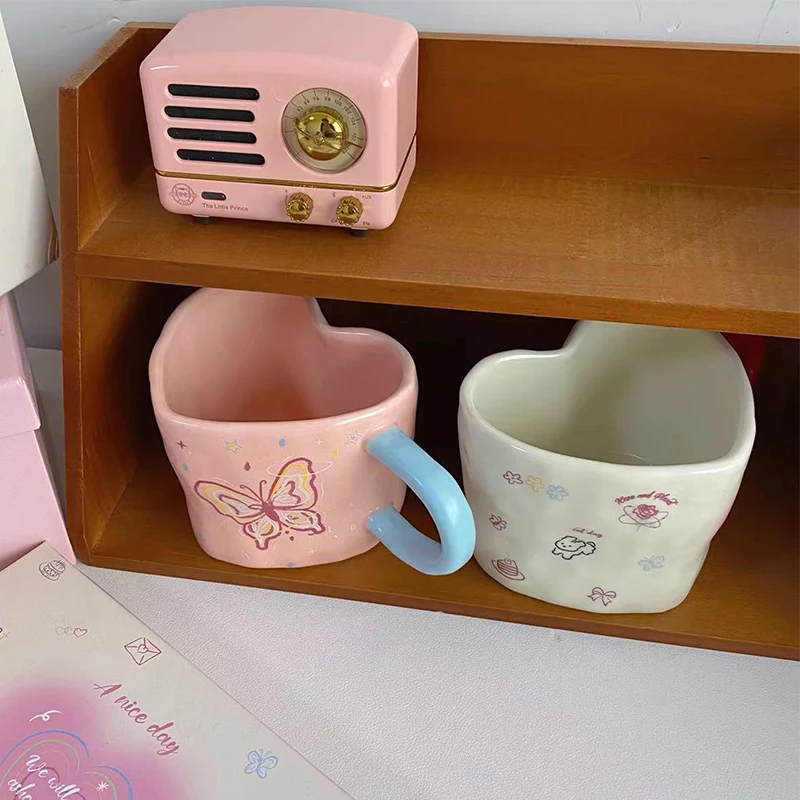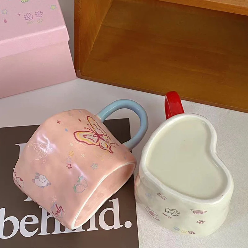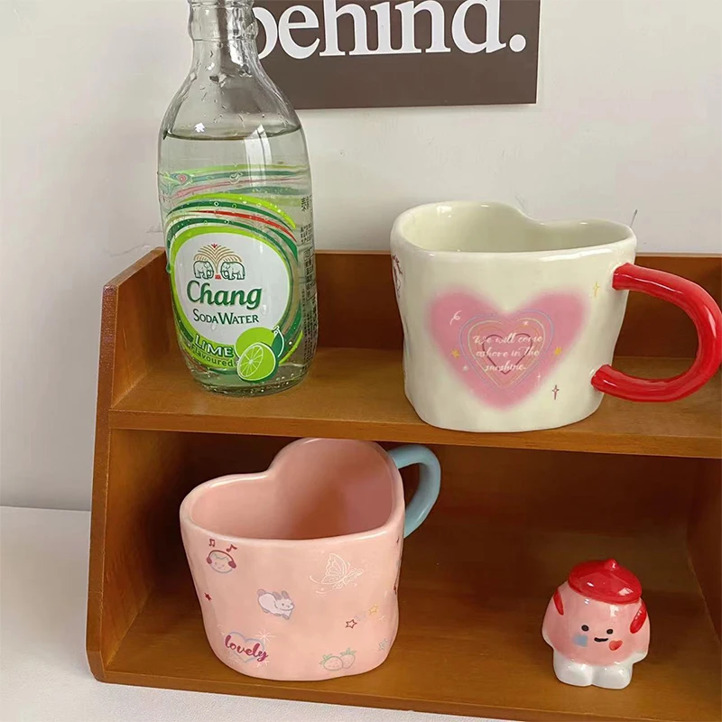 Корейская керамическая кружка в стиле Ins, милая кружка для молока и кофе с розовым сердцем, бабочкой, милый граффити, чашка для послеобеденного чая, модные чашки для питья, подарок