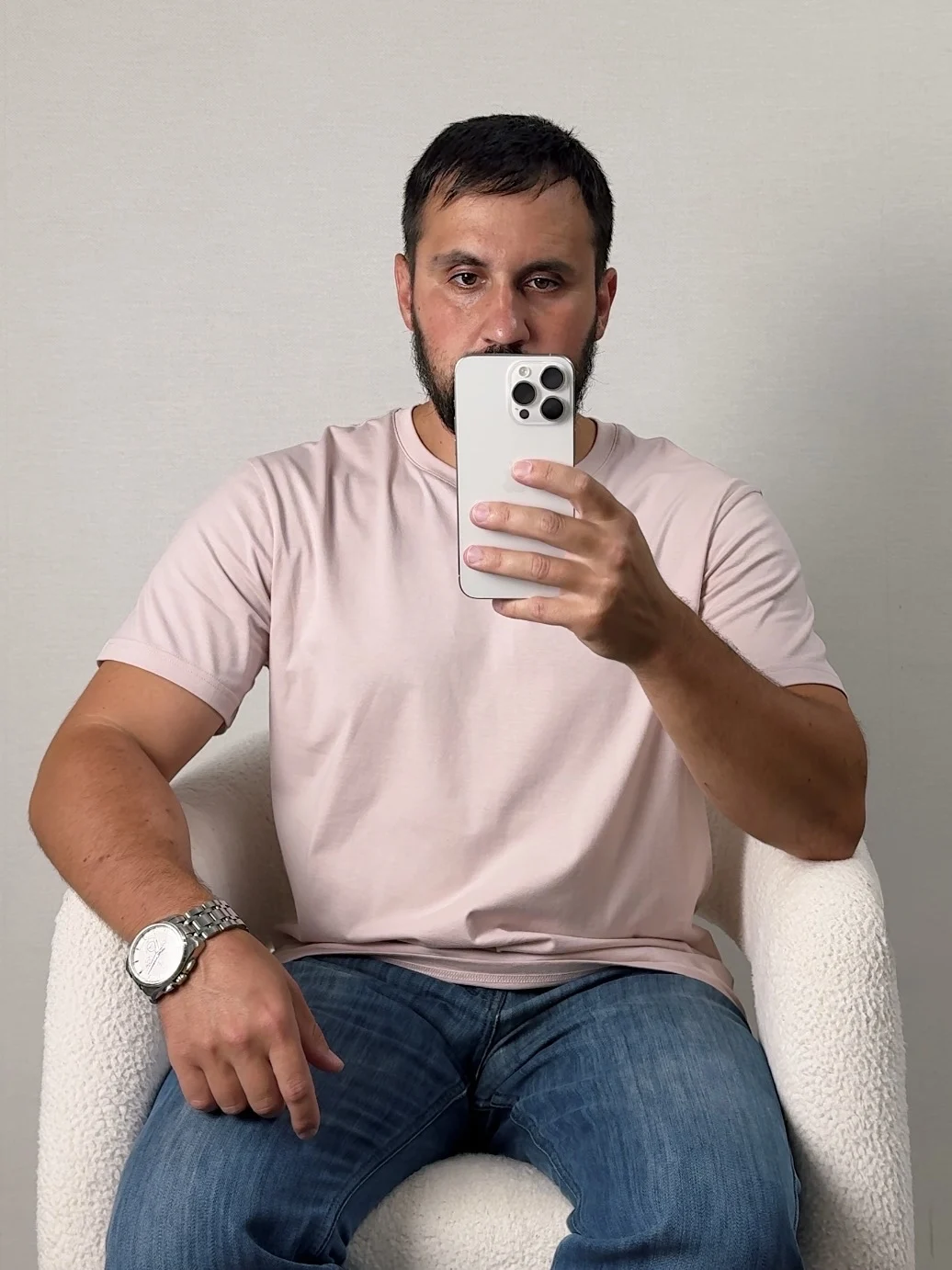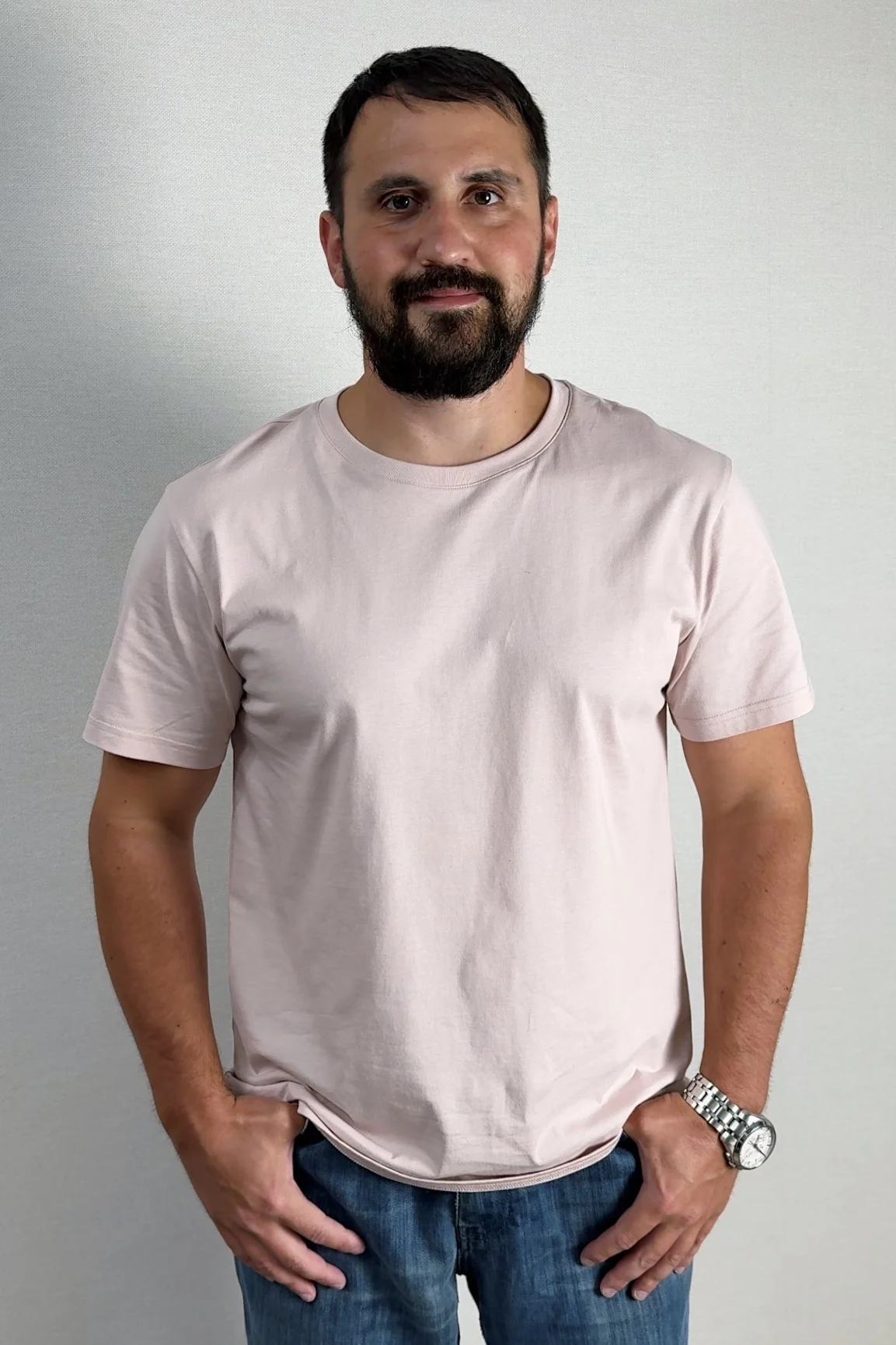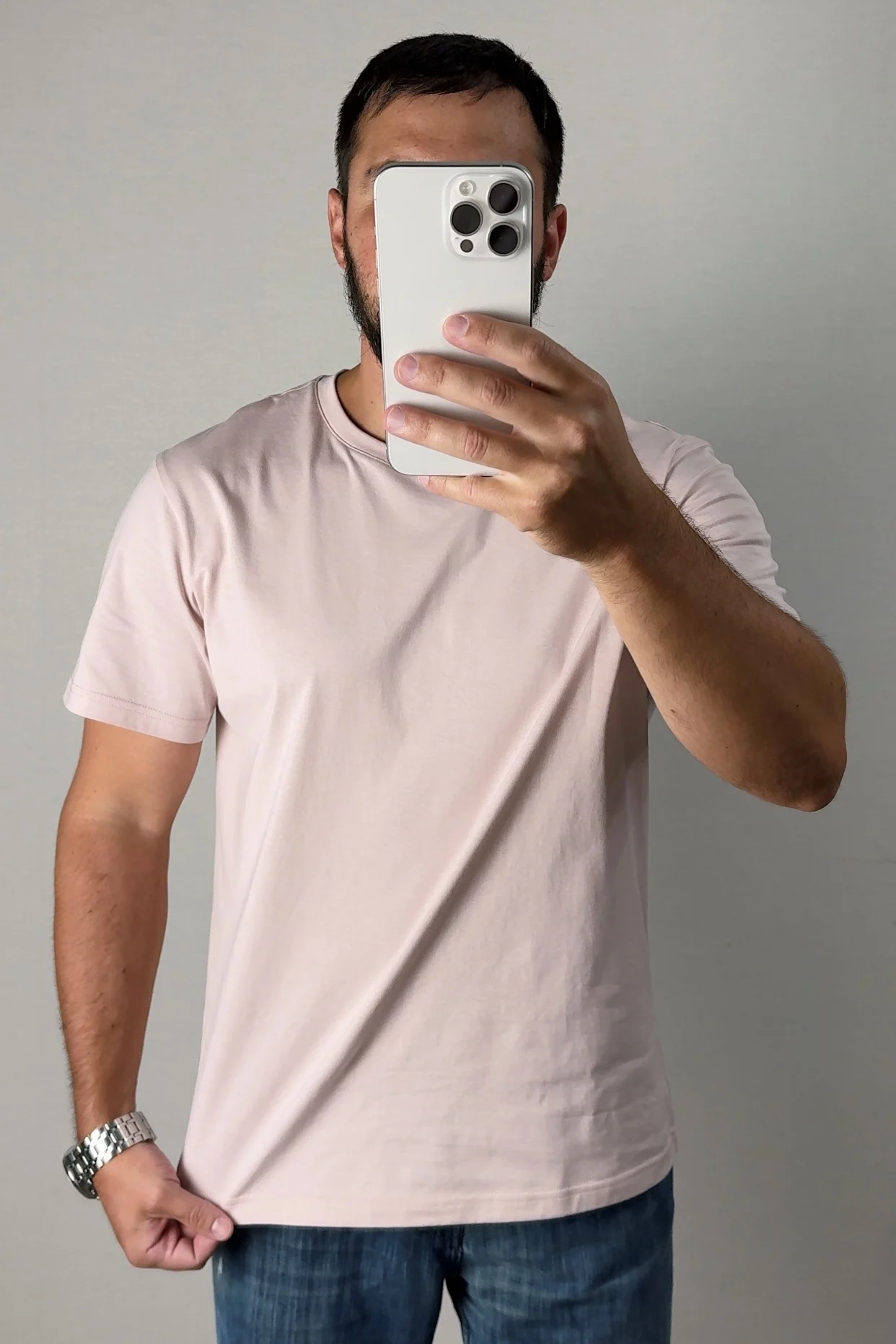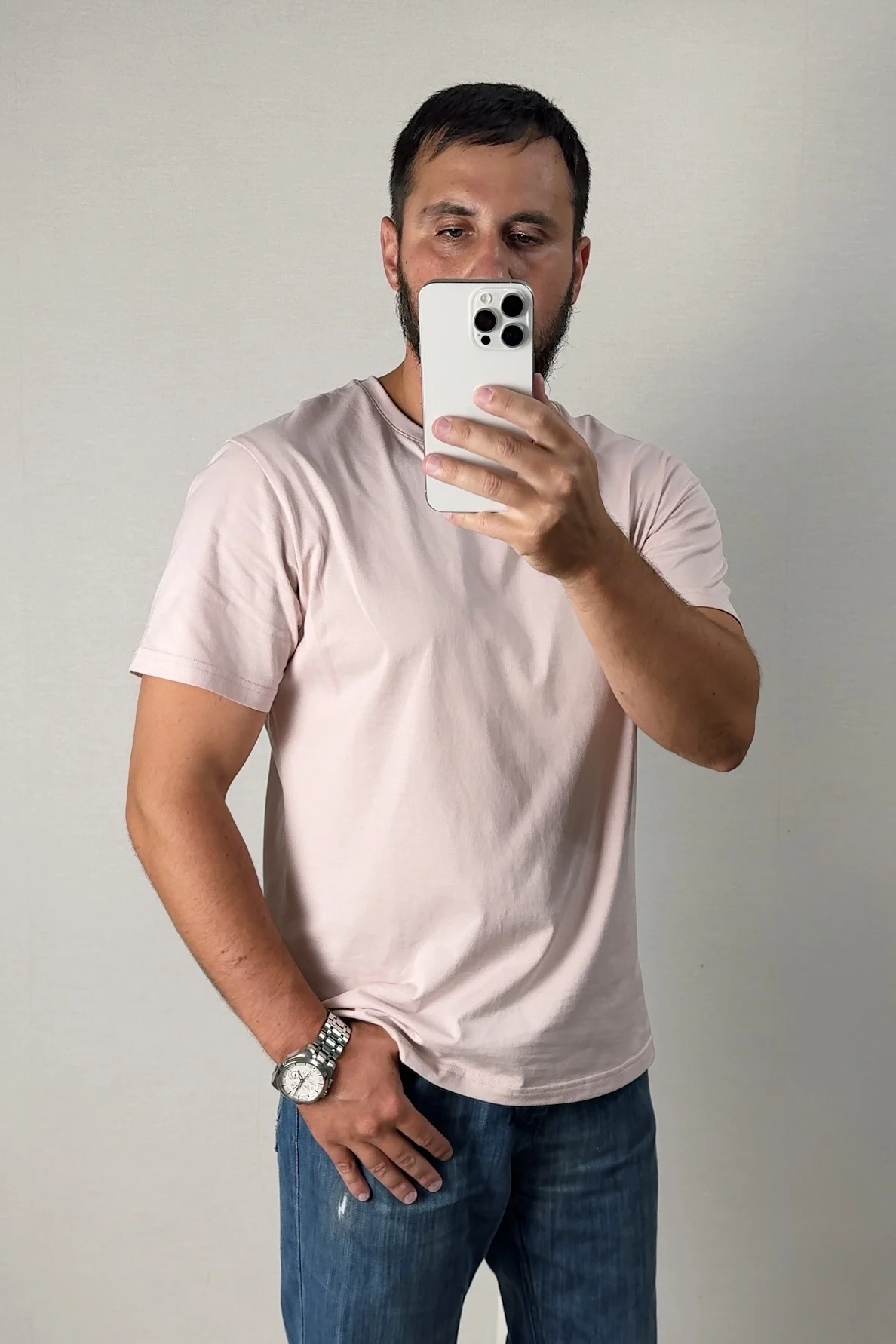 Только неуверенный в себе мужчина отказывается от розовых цветов в одежде. Ну а я вполне взрослый и брутальный мужик с бородой могу себе такое позволить и вам рекомендую 😁 Базовая футболка от бренда Semir в едва уловимом оттенке розового. Даже немного расстроился, думал, что оттенок будет более яркий. Заказ пришел в фирменной упаковке со всеми этикетками бренда. Получать такие качественные вещи - одно удовольствие. Материал тактильно приятный, 100% хлопок. На лето отличный вариант: ткань средней плотности. Качество хорошее , пошив фабричный. Это не первая футболка из этого магазина- всегда все на высшем уровне. Если сомневаетесь, то не нужно - за эту цену можно купить в оффлайн магазинах галимую синтетику. Так что за 600-700 р - это супер крутой вариант не хуже дорогущих брендов. После стирки футболка не села, не потеряла свой цвет. На рост 175, параметры 107-85-94 взял размер ХXL, сел по фигуре, хочется больше свободы. Хотя изначально брали такой размер на запас, думали, что будет очень большая. Возьму другие цвета в размере XXXL, цена сейчас отличная. Эти и другие находки у меня на канале, жду всех в гости. Отличная футболка на каждый день- берите- не пожалеете. Доставка быстрая, что не может не радовать