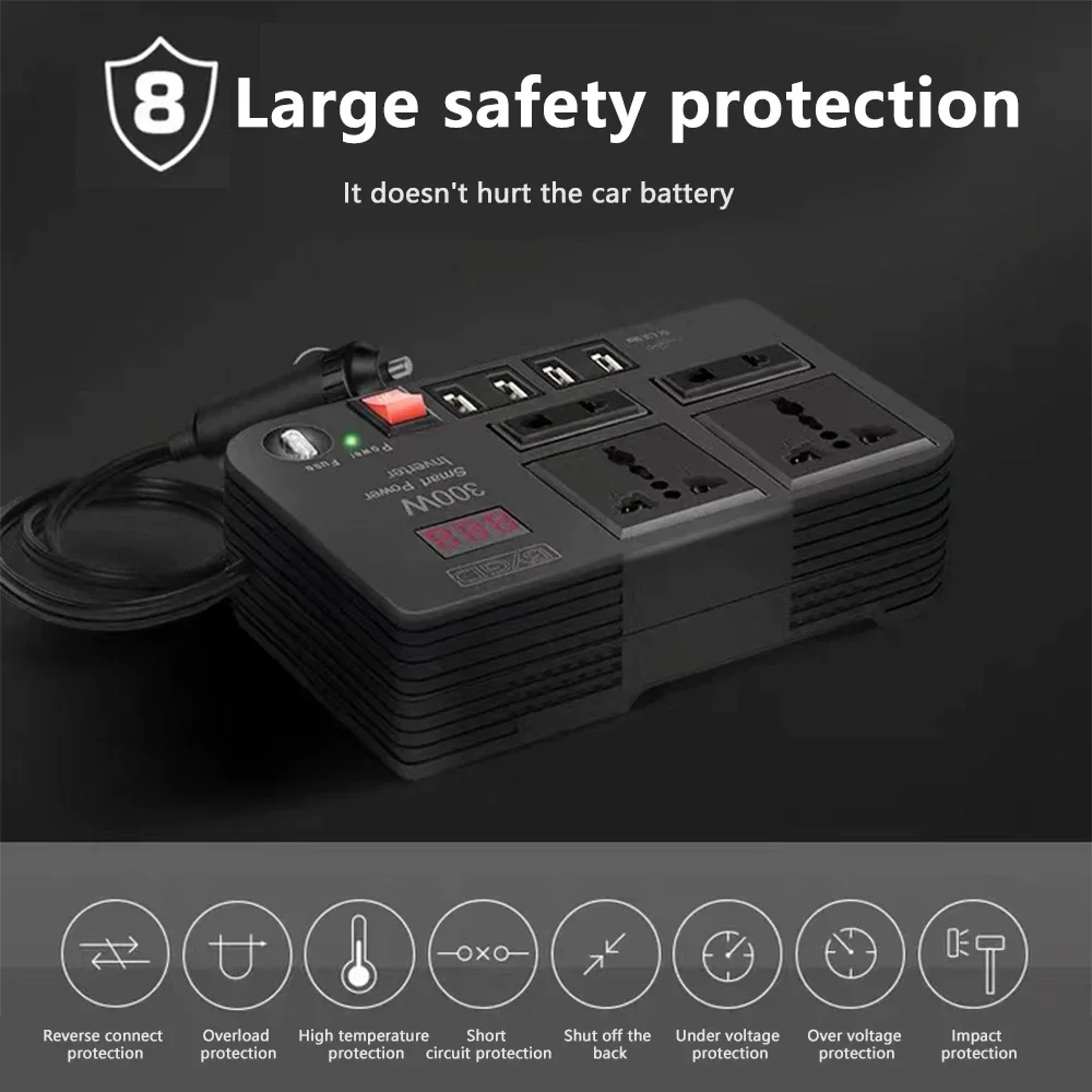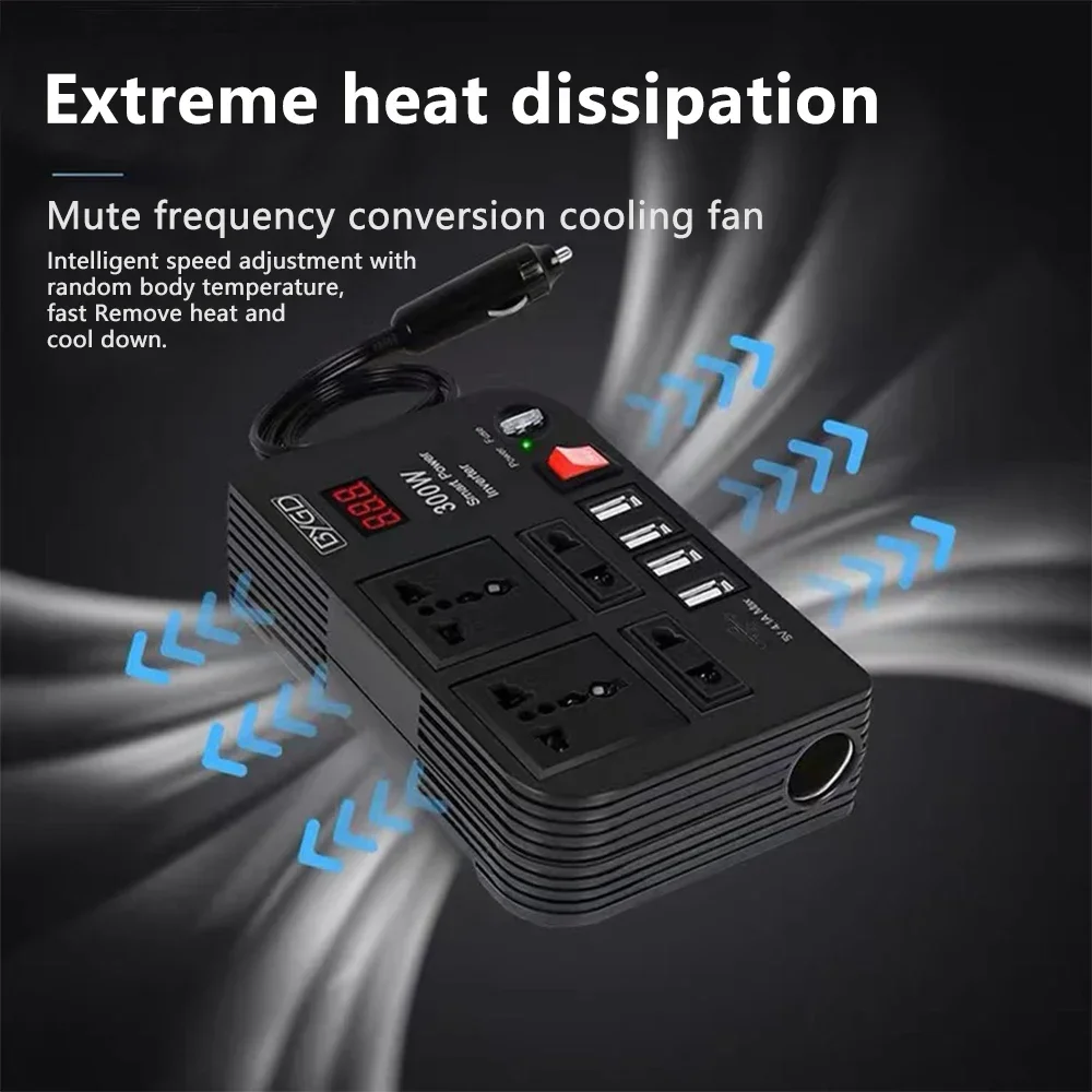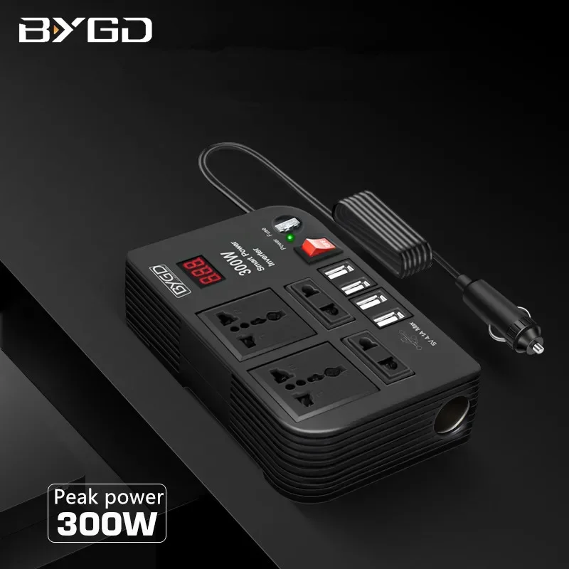 Автомобильный инвертор BYGD 300 Вт, 12 В постоянного тока в 220 В переменного тока, преобразователь, розетки, 4 USB, быстрая зарядка, универсальная розетка, адаптер питания, инвертор