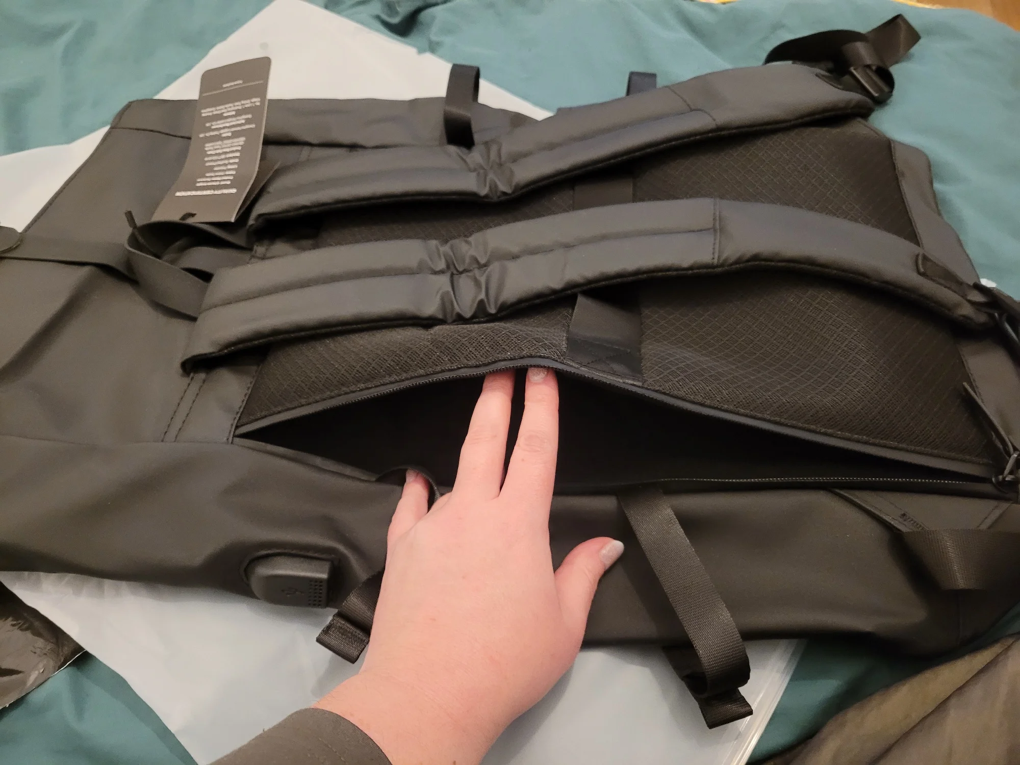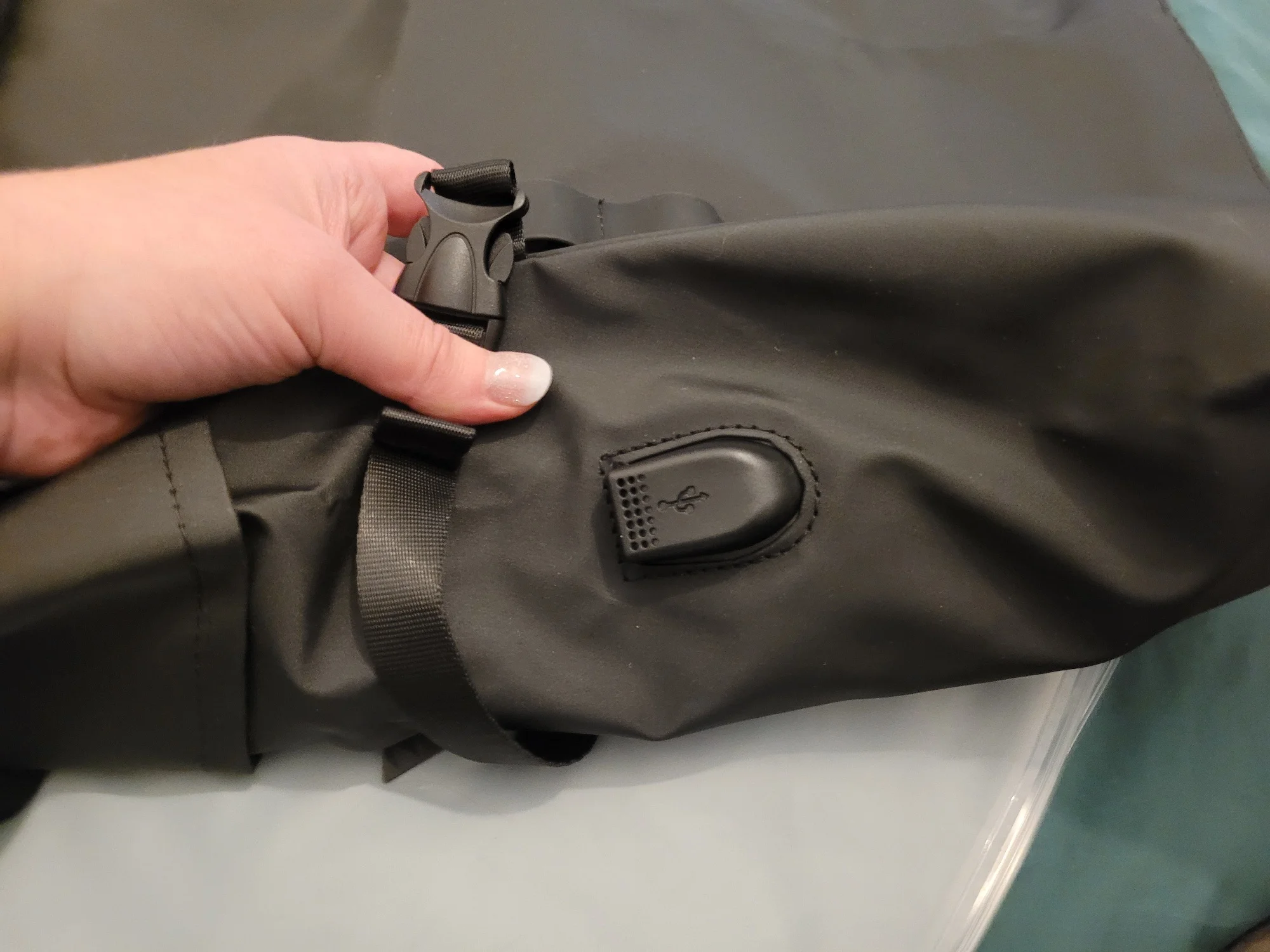 хорошо упаковано большой, вместительный из водонепронецаемой ткани, молнии тоже защищены. Швы выглядят надежно и спрятаны есть потайной карман, есть подкладка и порт USB немного тяжеловат для спортивного или туристического рюкзака, но с ним можно в поход (он большой, литров на 40). это городской рюкзак.