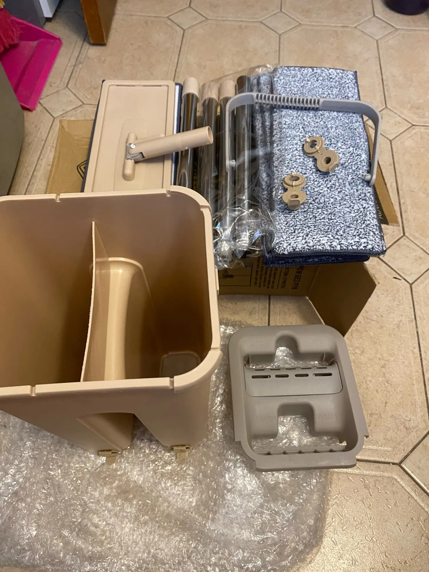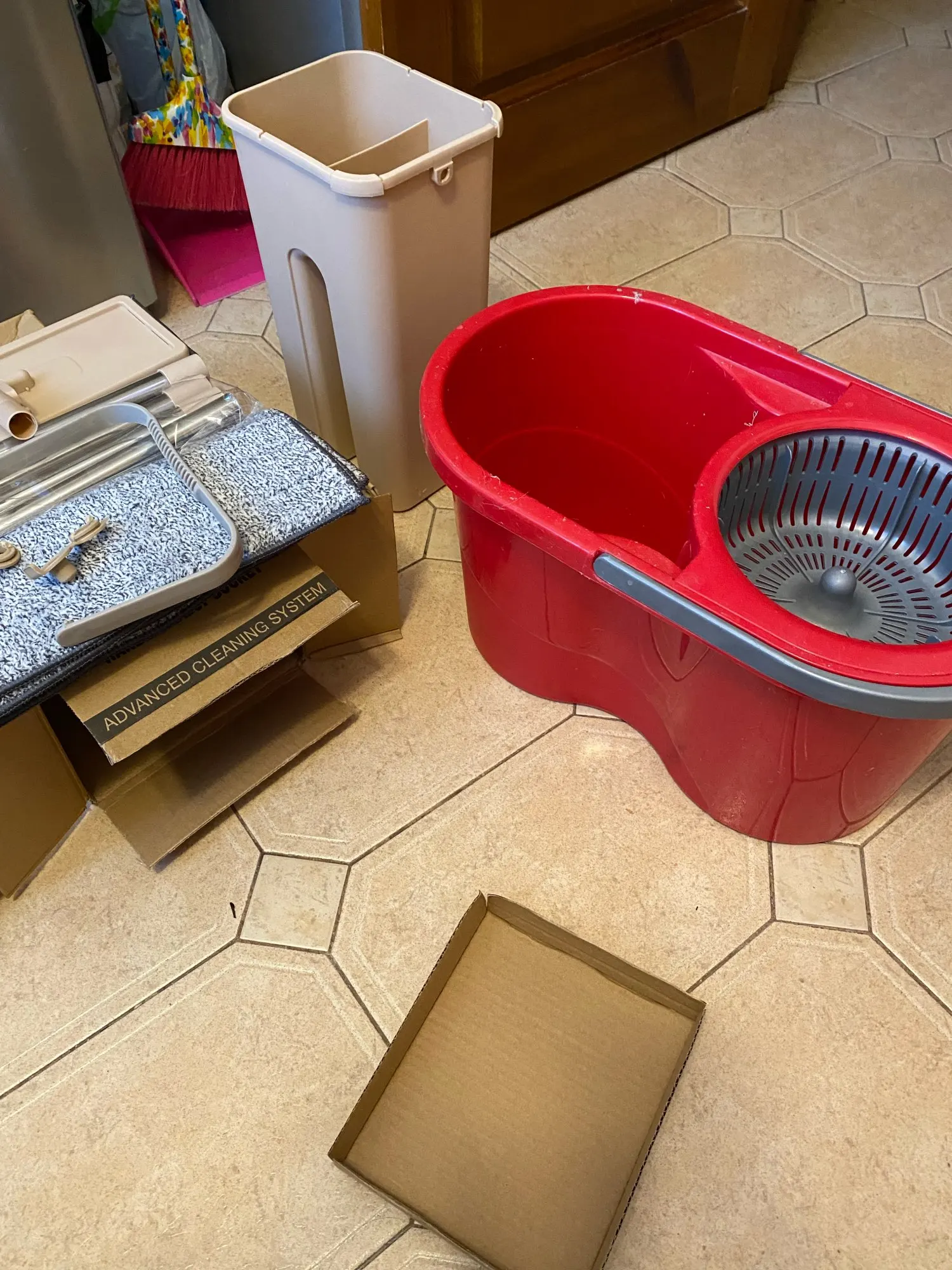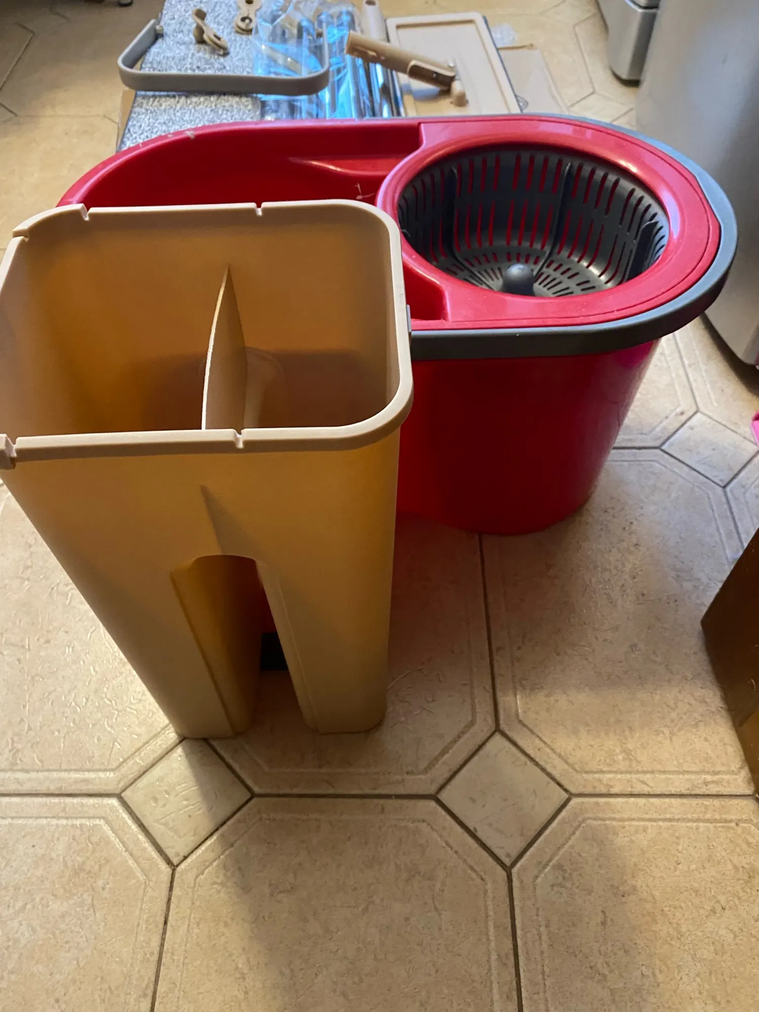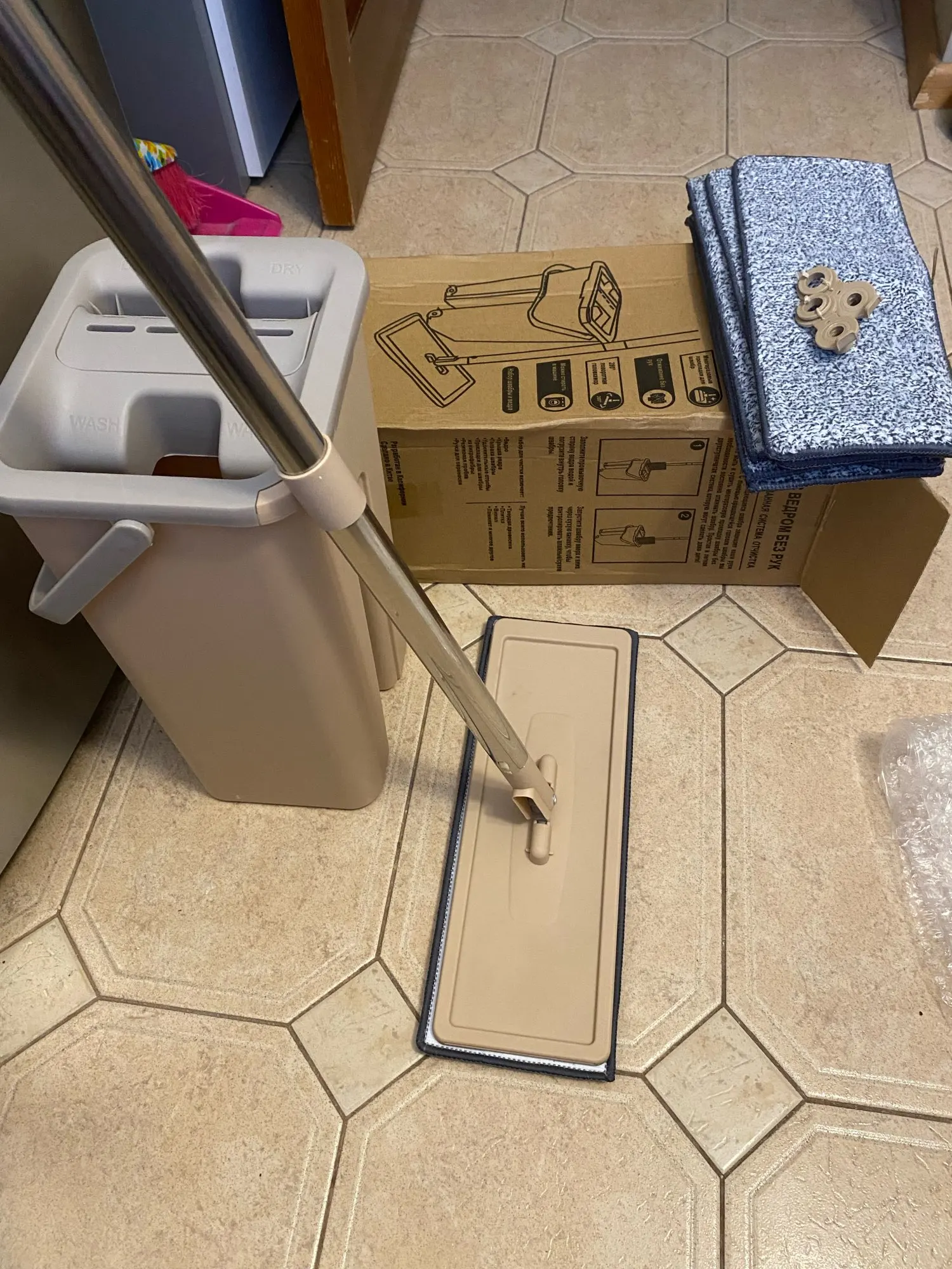 Заказываю тут 2й раз.1й раз пришла отличная швабра,в коробке с рисунком, с инструкцией, со сливами снизу. Из мягкого толстого пластика, удобное ведро с удобной ручкой посередине. Отлично выжимает и чистит тряпку.Мне очень понравилось и я купила такое же в подарок родителям.Но пришло что-то непонятное.В непонятной коробке без надписей,маркировки и инструкции.Без сливов и из тонкого блестящего пластика. С белыми тряпками. Ручка у ведра где то сбоку,а крышка болтается. Отверстие для отжима сильно широкое и швабра, не отжимается! После отжима с нее бежит вода. И так же плохо очищается, так как второе отверстие тоже большое! Если бы мне надо было отжимать руками, я бы купила швабру за 150 рублей! Отвратительная китайская подделка! Сейчас показывала как ей пользоваться, и только наделала луж. Это совсем не то, что обещано. Просто нет слов какая неудобная и бесполезная вещь. Пробовала изменить наклон при отжиме, упирается во что-то внизу, в какой то дополнительный отсек.и еще ведро шатается.