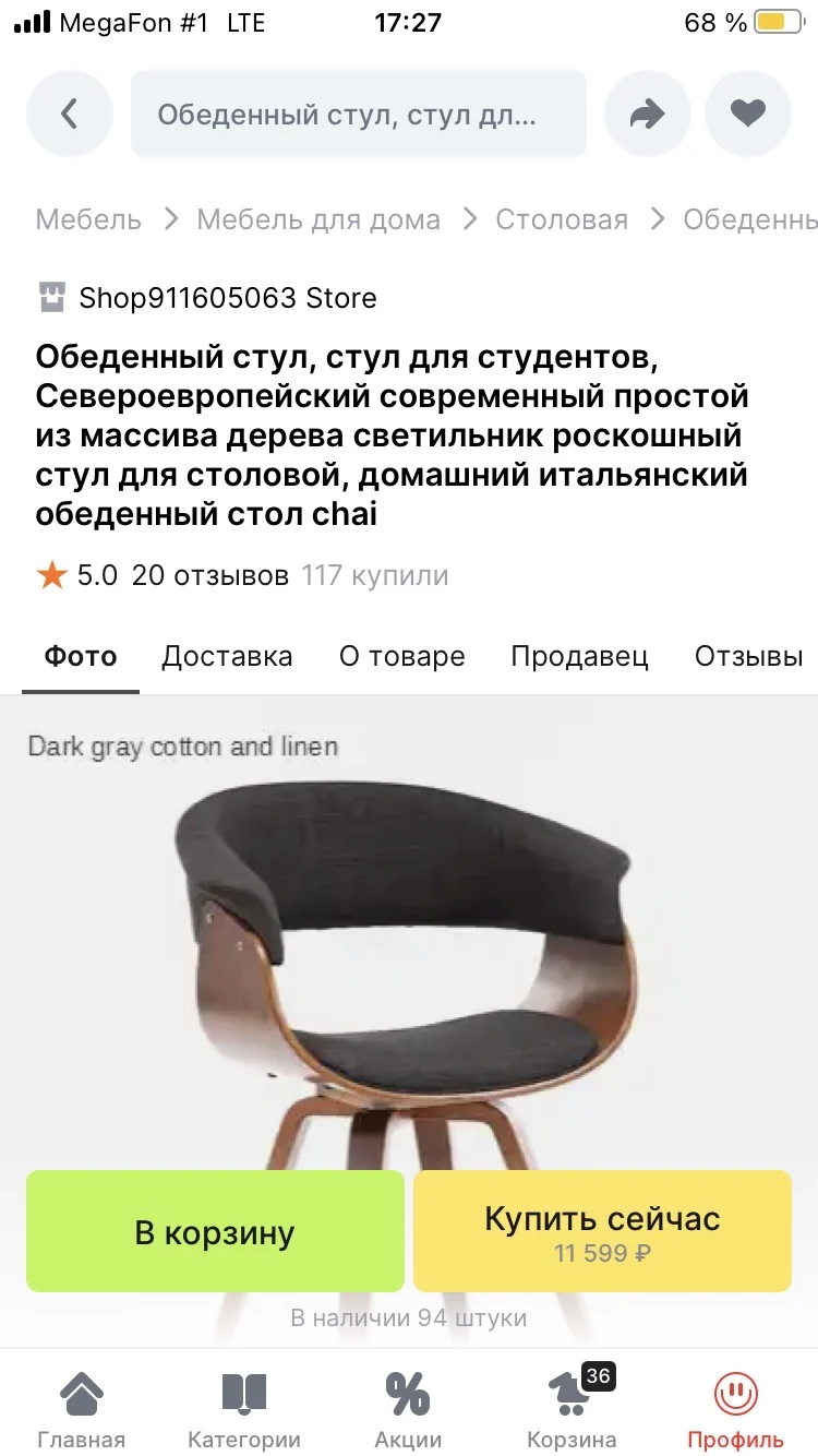 Отвратительно все! Мало того, что стул ехал 3,5 месяца, но я к этому был готов заранее, т.к. про это писали в отзывах. Самое отвратиельное, что я закзывал цвет dark grey, а продавец прислал Черный (на фото видно что заказыал и что прислали). Более того, стул прислали не новый а б/у т.к. были видны следы (вмятины) от шайб. Хорошо что не заказал у них сразу 8 шт. а взял один на пробу. Вообщем деньги потрачены зря, удовольствие от покупки испорчено!!! категорически не рекомендую к покупке у данного продавца.Анатольевич А. 19 мая 2024