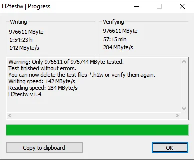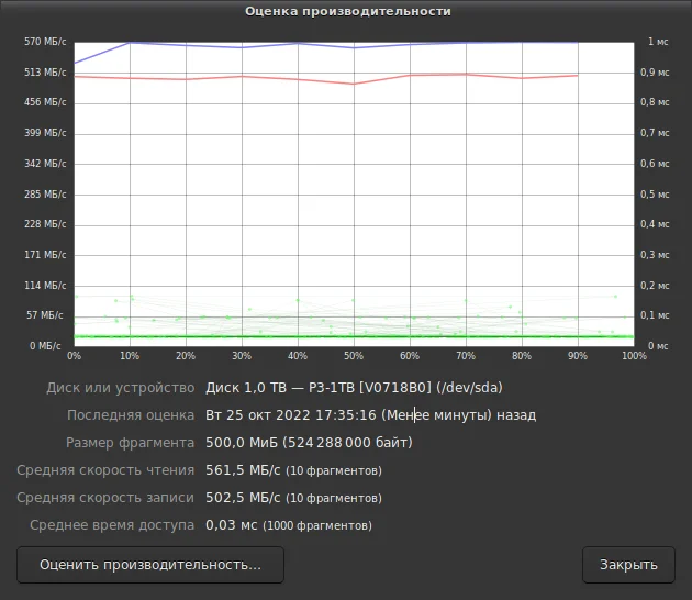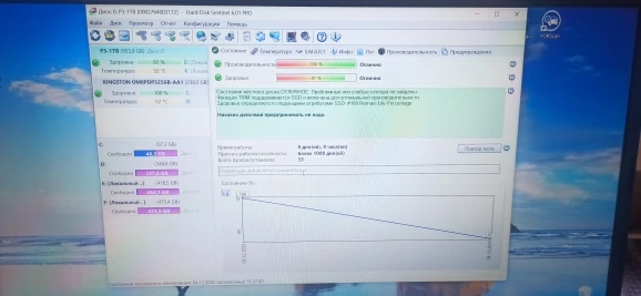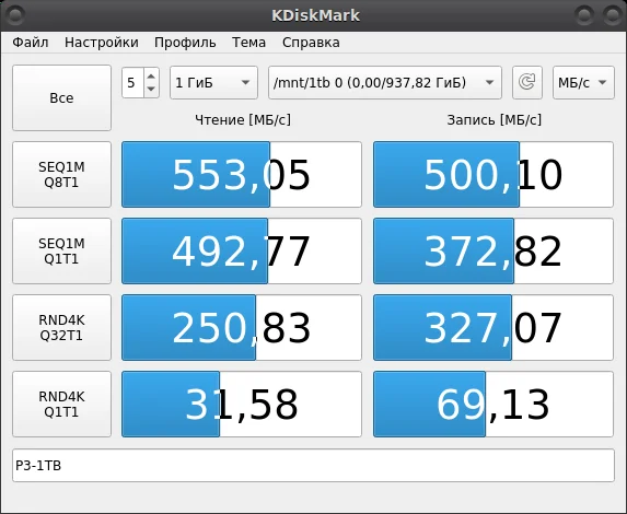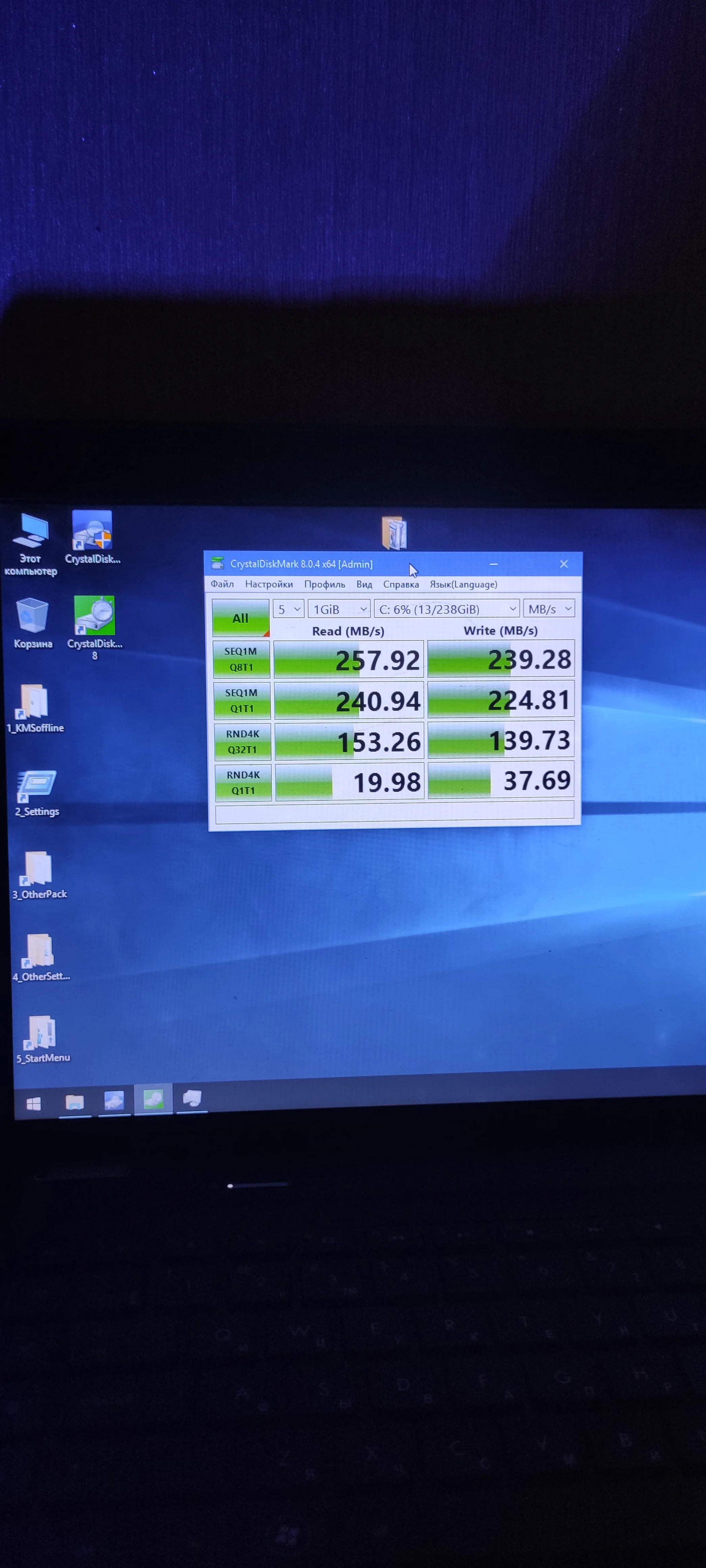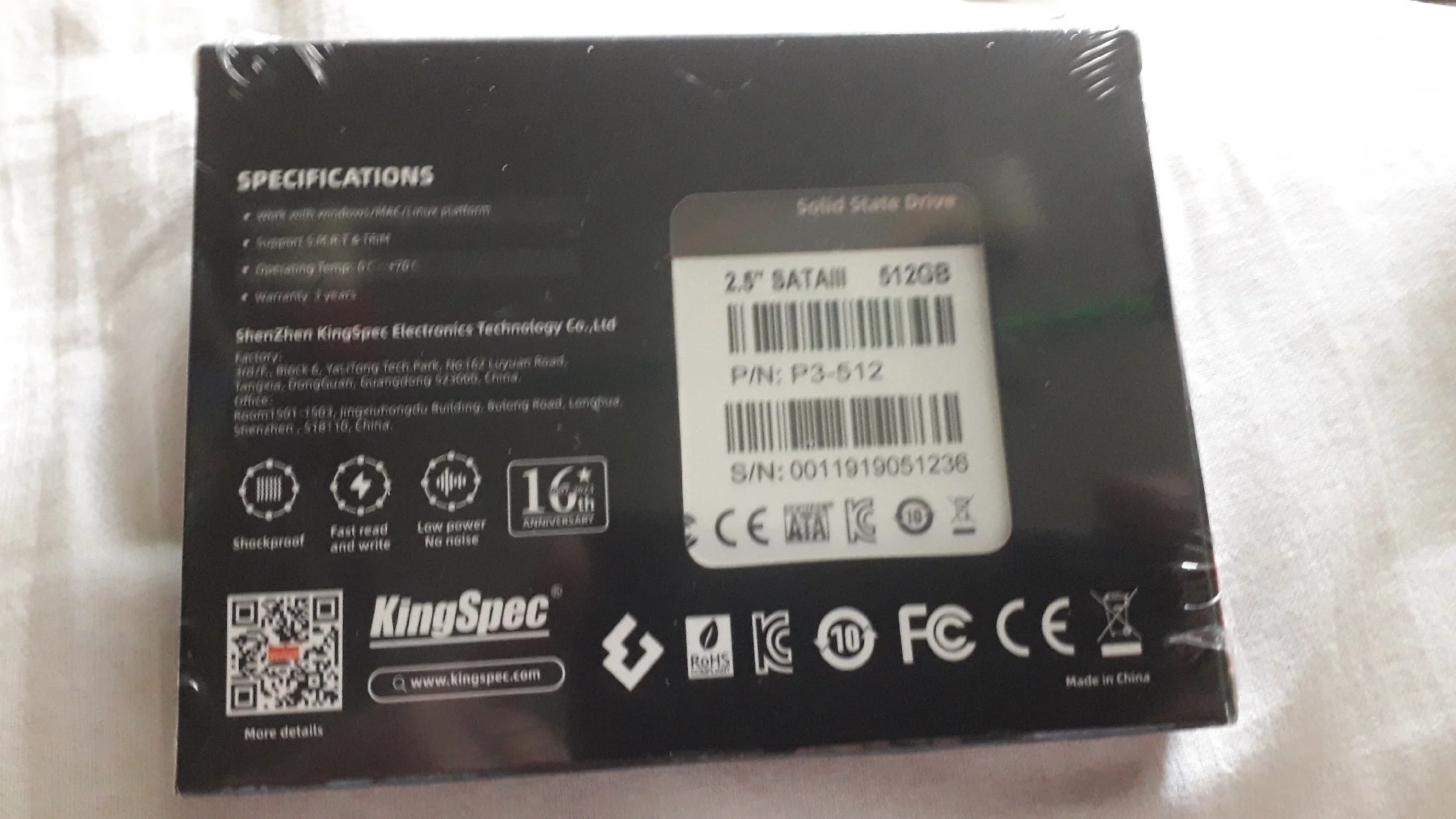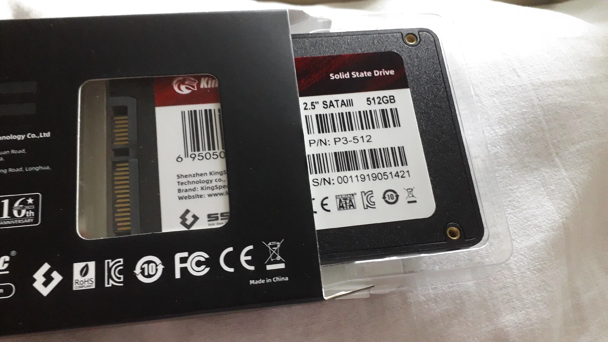 Получил точно в срок. Купил версию на 1Tb за 3 тыс. рублей. SSD вполне себе годный. Первые 3 скриншота тестов сделаны через USB-бокс USB 3.1 gen 1 (5gbps), где скорости на скриншоте, по-сути, являются максимальными для USB интерфейса, а не максимальная скорость доступа к диску. Фактически, заявленные скорости диск выдаёт без каких-либо проблем (это уже не первый диск компании Kingspec, который я покупаю) (четвертый и пятый скриншоты. Сделан в Debian, файловая система Ext4) На третьем скрине хорошо видно, что вся заявленная ёмкость - реальная (128mb - не в счёт) и полное заполнение затем, прошло верификацию. В USB-боксе в пике нагрелся до 56 градусов, в процессе теста чтения/записи всего объёма! По первому скриншоту видно, что SLC-кэш занимает 35% всего объёма, после чего происходит падение скорости записи до диапазона 180-270 Mb/s, что для бюджетного SSD очень достойно! Как вариант ноутбучного HDD - идеальная замена! P.s.: Прошу обратить внимание, что всё это актуально для версии 1Tb.