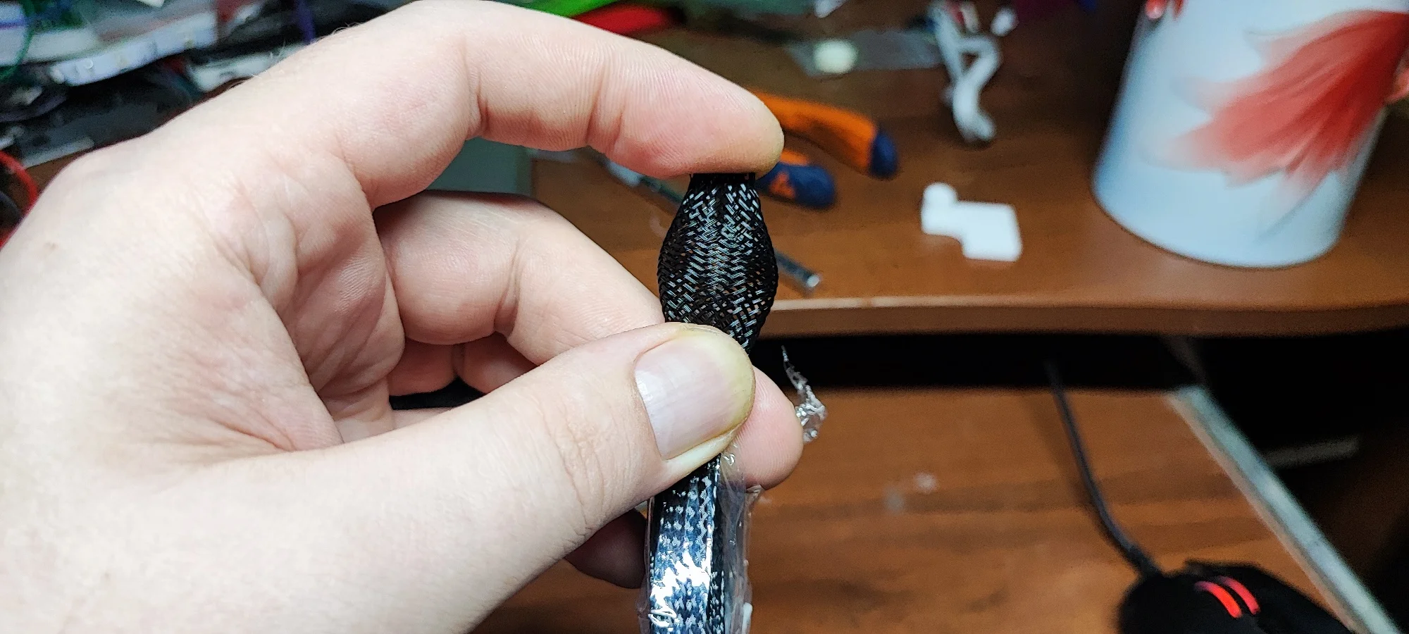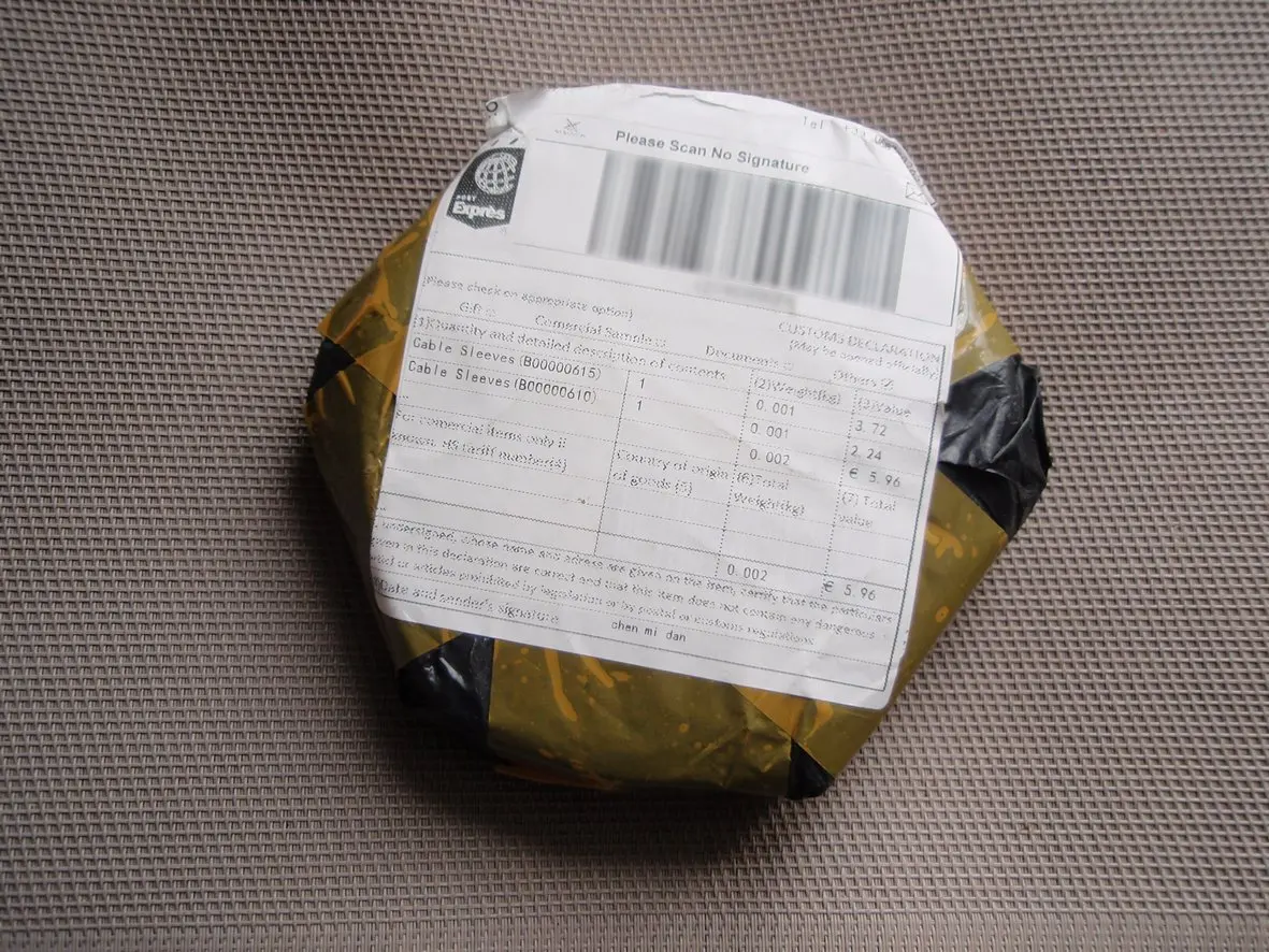 Вполне приемлемая оплетка для пучка проводов. Тянется, края нужно оплавлять. Роишло в сборной посылке. Само не отслеживалось, а всё вместе - как раз следилось.