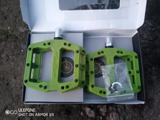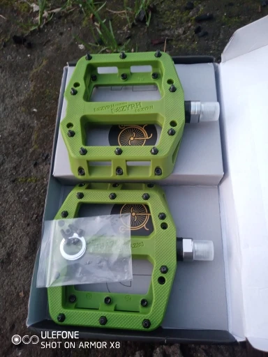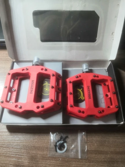 отличные педали, плотный нейлон с сочным цветом и правильные резиновые пыльники(есть с чем сравнивать). в общем я почти что доволен, омрачило то, что на одной педали отсутствовала заглушка подшипника, Но продавец компенсировал этот недостаток. в комплекте также идут проставочные шайбы и запасные шипы.