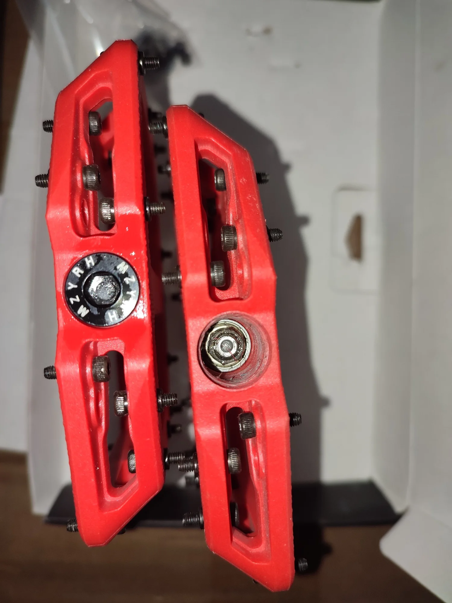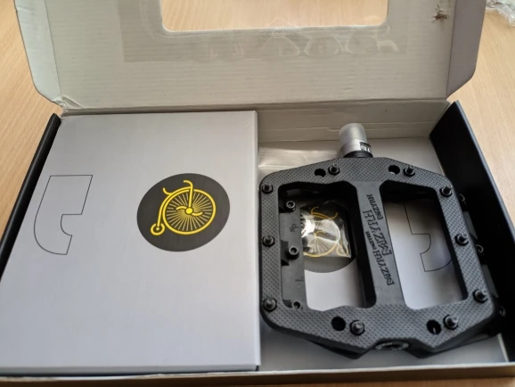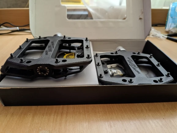 хорошие педали. шли около трёх недель на дальний восток. упаковано в фирменной коробке. сразу не проверил заглушки, на одной педали выпала. шипы ебунячие, оставил по углам , по 4 штуки на сторону. остались хорошие болтики для других целей. короче, доволен как удав! рекомендую.