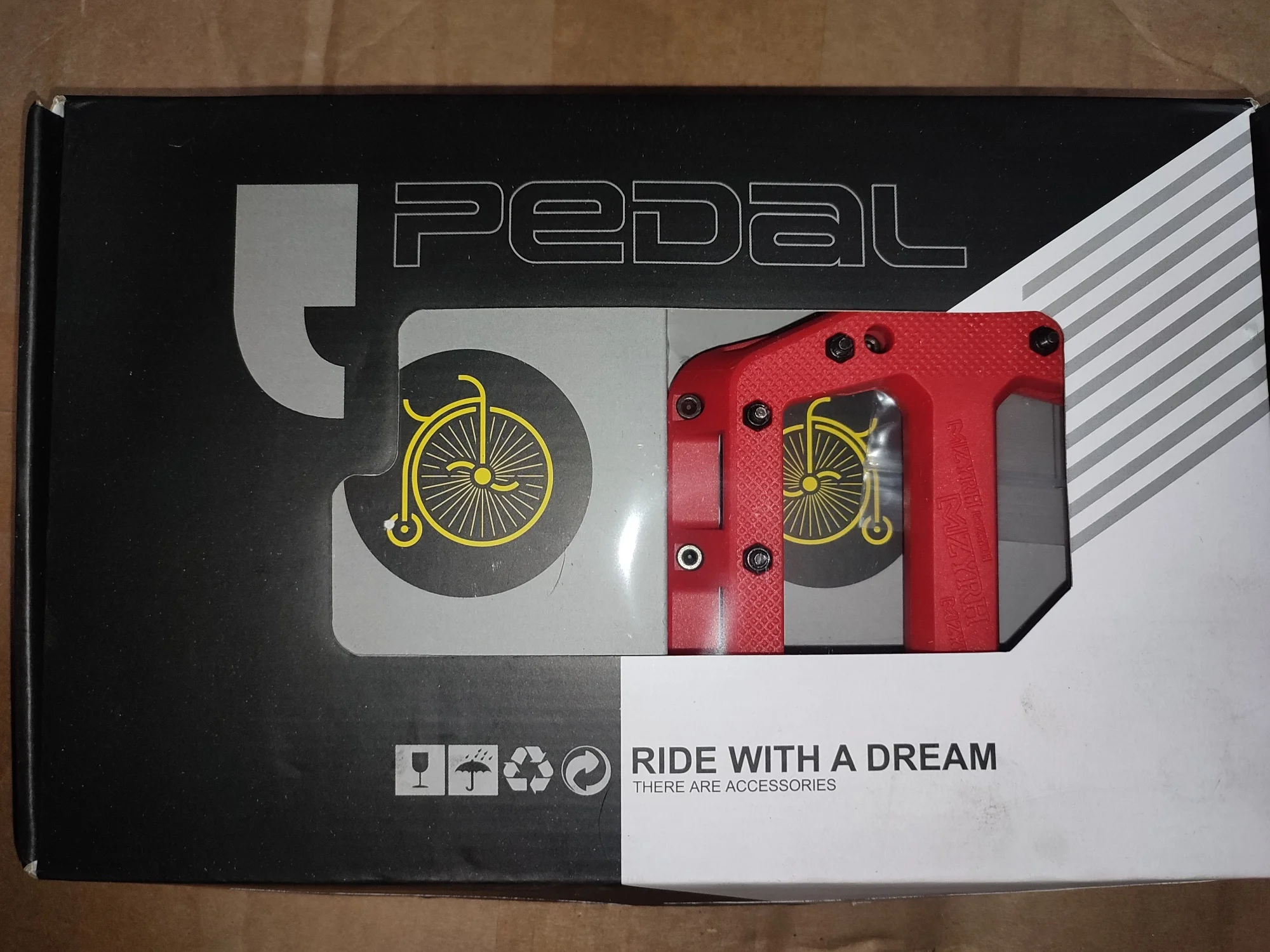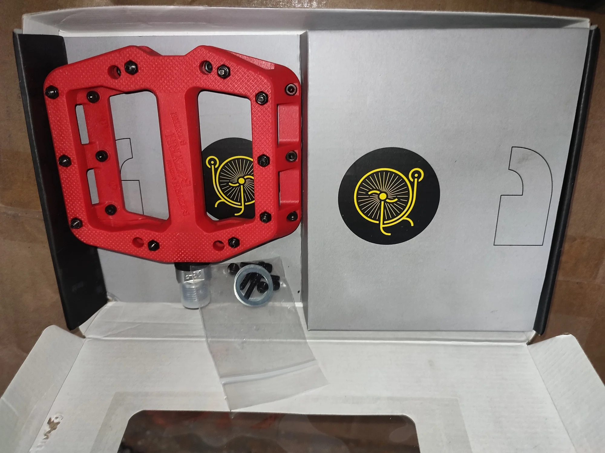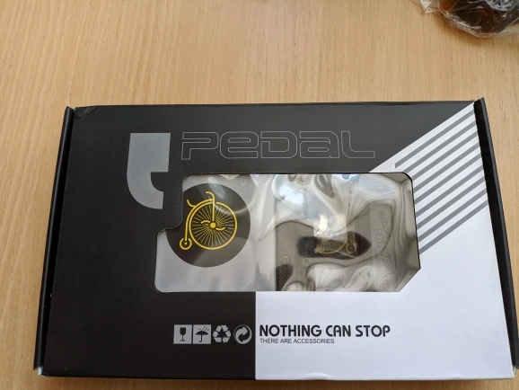 доставлено в Тверь за 4 дня в пятерочку. Упаковано в пакет, сами педали в фирменной коробке, разделены между собой картонкой. Если честно, я не ожидал такого, до этого у меня были rockbros k306-bl, так вот эти крутятся плавнее (понятно, 3 подшипника), они шире, они выполнены приятнее, зацеп на них куда лучше, порадовало, что есть шайбы от прикипания педалей к шатунам, а также запасные шипы. Шипы можно регулировать по высоте. Педали увесистые. В общем, я рад что сменил алюминиевые на нейлоновые.