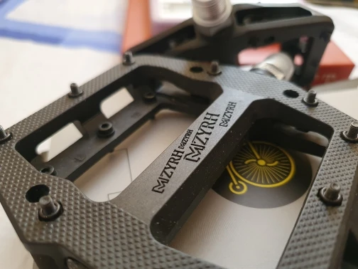 Поменял шипы. Заказал на Али винты M3x8mm обязательно из нержавейки stainless steel, результат на фото. Перебрал педали сразу из коробки, на оси обнаружился дефект, думайте сами решайте сами. Внутри действительно три подшипника: 6862 1шт и 6700RS 2шт.